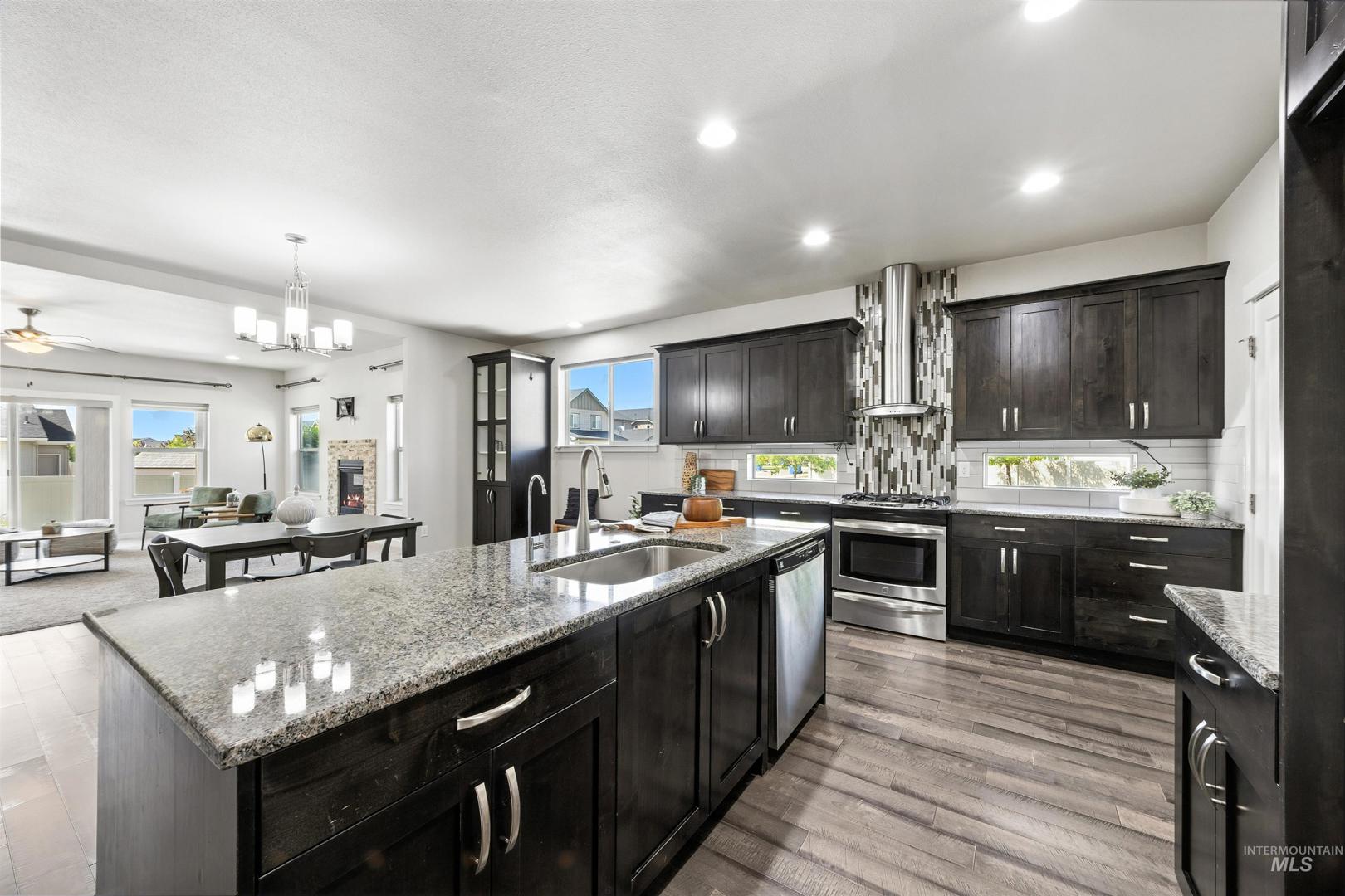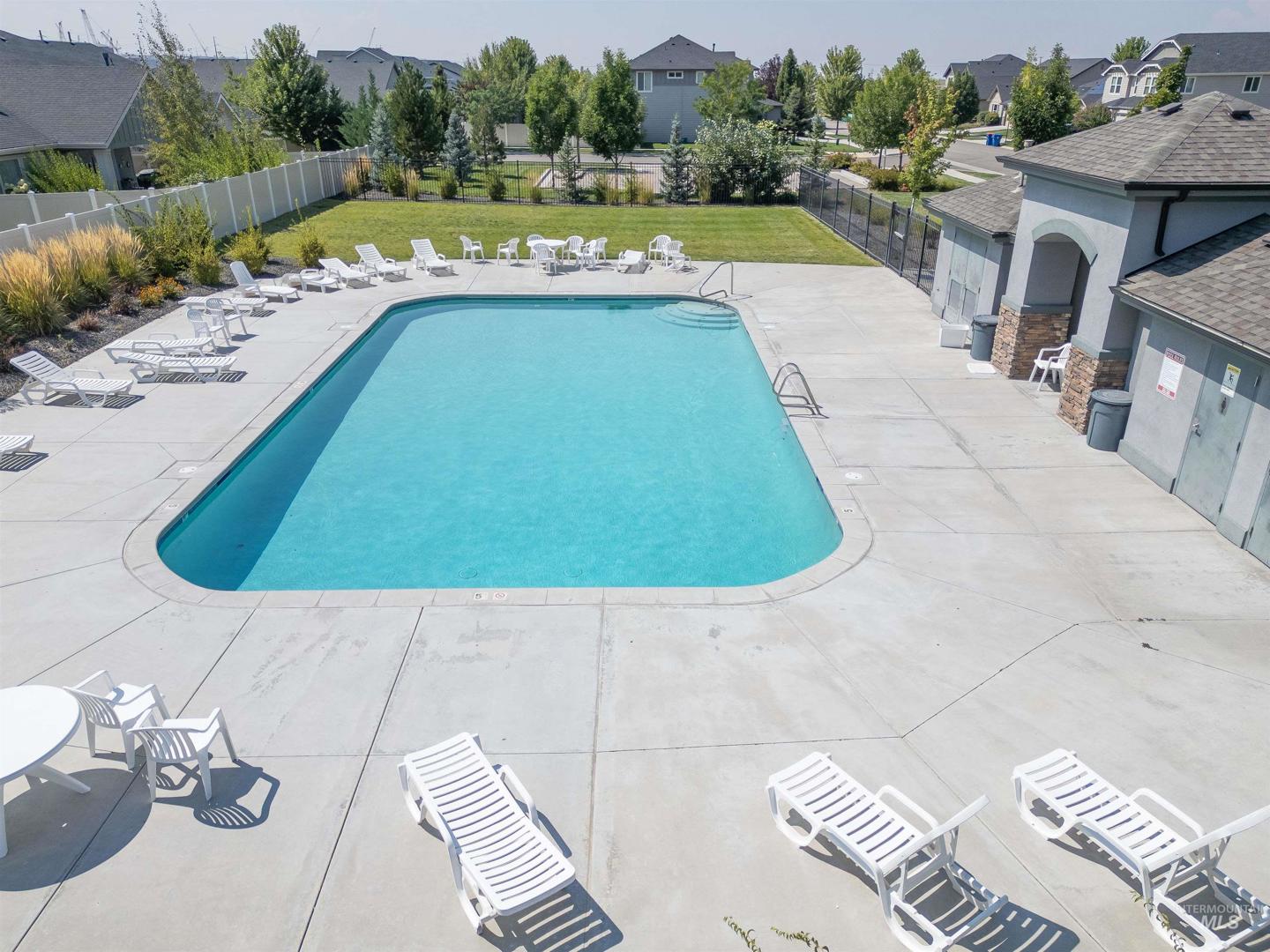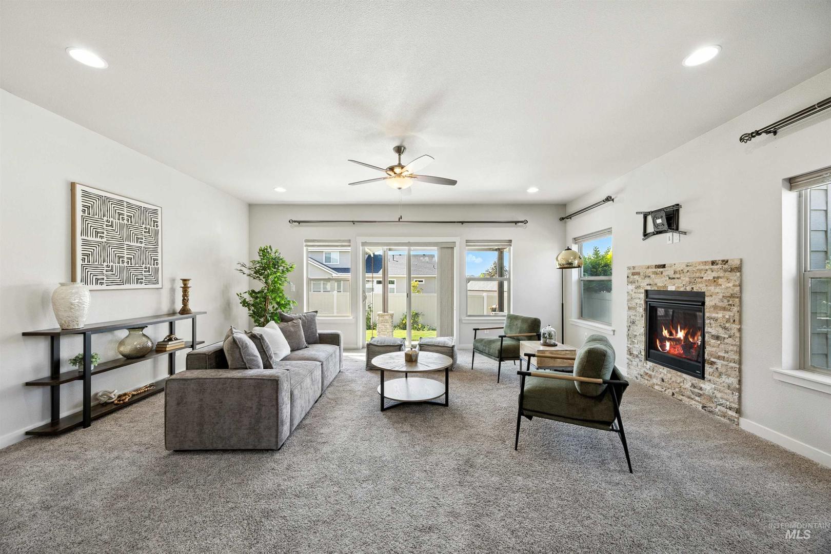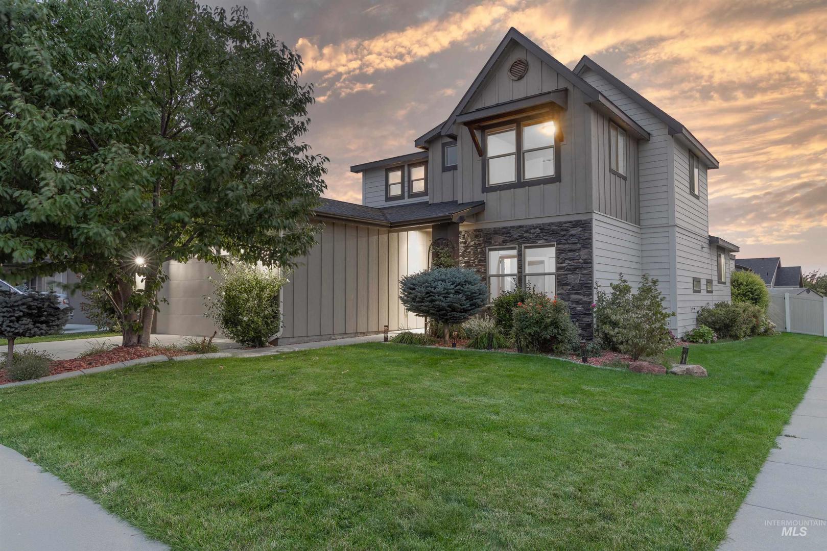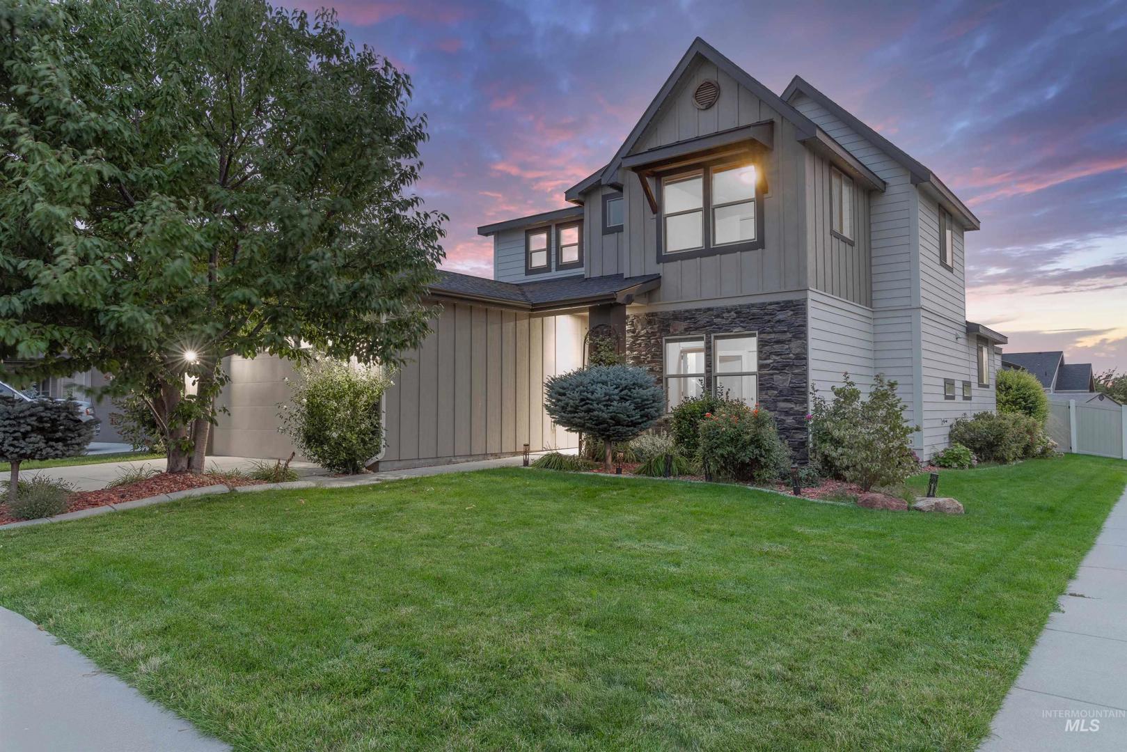 Welcome to this beautiful home, boasting an open floor plan w/ seamless living spaces & high-end finishes. The inviting living room features a cozy gas fireplace. The heart of the home, the kitchen, is a chef’s dream, with a spacious island, breakfast bar, quartz countertops, SS appliances, gas range, and pantry. The main level is home to the luxurious primary suite, offering privacy and comfort with a private patio walk-out, spa-like tile shower, and a generous walk-in closet. A guest suite is also on the main floor, complete with its own full bathroom—ideal for visitors or multi-generational living. A tech room/office provides the perfect space for working from home or organizing your life. Upstairs, you`ll find two more spacious bedrooms and a full bathroom. A corner lot provides both privacy and space with full vinyl fencing, covered patio and permanent holiday lights. The garage is equipped with epoxy flooring, EV charger & water softener. There is also a RO System. Access to a community pool and park!