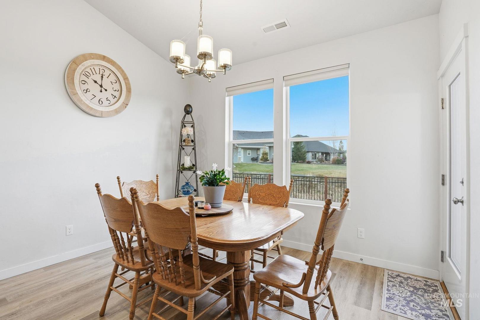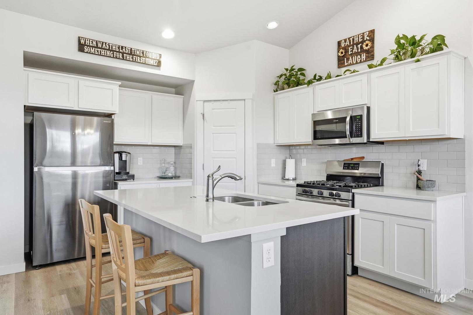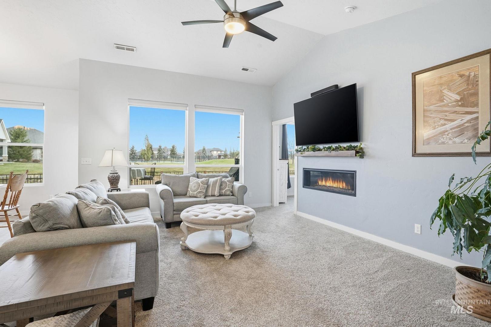 Affordable Luxury Living in Eagle with No Rear Neighbors! Discover comfort and privacy in this beautiful 3-bed, 2-bath home located in the prestigious Legacy community. Designed with modern style and functionality, the open layout features vaulted ceilings for an airy, spacious feel. The living area flows seamlessly into a contemporary kitchen equipped with durable LVP flooring, quartz countertops, full tile backsplash, stainless steel appliances, and ample storage—perfect for everyday living and entertaining. Snuggle up next to the cozy fireplace or take in sweeping views from every back window of the manicured community green space. The primary suite is a relaxing retreat, with dual vanities, walk in shower and walk in closet, while two additional bedrooms provide flexibility for guests, family, or office space. You can catch a little sunshine on the back patio, pre-plumbed for gas BBQ, with plenty of space to relax or play, while your flowers and veggies grow in your garden. Located in one of Eagle’s most sought-after neighborhoods, Legacy offers premium amenities including tennis courts, swimming pools, walking paths, ponds, and a golf course, all just steps from your door. A rare combination of location, comfort, and community living!