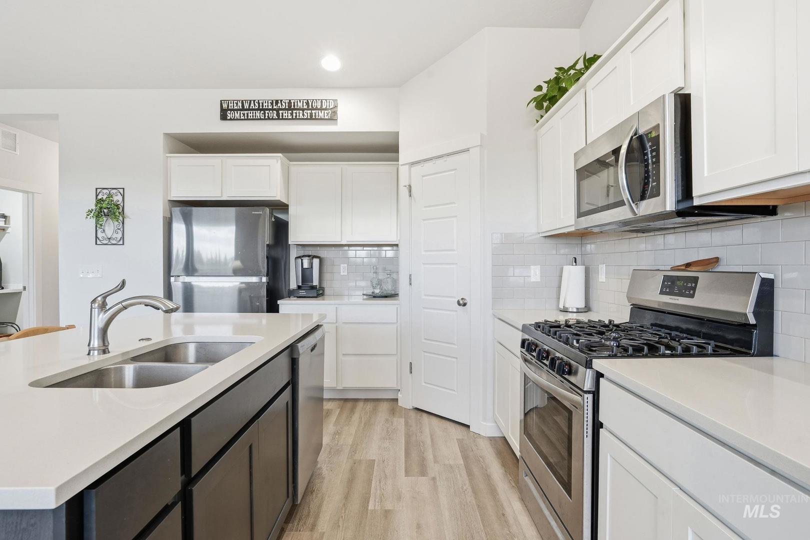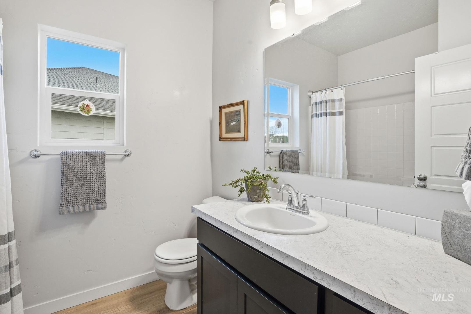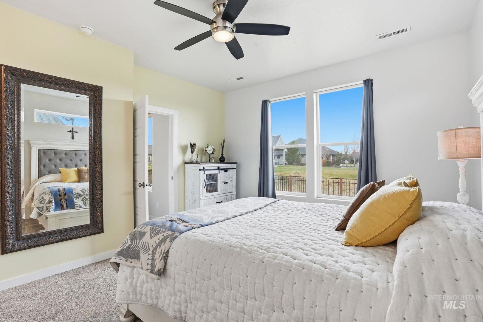Affordable Luxury Living in Eagle with No Rear Neighbors! Discover comfort and privacy in this beautiful 3-bed, 2-bath home located in the prestigious Legacy community. Designed with modern style and functionality, the open layout features vaulted ceilings for an airy, spacious feel. The living area flows seamlessly into a contemporary kitchen equipped with durable LVP flooring, quartz countertops, full tile backsplash, stainless steel appliances, and ample storage—perfect for everyday living and entertaining. Snuggle up next to the cozy fireplace or take in sweeping views from every back window of the manicured community green space. The primary suite is a relaxing retreat, with dual vanities, walk in shower and walk in closet, while two additional bedrooms provide flexibility for guests, family, or office space. You can catch a little sunshine on the back patio, pre-plumbed for gas BBQ, with plenty of space to relax or play, while your flowers and veggies grow in your garden. Located in one of Eagle’s most sought-after neighborhoods, Legacy offers premium amenities including tennis courts, swimming pools, walking paths, ponds, and a golf course, all just steps from your door. A rare combination of location, comfort, and community living!