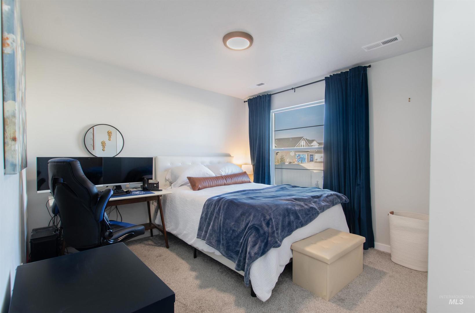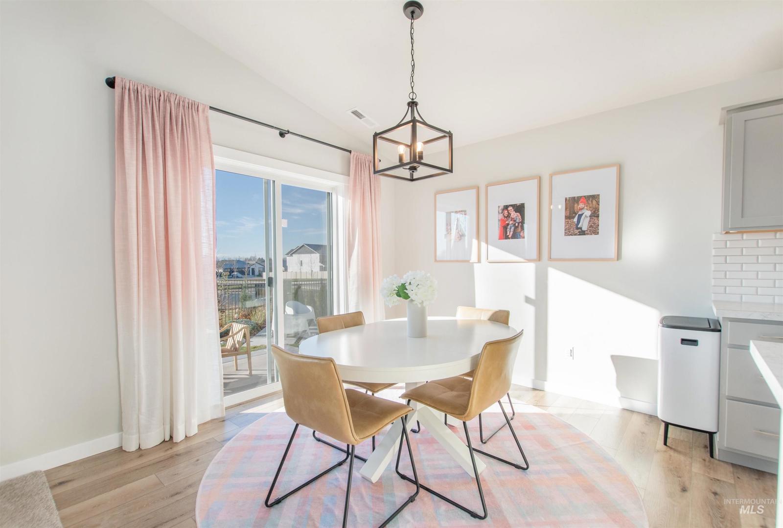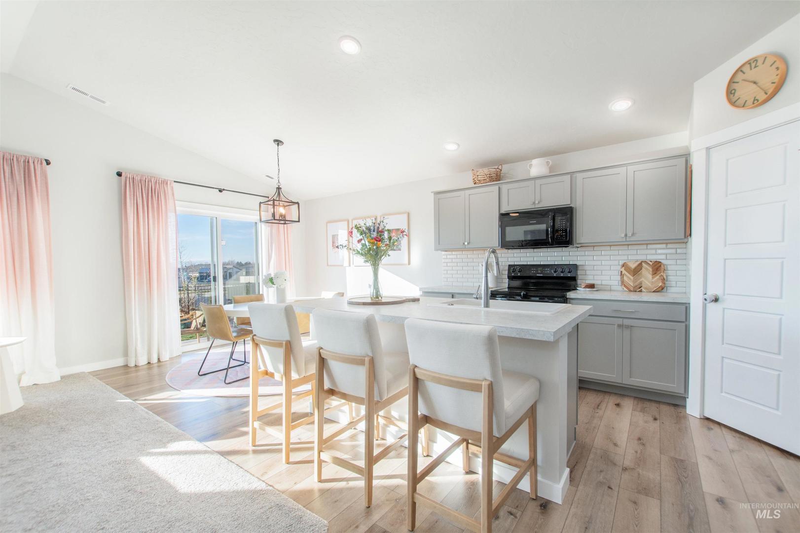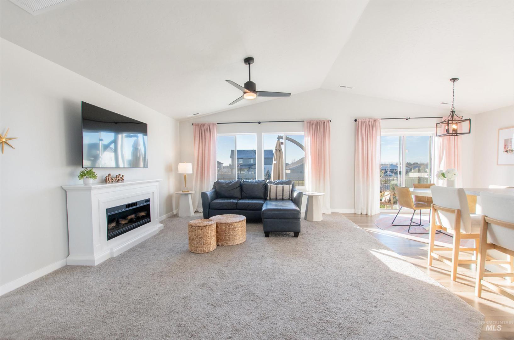 RARE FIND!! Set on a premium corner lot with no rear neighbors, this only 2 year old, single-level home is already fully fenced, fully landscaped, and extensively upgraded. The south-facing backyard is a standout feature! The professionally designed outdoor space includes seven large raised metal garden beds, with drip irrigation and organic soil, and producing fruit trees along with blackberries and raspberries. A custom fire-pit patio creates the perfect backdrop for relaxing Idaho evenings and sunset views! The home sits with a common area behind and a pasture to the southeast creating an open, expansive feeling, with unobstructed foothill views and frequent sightings of cows in pasture! Inside, the home’s open concept design and spacious kitchen island is perfect for both relaxation and entertaining, with large windows filling the space with natural light. The primary suite is set apart from the additional bedrooms, creating a true retreat, and the fourth flex room provides an ideal space for work, hobbies, play, or quiet relaxation. Just minutes to the Boise River, Freedom Park, schools, shopping and restaurants. Don`t miss your chance to make this move in ready property yours!