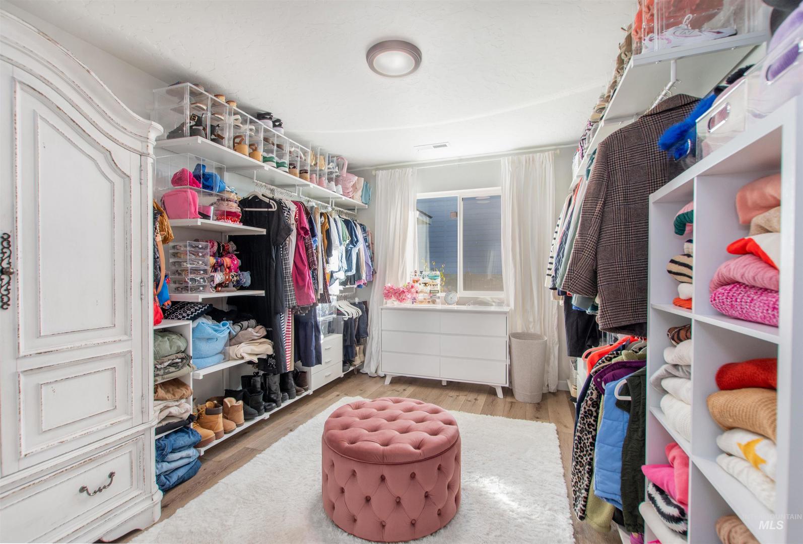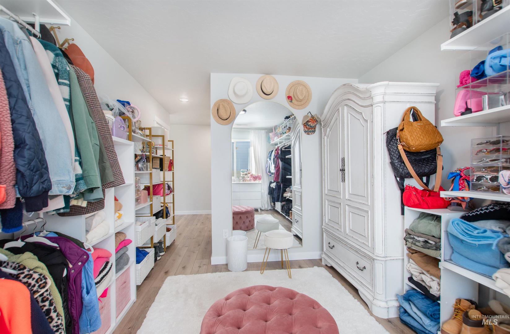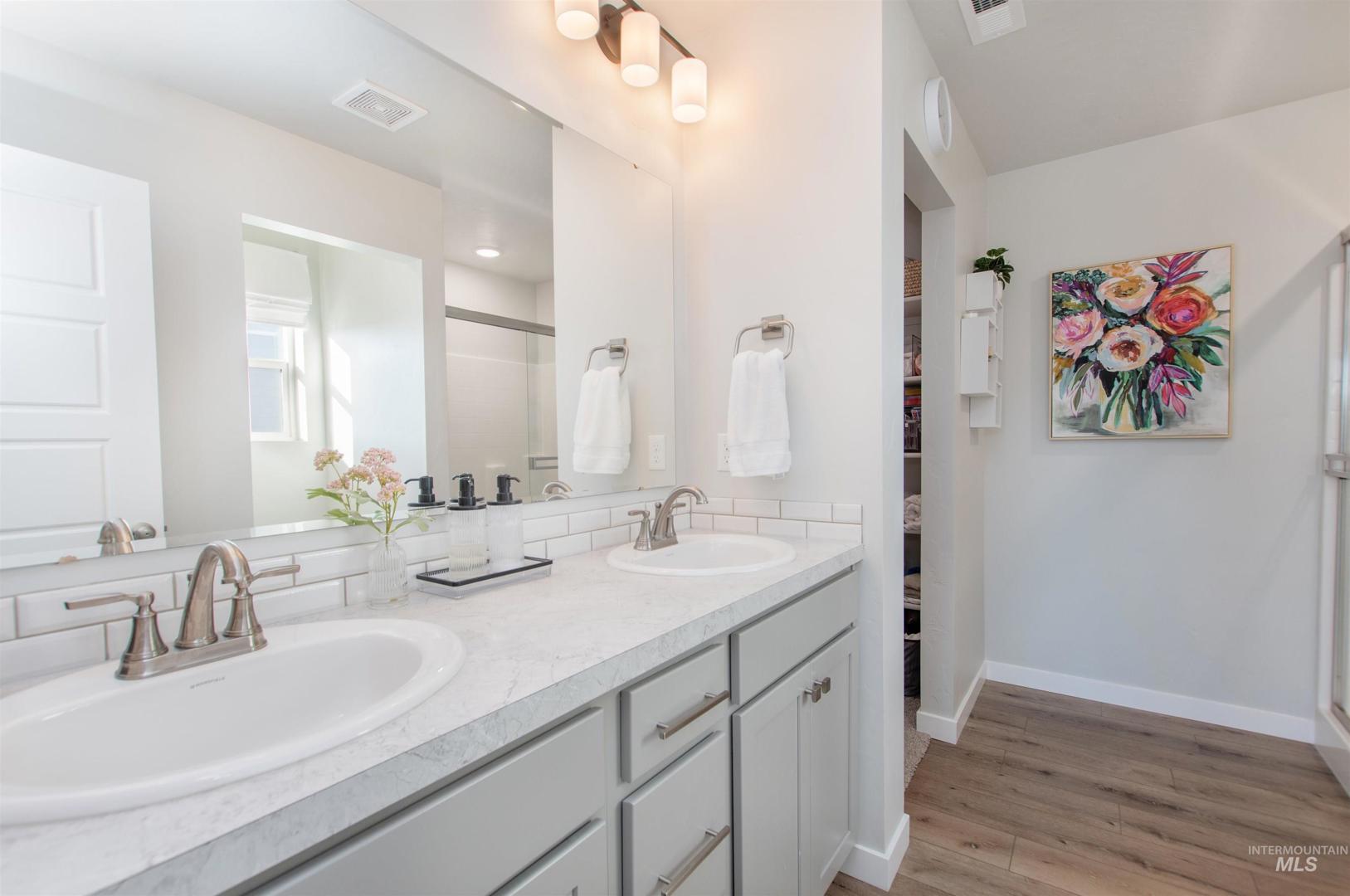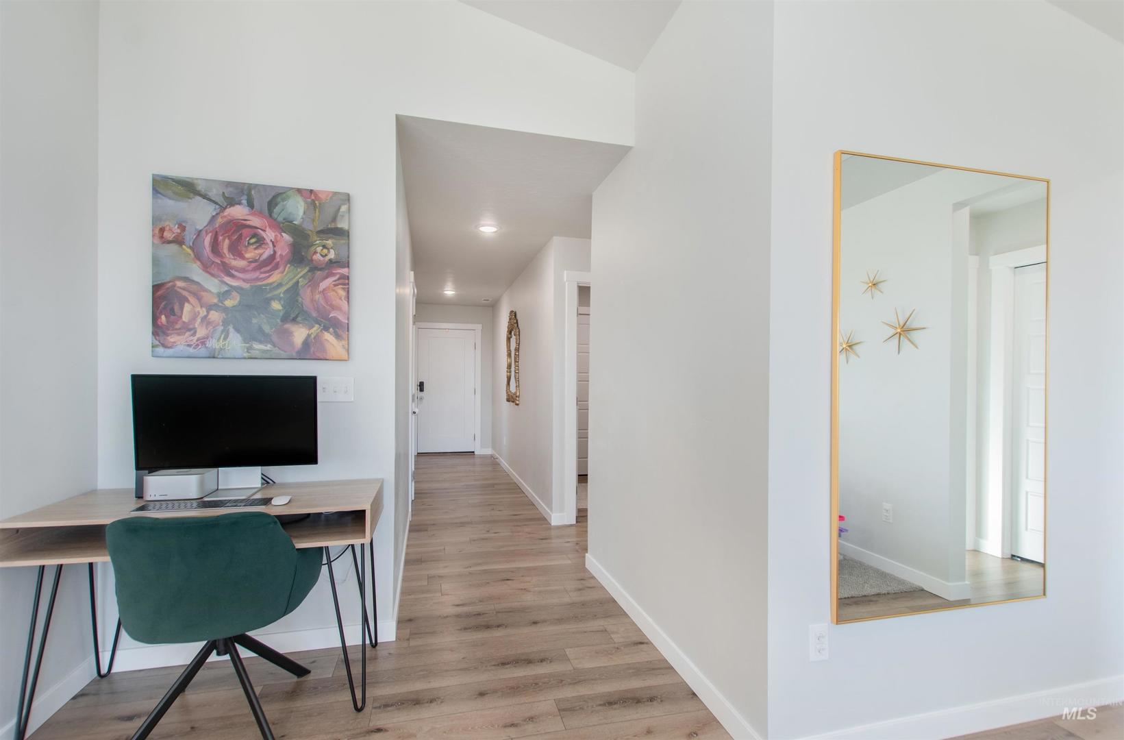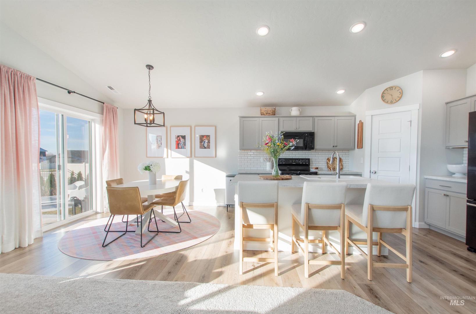 RARE FIND!! Set on a premium corner lot with no rear neighbors, this only 2 year old, single-level home is already fully fenced, fully landscaped, and extensively upgraded. The south-facing backyard is a standout feature! The professionally designed outdoor space includes seven large raised metal garden beds, with drip irrigation and organic soil, and producing fruit trees along with blackberries and raspberries. A custom fire-pit patio creates the perfect backdrop for relaxing Idaho evenings and sunset views! The home sits with a common area behind and a pasture to the southeast creating an open, expansive feeling, with unobstructed foothill views and frequent sightings of cows in pasture! Inside, the home’s open concept design and spacious kitchen island is perfect for both relaxation and entertaining, with large windows filling the space with natural light. The primary suite is set apart from the additional bedrooms, creating a true retreat, and the fourth flex room provides an ideal space for work, hobbies, play, or quiet relaxation. Just minutes to the Boise River, Freedom Park, schools, shopping and restaurants. Don`t miss your chance to make this move in ready property yours!