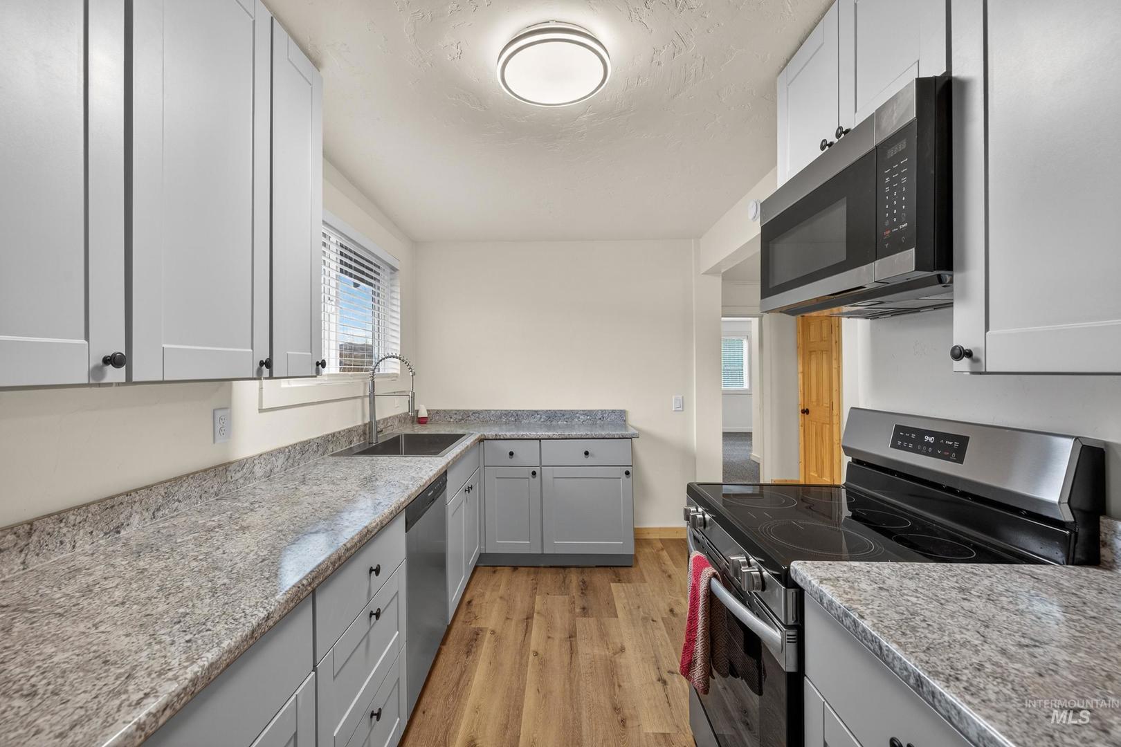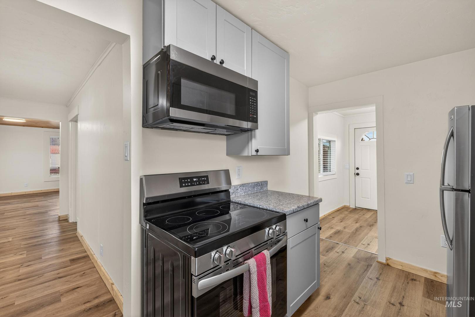 This adorable in-town Council home has been beautifully updated with new plumbing, electrical, flooring, paint, counters, and added bathroom. The spacious floorplan with over 2266 square feet features three bedrooms plus a den or office, two baths, and a main-level primary bedroom. Light fills the living room, highlighted by wood ceilings and charming character throughout. Outside, you’ll find two car garage and an additional outbuilding with great storage, mature trees, and easy-care landscaping. Conveniently located near in-town amenities and just minutes from National Forest access and stunning mountain scenery.