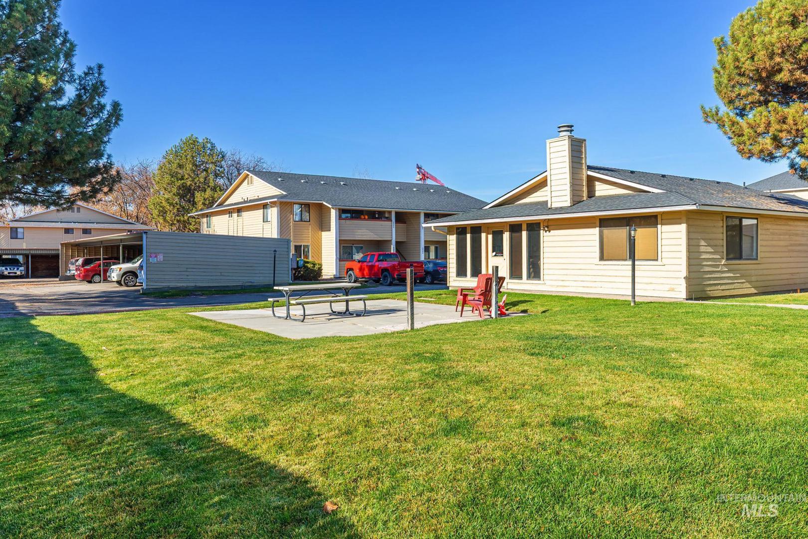 Super cute & clean & quiet! Centrally located condo on a dead end street with reserved covered parking spot & storage locker. 2 nice sized bedrooms with new carpeting & 1 bath. Galley kitchen, cozy eating space & nice central living area with balcony. Just a hop to downtown, a skip to the freeway and jump to the Boise greenbelt. This home is perfect for a first time buyer or investor. Plus new paint throughout & new LVP flooring. Conveniently located within a few feet of the grassy common area with mature shade trees where you can use the BBQ pit at your leisure. Enjoy the clubhouse for gatherings and events! HOA covers trash and water. This home won`t last long - it has been priced for quick sale. Come on by!