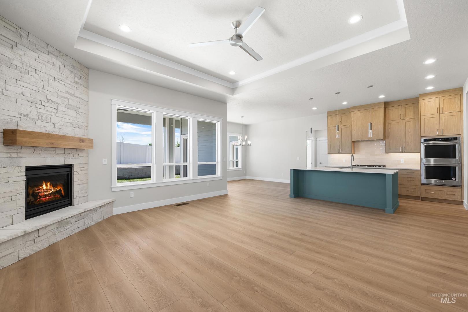 The Almada Limelight Homes is a perfect single-level layout with easy access to a covered patio for entertaining. The large kitchen is equipped with stainless steel appliances, double oven, 36" cooktop, breakfast bar, pantry, & baker`s pantry. The master suite offers cohesive flow from the bathroom; complete with freestanding tub, two shower heads & dual vanities: to the walk-in closet, & through to the laundry room. The open layout between the kitchen, living, & eating nook offers the perfect space for entertainment.