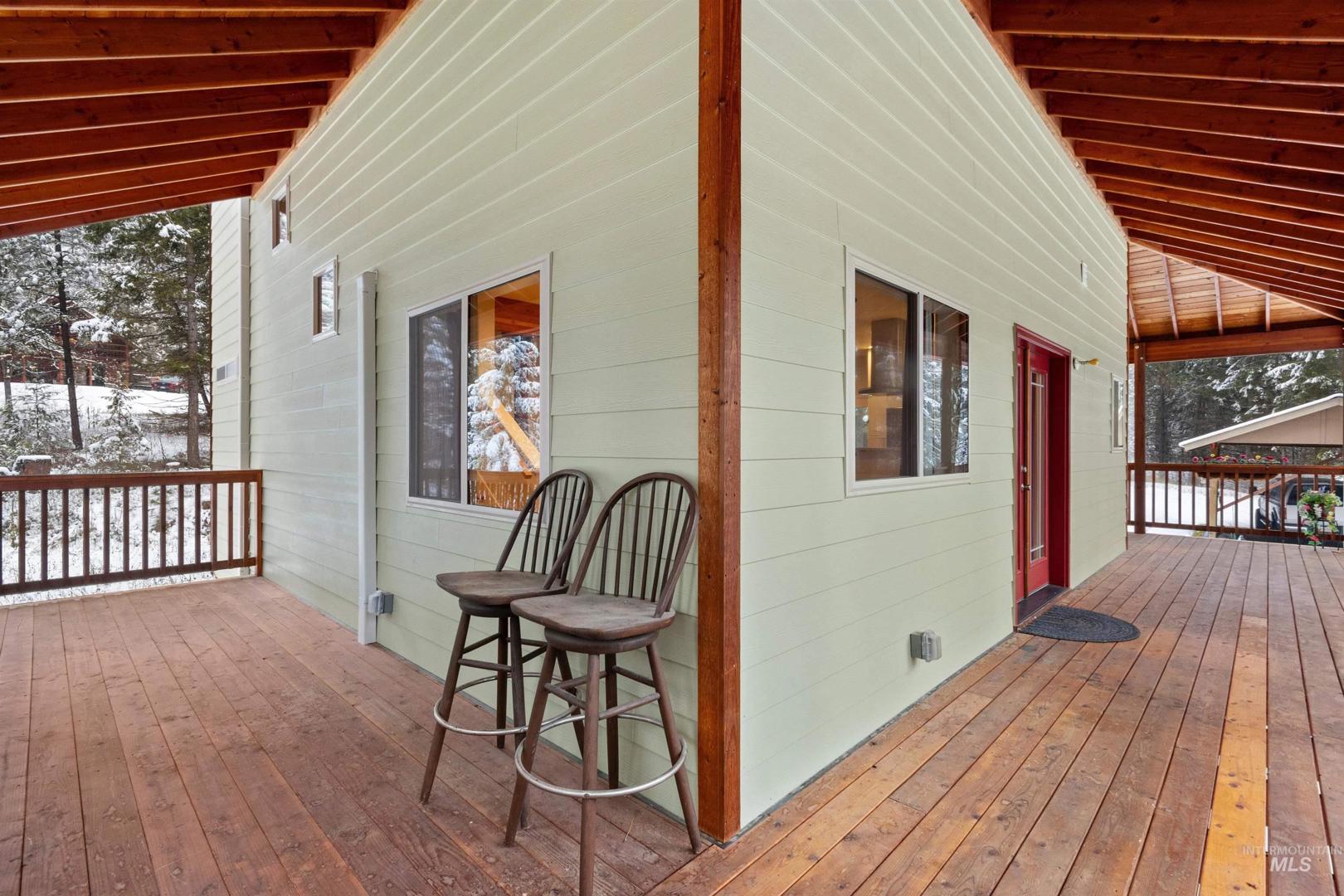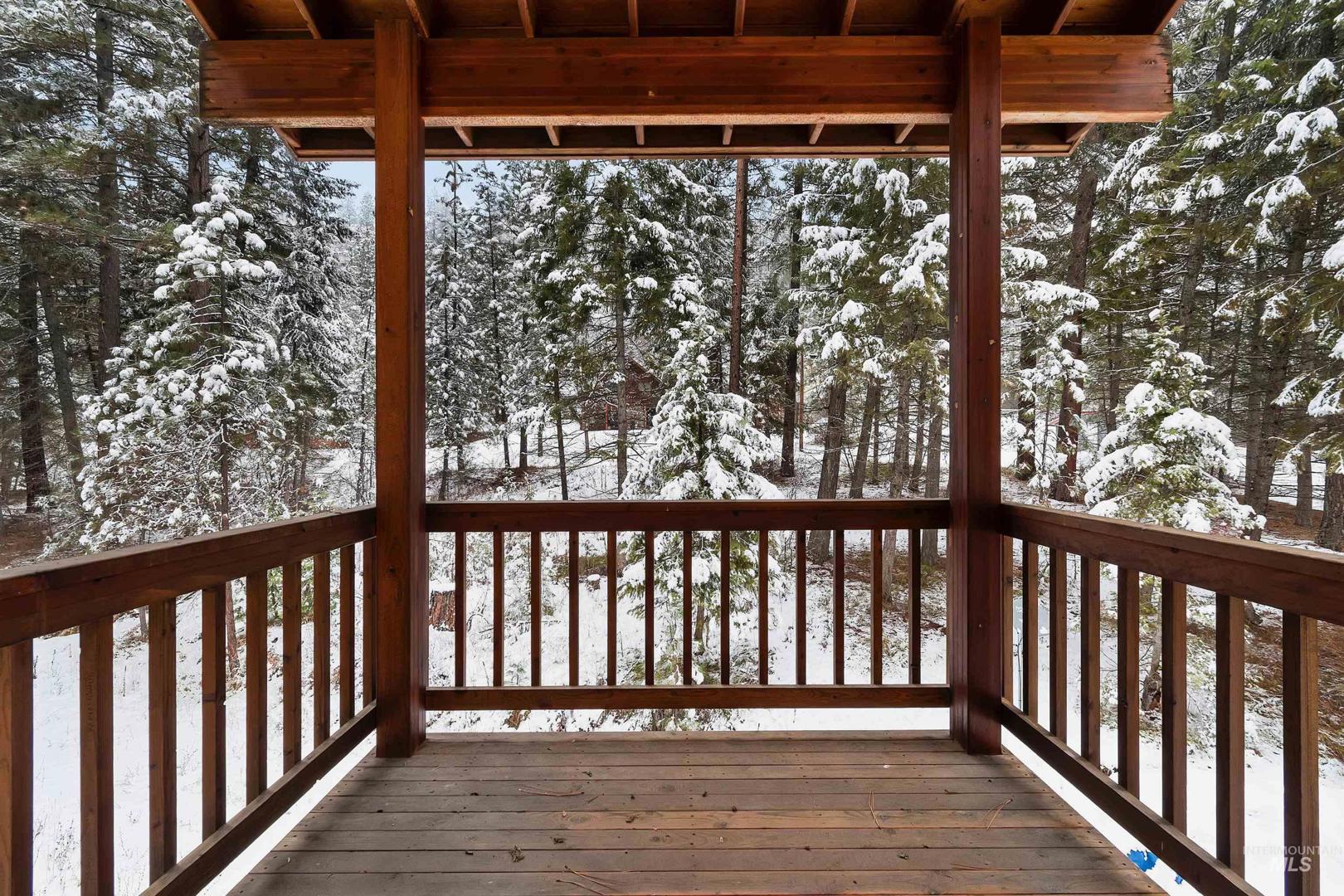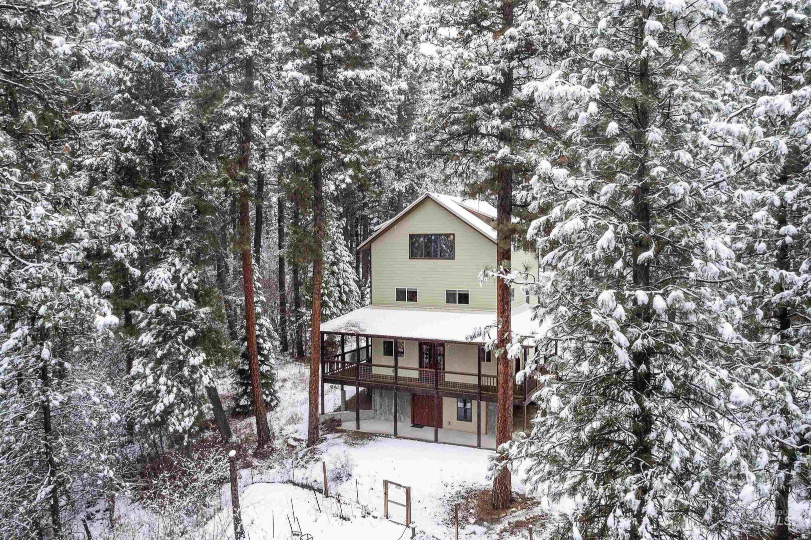 Beautiful custom cabin tucked in the forest with a year-round stream and multiple levels of living space—ideal for multi-family use, shared ownership, or hosting guests with privacy. The main level features quality woodwork, gorgeous wood floors, and a well-designed kitchen with custom soft-close cabinets, pull-out drawers, a prep-sink island, and leathered granite counters. A wrap-around T&G covered deck spans three sides for easy indoor-outdoor living. The walk-out basement has its own entrance and can function as a private apartment, with a new mini-split for added comfort. Additional features include radiant heat, a Vermont Castings wood stove, double-pane windows, water filtration with reverse osmosis, and a patio wired for a hot tub. The second level offers a private suite with its own deck, clawfoot tub, French doors, and mahogany barn doors. The top floor is flexible—perfect as a master suite, bunk room, studio, or media space. Three parcels provide added privacy, plus a fenced garden and RV shelter.