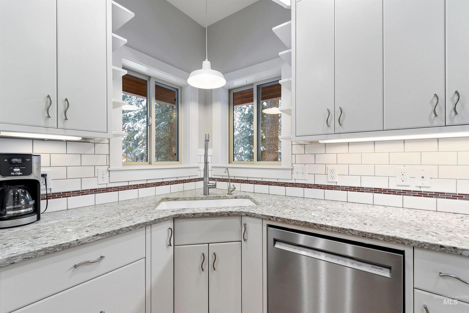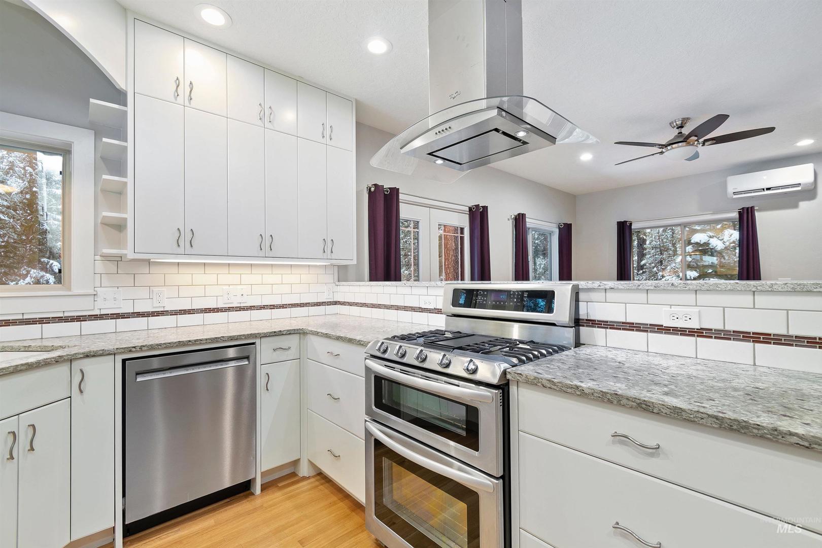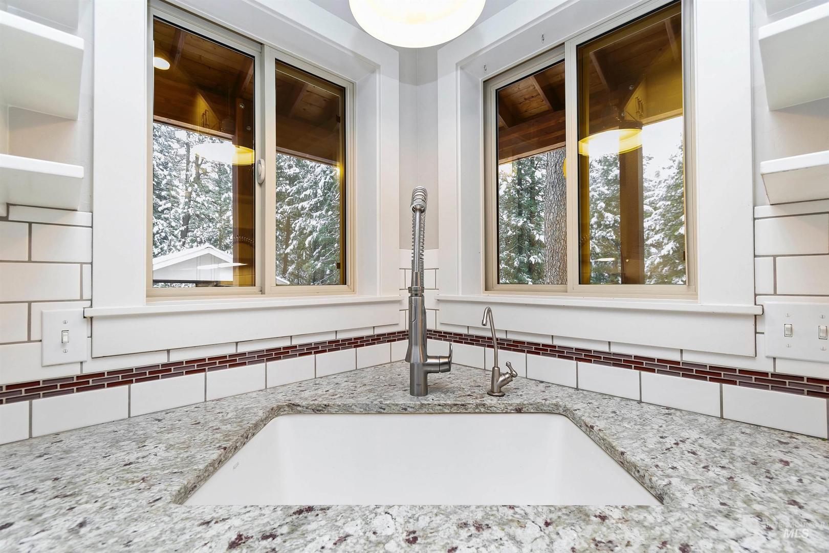 Beautiful custom cabin tucked in the forest with a year-round stream and multiple levels of living space—ideal for multi-family use, shared ownership, or hosting guests with privacy. The main level features quality woodwork, gorgeous wood floors, and a well-designed kitchen with custom soft-close cabinets, pull-out drawers, a prep-sink island, and leathered granite counters. A wrap-around T&G covered deck spans three sides for easy indoor-outdoor living. The walk-out basement has its own entrance and can function as a private apartment, with a new mini-split for added comfort. Additional features include radiant heat, a Vermont Castings wood stove, double-pane windows, water filtration with reverse osmosis, and a patio wired for a hot tub. The second level offers a private suite with its own deck, clawfoot tub, French doors, and mahogany barn doors. The top floor is flexible—perfect as a master suite, bunk room, studio, or media space. Three parcels provide added privacy, plus a fenced garden and RV shelter.
