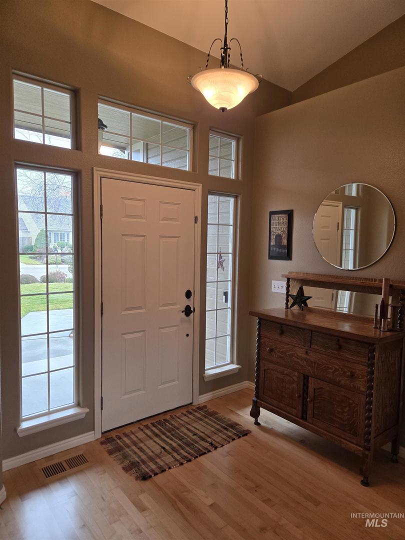 Step inside and enjoy the open, welcoming feel of this beautifully maintained SW Boise home, featuring newly refinished hardwood floors and recent upgrades including HEATED TILE FLOOR in the master bath and a new HVAC system installed in 2025. The flexible 4th bedroom easily functions as a den or home office, and the large formal dining room flows into a cozy great room with a warm fireplace, creating the perfect space for gatherings. The north-facing backyard offers mature landscaping and plenty of room to relax or play. Outside, the oversized 3-car garage includes a built-in workbench and generous storage. This desirable split-bedroom floor plan sits in a quiet, established neighborhood close to schools, parks, and shopping (Costco).