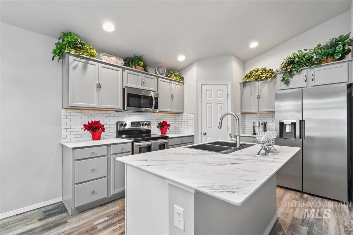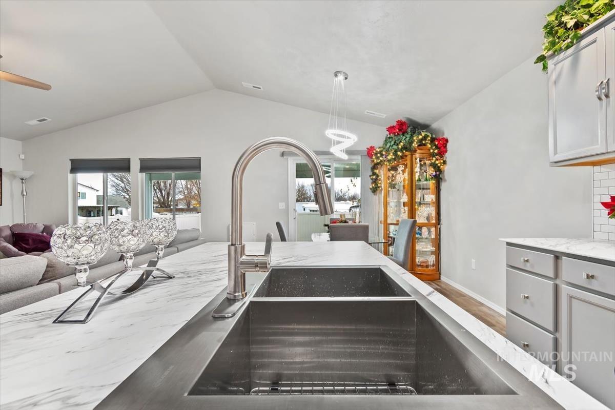 Kitchen just updated with new solid surface countertops, kitchen sink and new tile backsplash! This better than new home is waiting for you! Enjoy private living being on the end lot with an oversized front yard and ample amounts of parking. This wonderful spacious split floorplan offers 2 bedrooms at the front of the house with a full bath, and your primary suite at the back of the house with a private en suite to retreat to after a long day. Open concept kitchen and living room with the perfect kitchen island/breakfast bar that makes entertaining family and friends a breeze. All the work has been done with beautiful backyard landscaping, sprinklers and fencing. Spend warm evenings and sunny mornings on your expansive covered patio sipping coffee or barbequing with friends. Conveniently located just 5 mins from I84, an abundance of new shopping and dining options along Hwy 20/26, GALS Sports Complex, and more! Mortgage savings may be available for buyers of this listing!