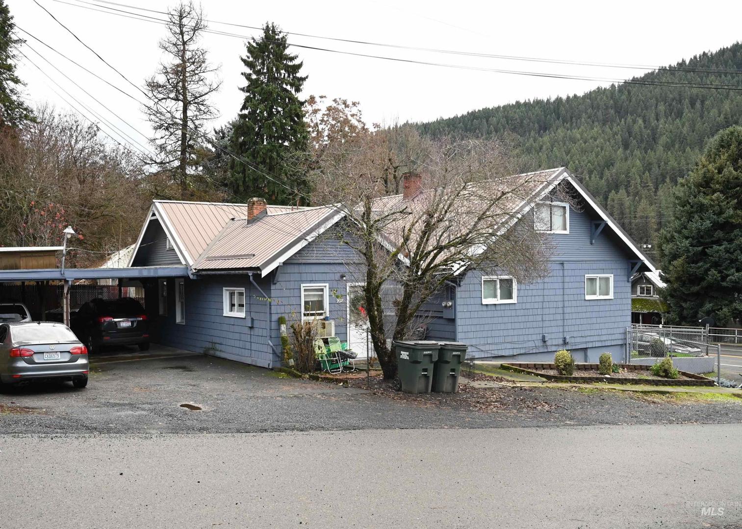 This house is located in the beautiful rural town of Orofino and is near schools, shopping, and the river. Potential for income as there is an attached guest house with an additional bedroom, 3/4 bath, and kitchen area that is currently used as a rental, could also be used as a guest house or in-law suite. The attic has an open area that has been sheet rocked, accessible by drop-down stairs in enclosed front porch. There is a large carport and an additional paved parking space on the lower level, so parking is not a concern. Effective year built is 1961.