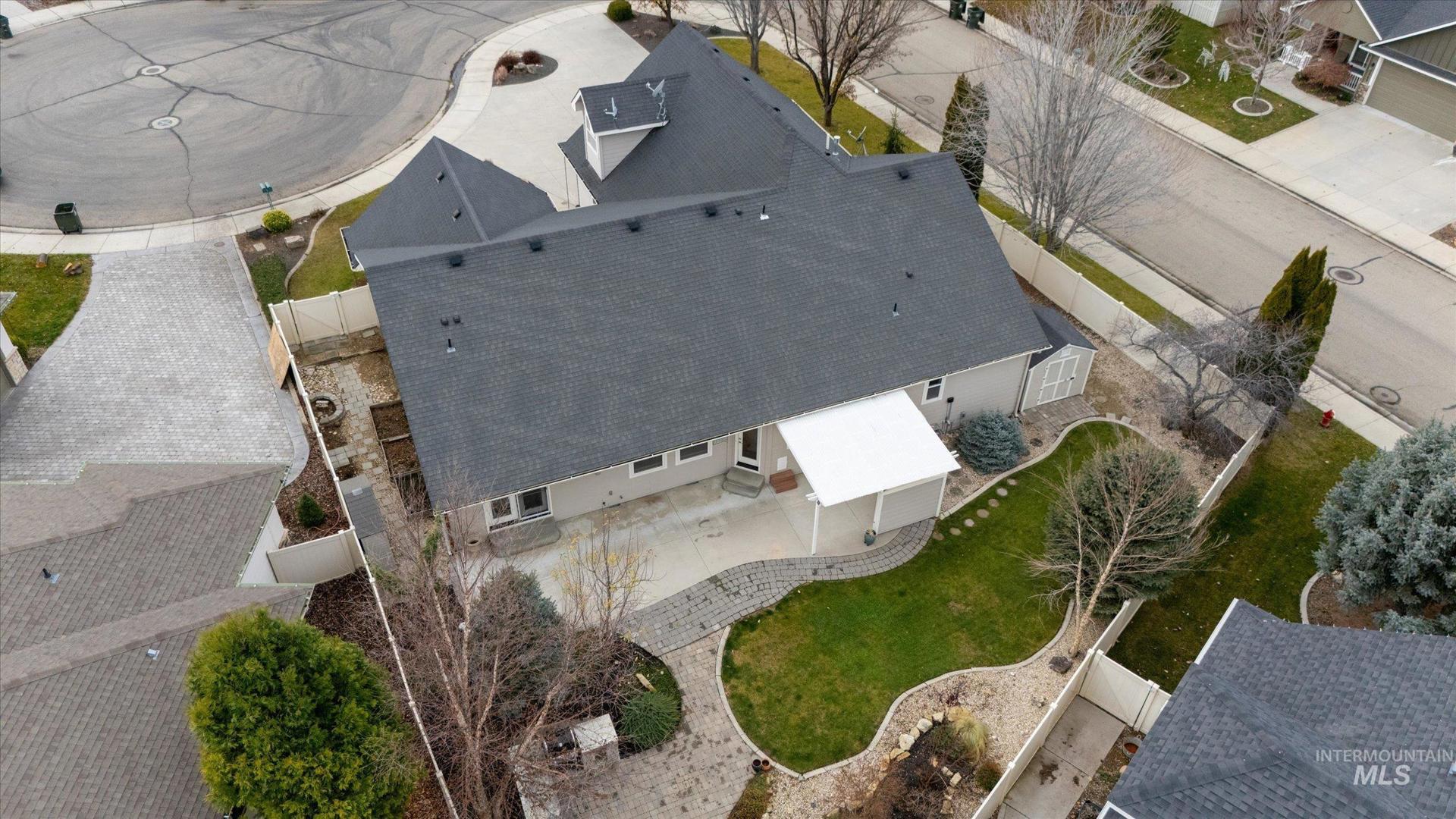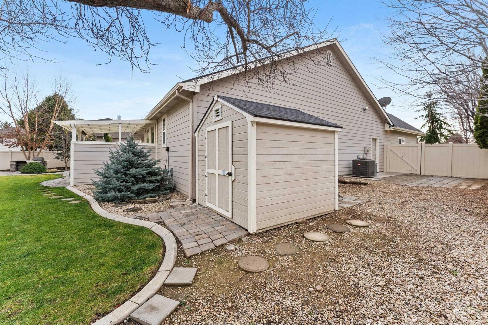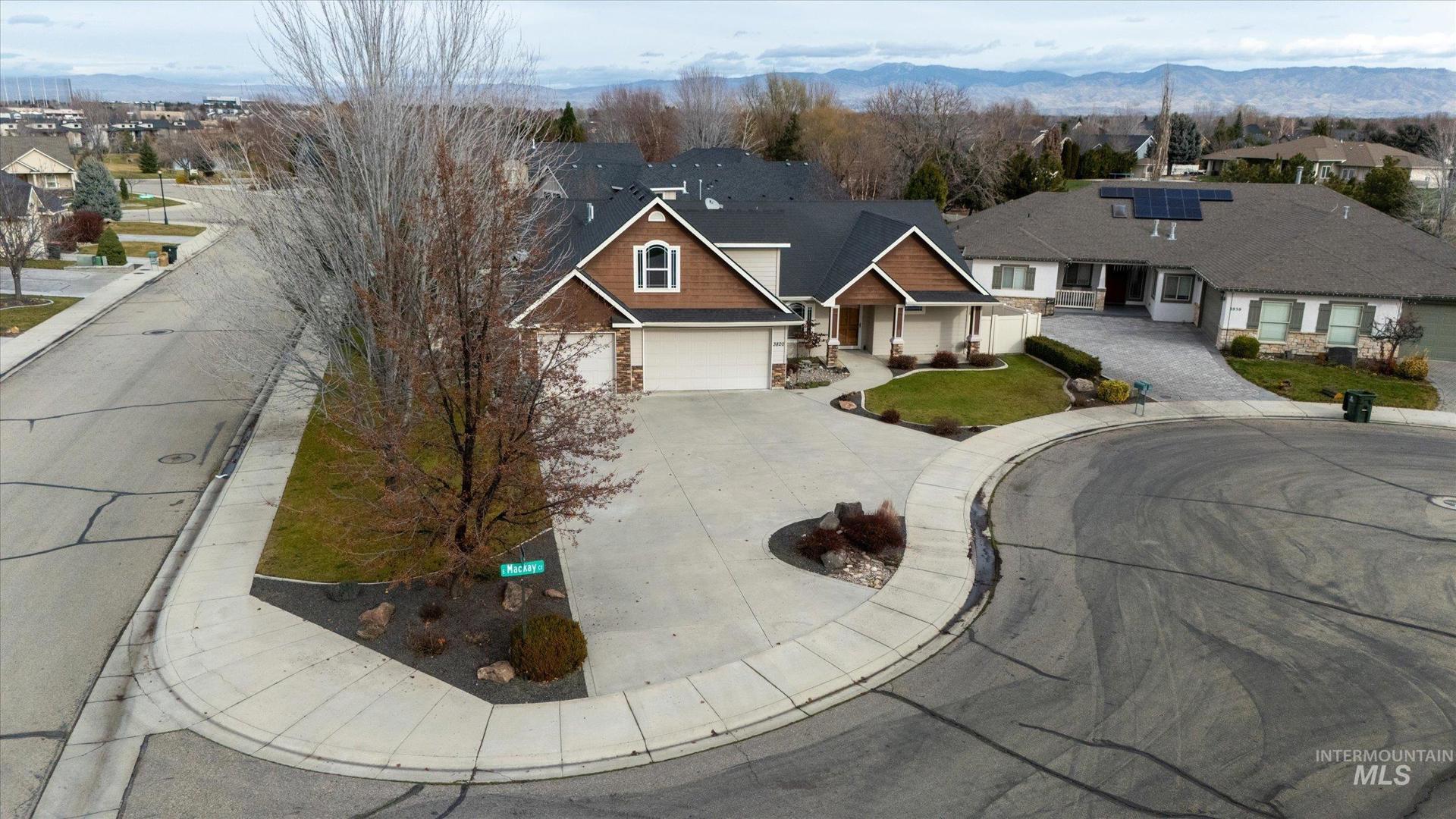 Located just minutes from The Village and conveniently off Eagle Road, this 2701 sq ft turn-key home offers an open floor plan with vaulted ceilings and expansive windows that fill the space with natural light. Granite kitchen counter tops, free standing oven/stove. Property includes a central vac, equip & plumbed. The main-level primary suite features a spacious layout, custom bathroom with a soaker tub, separate shower, dual vanities, heated floors, and a walk-in closet. Upstairs, a second master suite occupies the entire level, complete with its own large bathroom and walk-in closet. The beautifully landscaped yard with irrigation that feels like a private retreat, showcasing a tranquil stone water feature, covered seating area, built-in BBQ, raised garden beds, and two storage sheds. This home has a circular driveway and an oversized 4-car garage, including a high-amp setup in the extended 2-car bay, and 220 volt shop. Location is 5 minutes from freeway, 6.9 miles from airport, 1.6 miles from St Lukes.