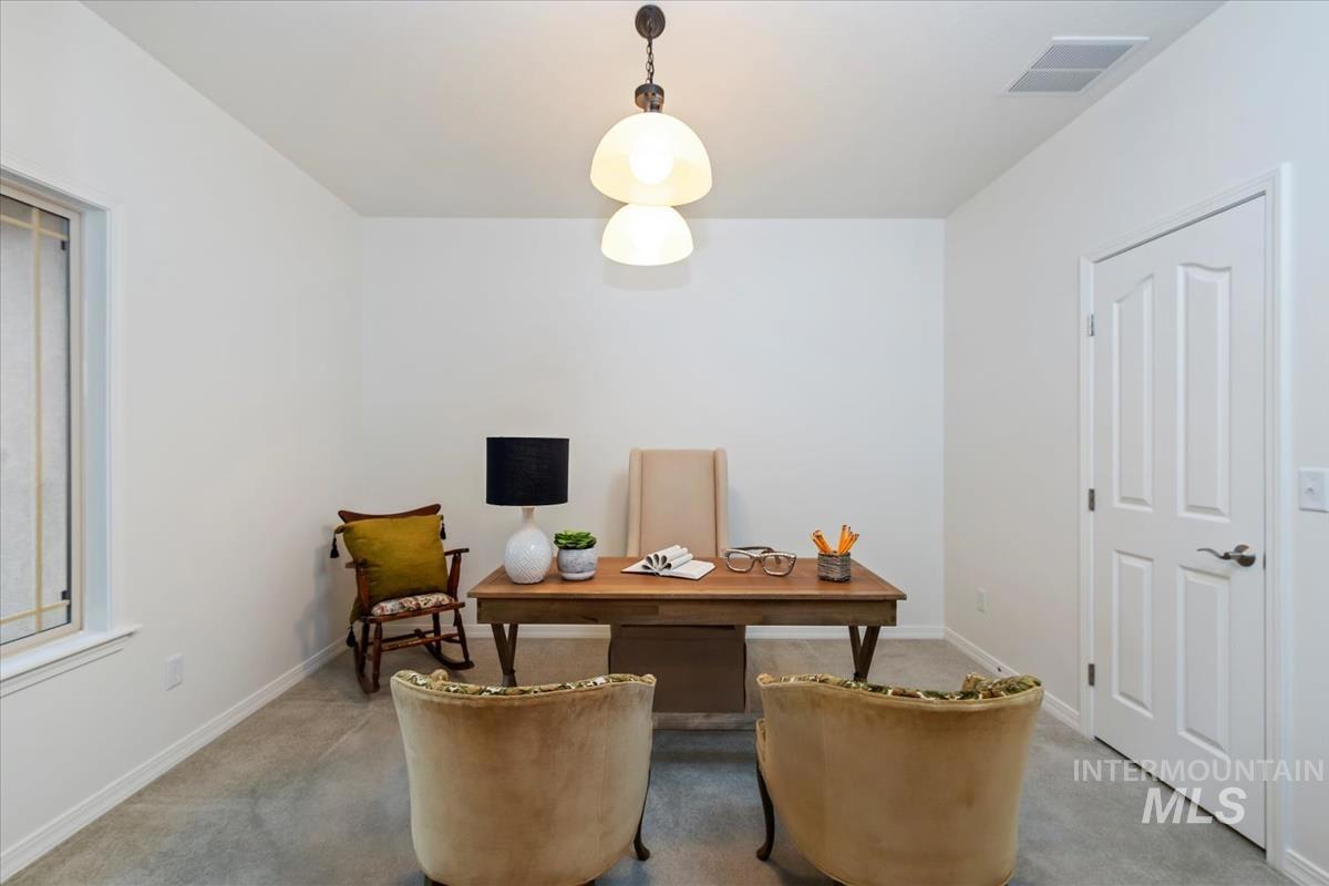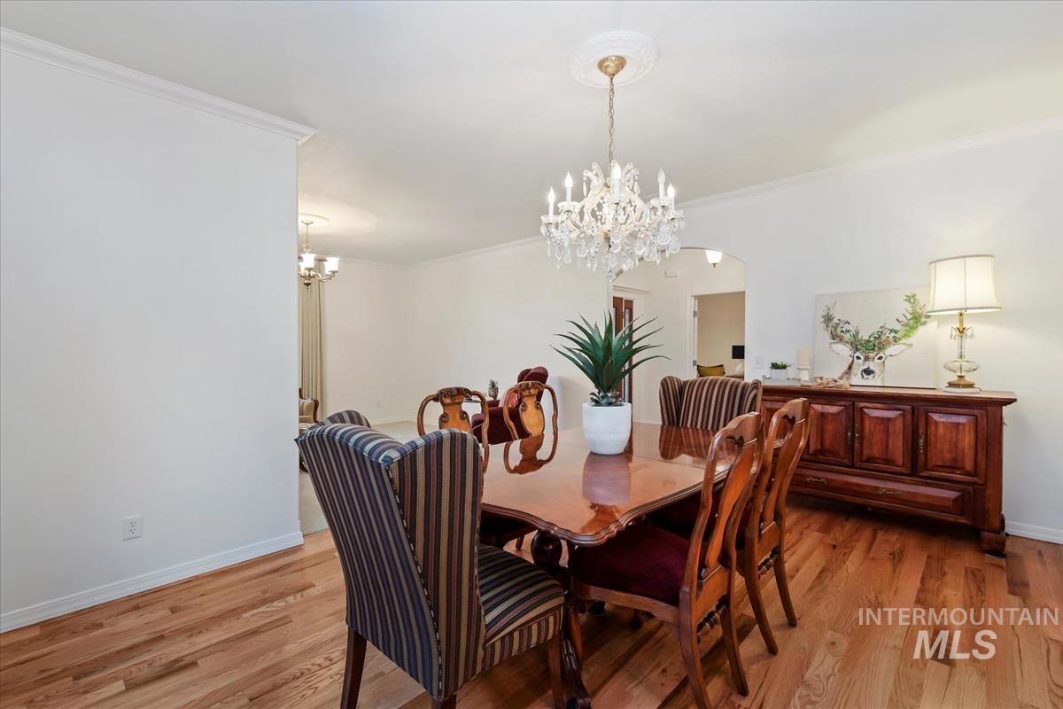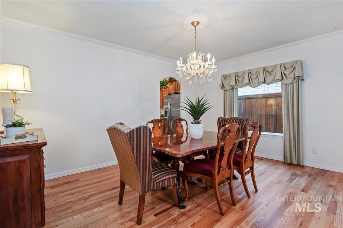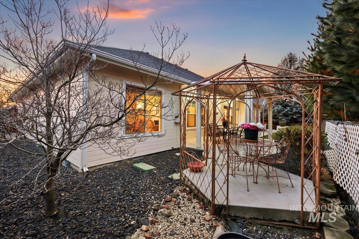 Located in Packard Estates, an established & stunning Meridian community, this immaculate single-level home with handicap accessibility features including zero-threshold entries & wide doors/hallways. This home has an exceptional layout & flow! The stucco exterior, covered entry & gorgeous front door set the tone. Inside, the home flows seamlessly from the foyer to the formal living/dining rooms, private office with French doors & closet (can serve as a 4th bedroom), kitchen & spacious great room with vaulted ceilings, corner gas fireplace & abundant natural light. Updates include brand new interior paint, granite kitchen countertops, updated appliances, new dishwasher, newer fridge & water heater (2-3 yrs). Kitchen has a corner pantry, desk area & plenty of stained wood cabinetry. The backyard features a charming gazebo & extended concrete walkway connecting the covered patio, 3-car garage & raised garden beds. So much privacy in this backyard! The primary suite has a large walk-in closet, roll-in shower with grab bars, separate soaker tub & backyard access. Close to The Village, St. Luke’s, freeway access & downtown Meridian.