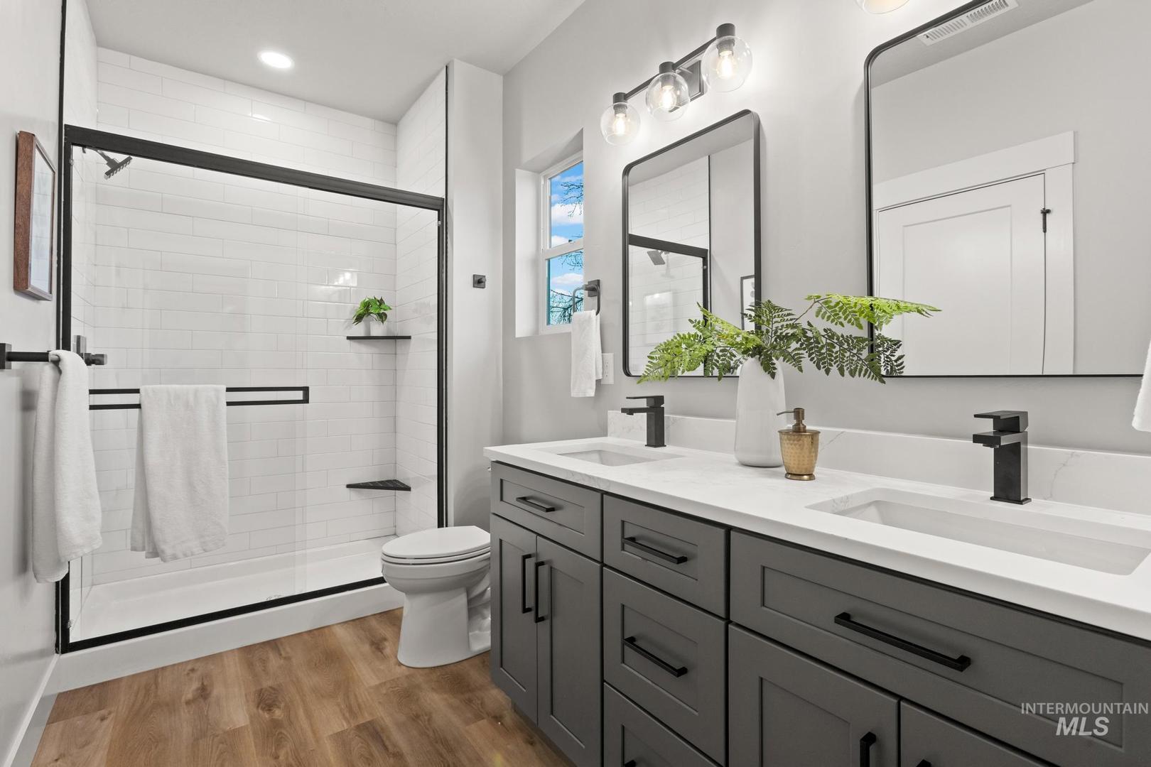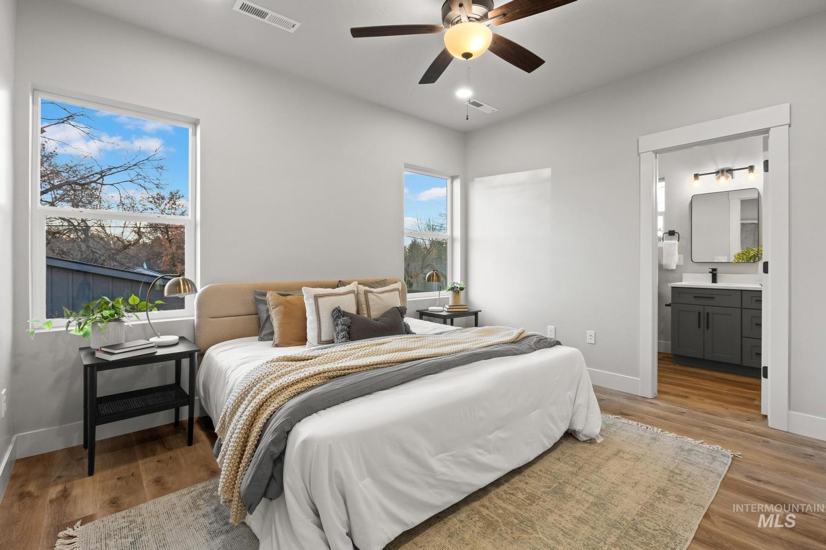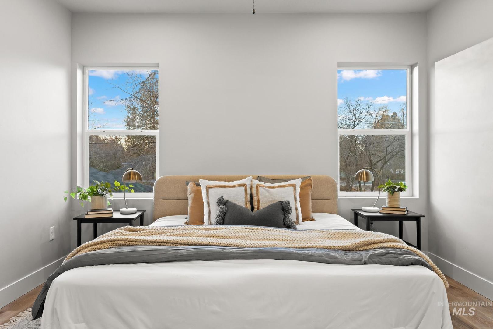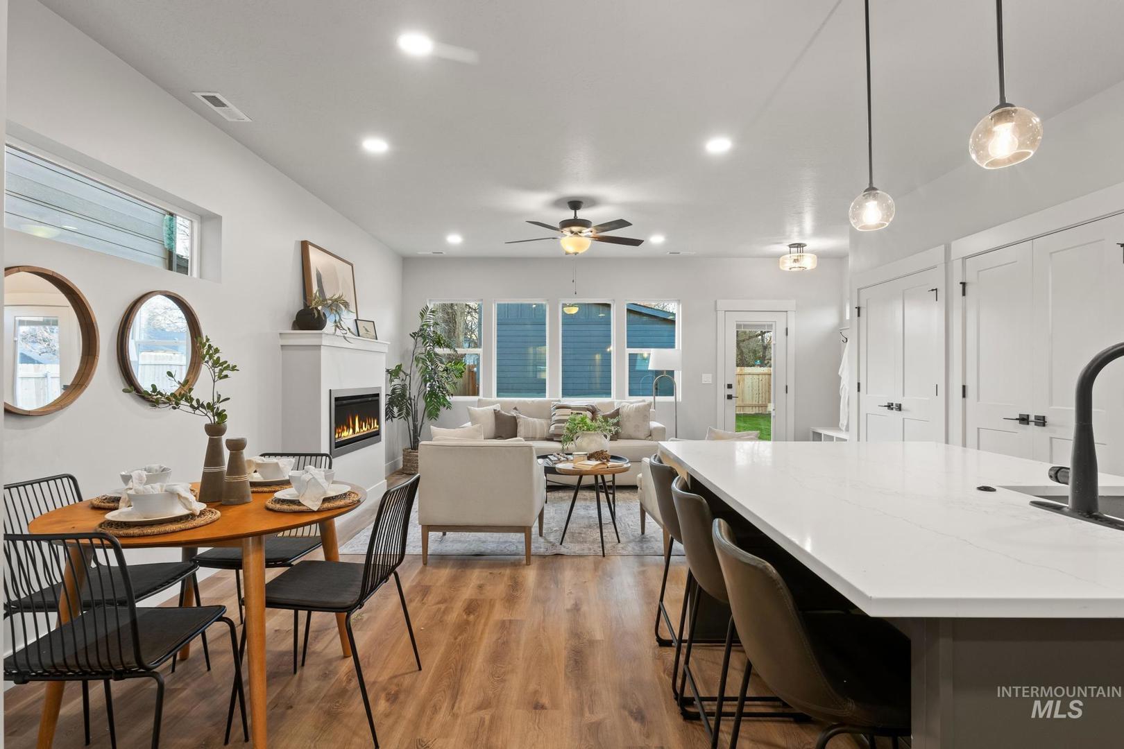 Be the first to live in this beautifully crafted new construction home, perfectly placed in the heart of the Boise Bench. With 4 bedrooms, 3 bathrooms, an oversized lot and 1,724 sq ft of living space, this thoughtfully designed residence offers the ideal blend of modern comfort and functional living. The open-concept main level showcases a stunning kitchen equipped with quartz countertops, custom cabinets, stainless steel appliances, and an oversized sink. Every space feels elevated by the consistent use of high-end luxury vinyl plank flooring and quality finishes throughout. Upstairs, the private primary suite features a double-vanity bathroom with a walk-in tile shower and a large walk-in closet. Additional bedrooms provide versatility-perfect for guests, hobbies, or a home office. Enjoy outdoor living in the fully fenced, fully landscaped backyard complete with automatic sprinklers. The 2-car garage includes EV charging, offering practicality for today and flexibility for the future. With its unbeatable location minutes from downtown, shopping, airport access, and local Boise favorites, this home gives you fresh construction paired with comfort, convenience, and long-term appeal.