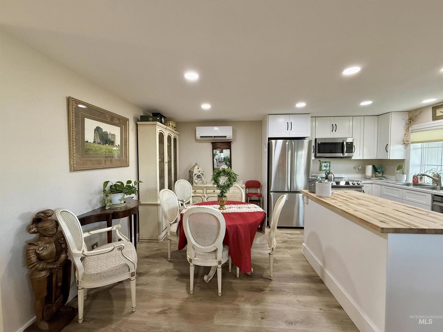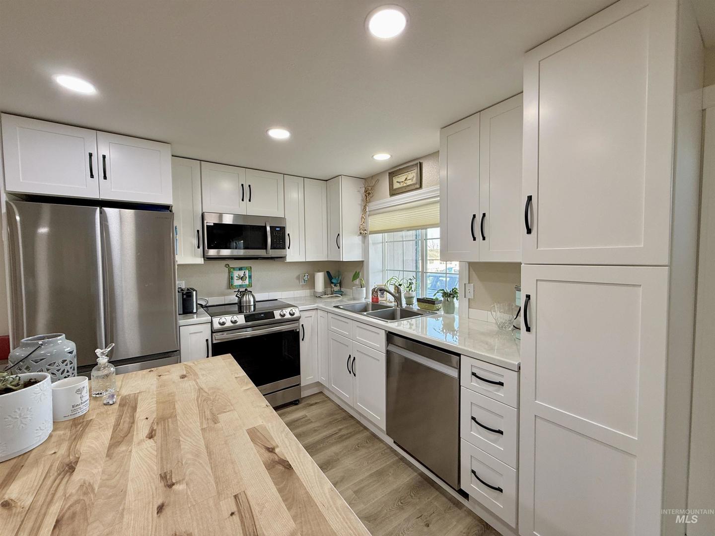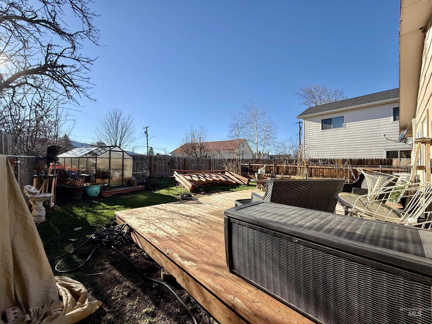 Beautifully remodeled 2 bedroom, 2 bathroom home in a fantastic neighborhood! Step inside to a fresh, modern interior featuring new flooring, drywall, lighting, windows, and a brand-new mini-split heating system for year-round comfort. The stunning kitchen offers stainless steel appliances, an island with butcher block countertop, and all new finishes throughout. The primary suite is a true retreat with its gorgeous walk-in tile shower and a spacious walk-in closet. A new deck with a sliding glass door off the master provides easy access to the outdoor space. Enjoy the large fenced backyard complete with two raised garden beds and a greenhouse—perfect for gardeners. The driveway accommodates two vehicles, and the one-car garage includes an enclosed workshop for extra storage or projects. Move-in ready and beautifully done—this one is a must see!