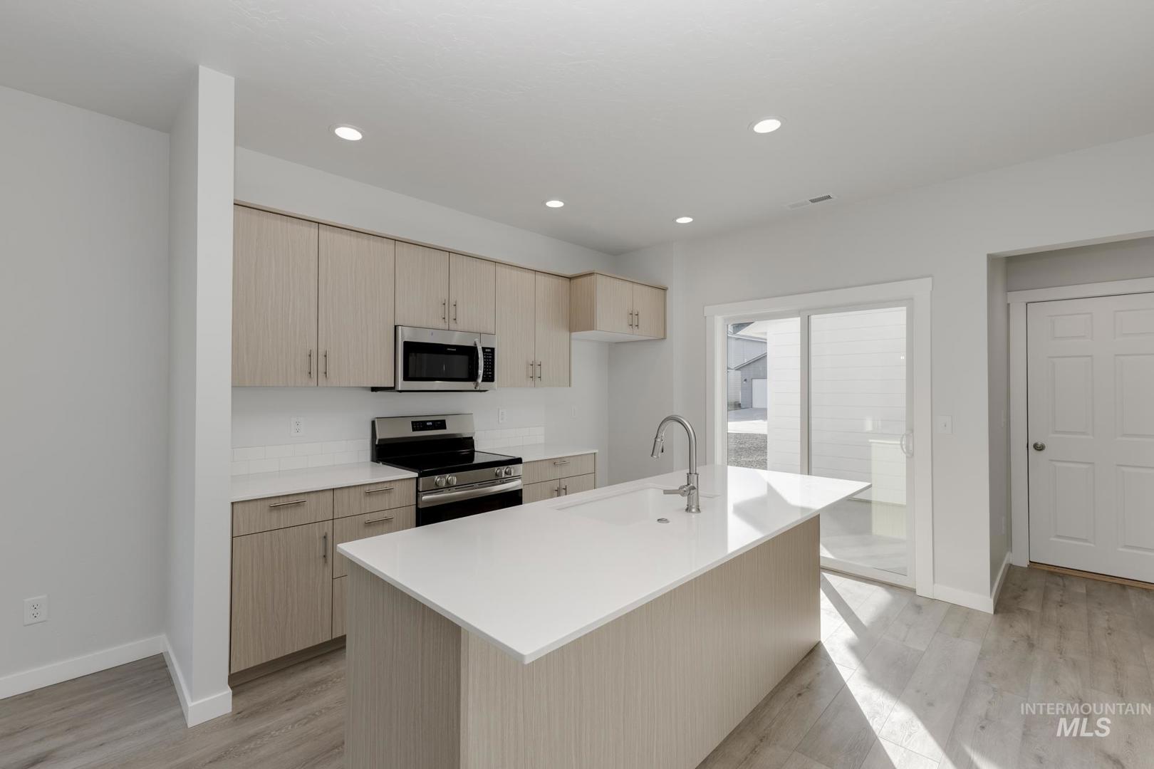 Get up to $30K now thru 12/31/2025 with the Festival of Homes Promo! This new home located in beautiful Kuna, Idaho has all the comforts you need & more! Experience contemporary living at its finest in the Carlton 1676. Enter to 9ft. ceilings that span across the main level. The kitchen comes with stainless steel appliances and stylish solid surface countertops, adding both functionality and aesthetics to the kitchen. The open-concept design allows for a seamless flow from one room to another. Venture upstairs to find three comfortable bedrooms, including the luxurious primary suite, complete with a tranquil en suite bathroom featuring a dual vanity and a spacious walk-in shower. An additional bonus room upstairs offers flexible space for a home office, playroom, or media center. The attached alley-load garage offers plenty of storage space for all your needs, plus easy access to the home. This home is perfect for those seeking both style and functionality. Photos are of the actual home!