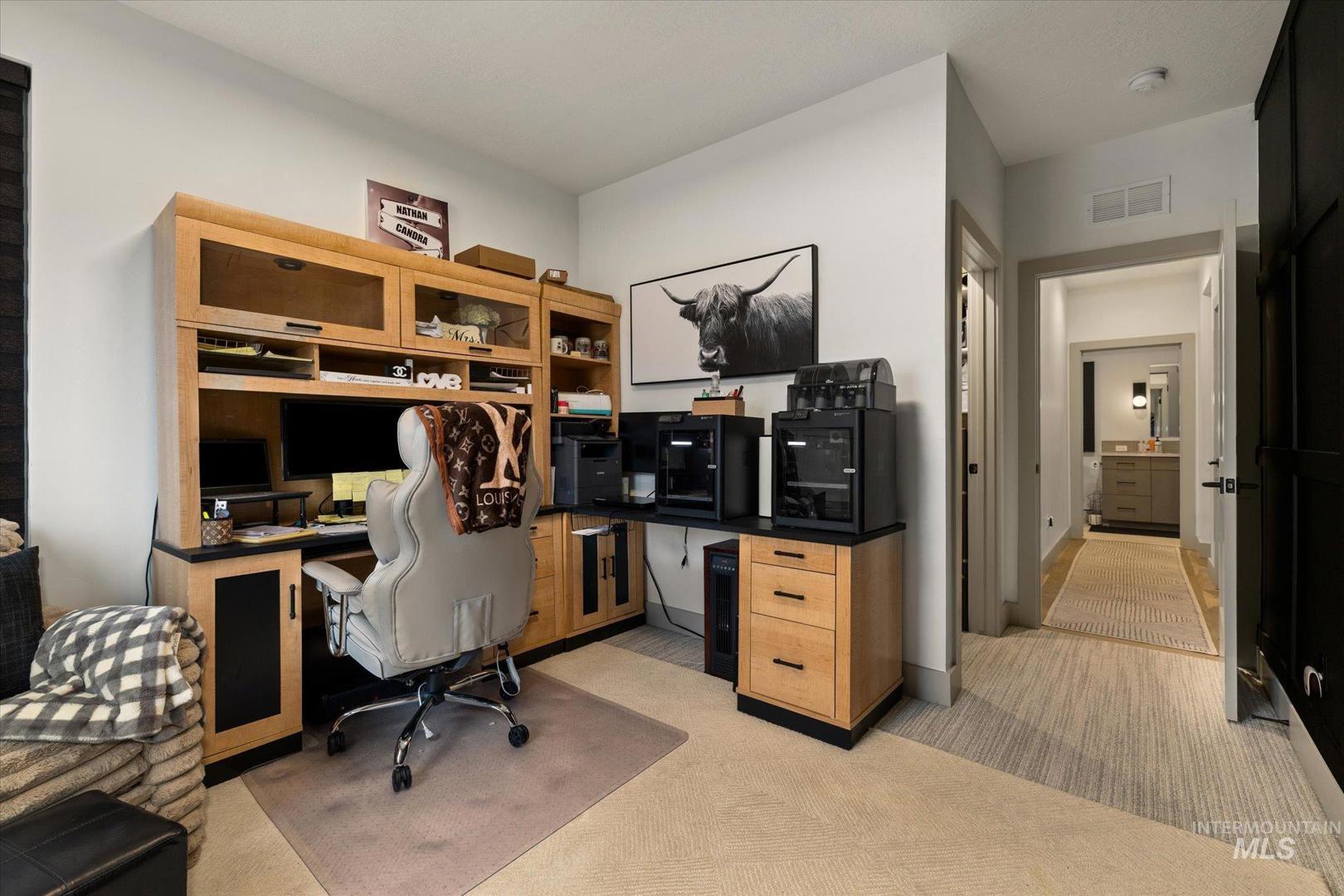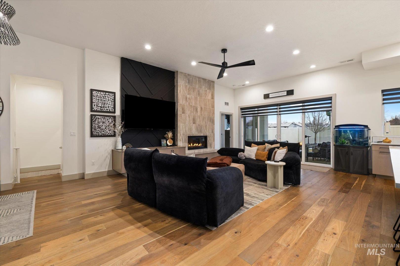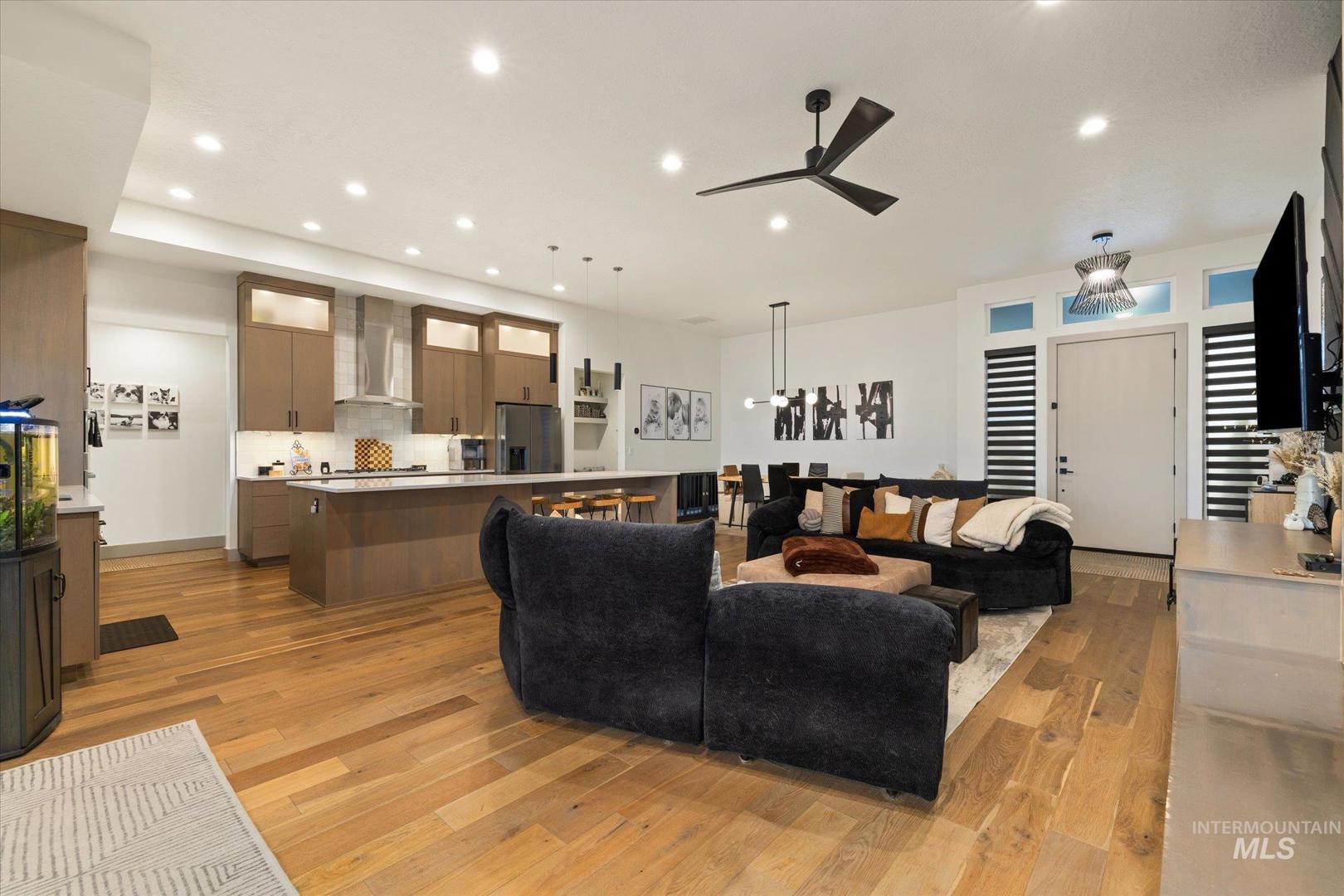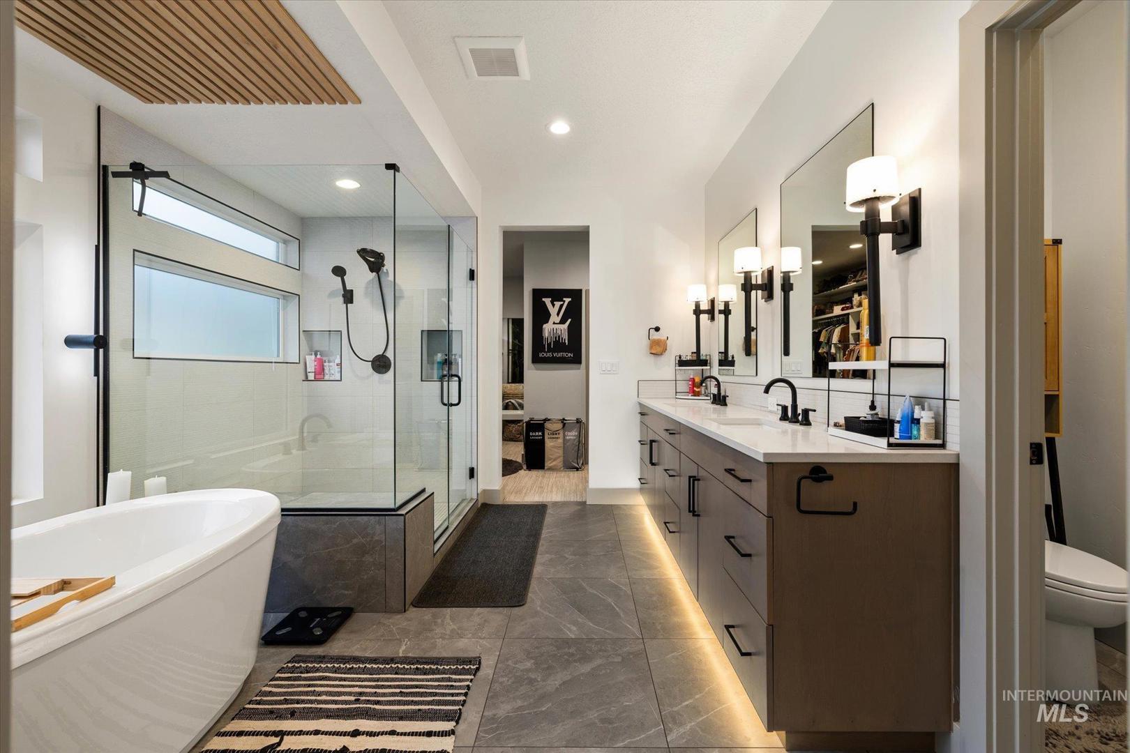 SELLER WILL PAY CONCESSIONS, BETTER THAN NEW & LOADED WITH UPGRADES , this stunning ZACH EVANS-built home offers an open floor plan and split-living design offering 4 bedrooms, 3 full bathrooms, and a private guest suite ideal for multigenerational living. The spacious kitchen features a large island, built-in coffee bar with accent lighting, and flows seamlessly into the living area with a cozy fireplace—perfect for gatherings and everyday living. A bright pocket office with large windows and a functional mud room add everyday convenience and flexible space. The primary suite includes a glass barn door, under-cabinet floor lighting in the bathroom, and soft-close cabinetry throughout. Enjoy outdoor living with a fully fenced backyard, a large 24x13 patio, an additional seating area, built-in fire pit pad, and an inviting front patio ideal for relaxing. Updated landscaping with new trees and plants, concrete curbing front and back, and full sprinklers with drip irrigation complete the exterior. Additional features include wireless security, surround sound pre-wire in the living room, TV mount, reverse osmosis, water softener, insulated garage doors, and a deep 3-car garage with a split heating and cooling system, offering comfort and functionality year-round. Truly a must-see home.