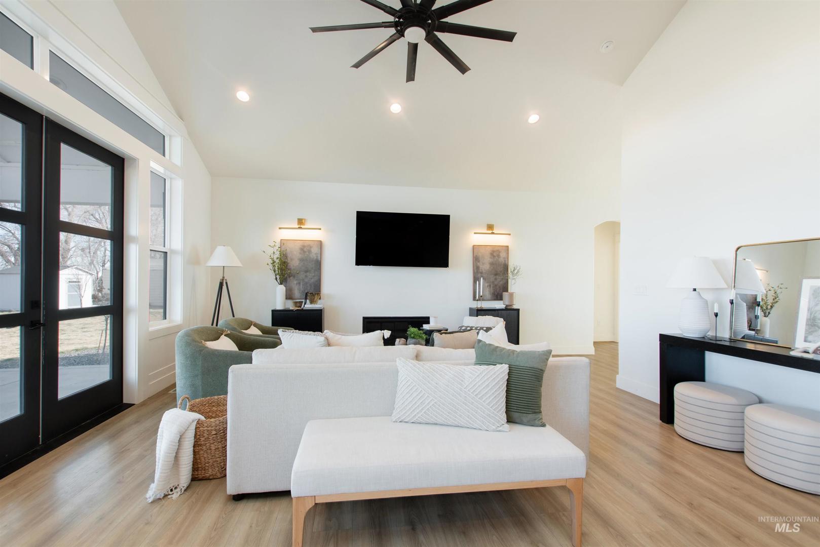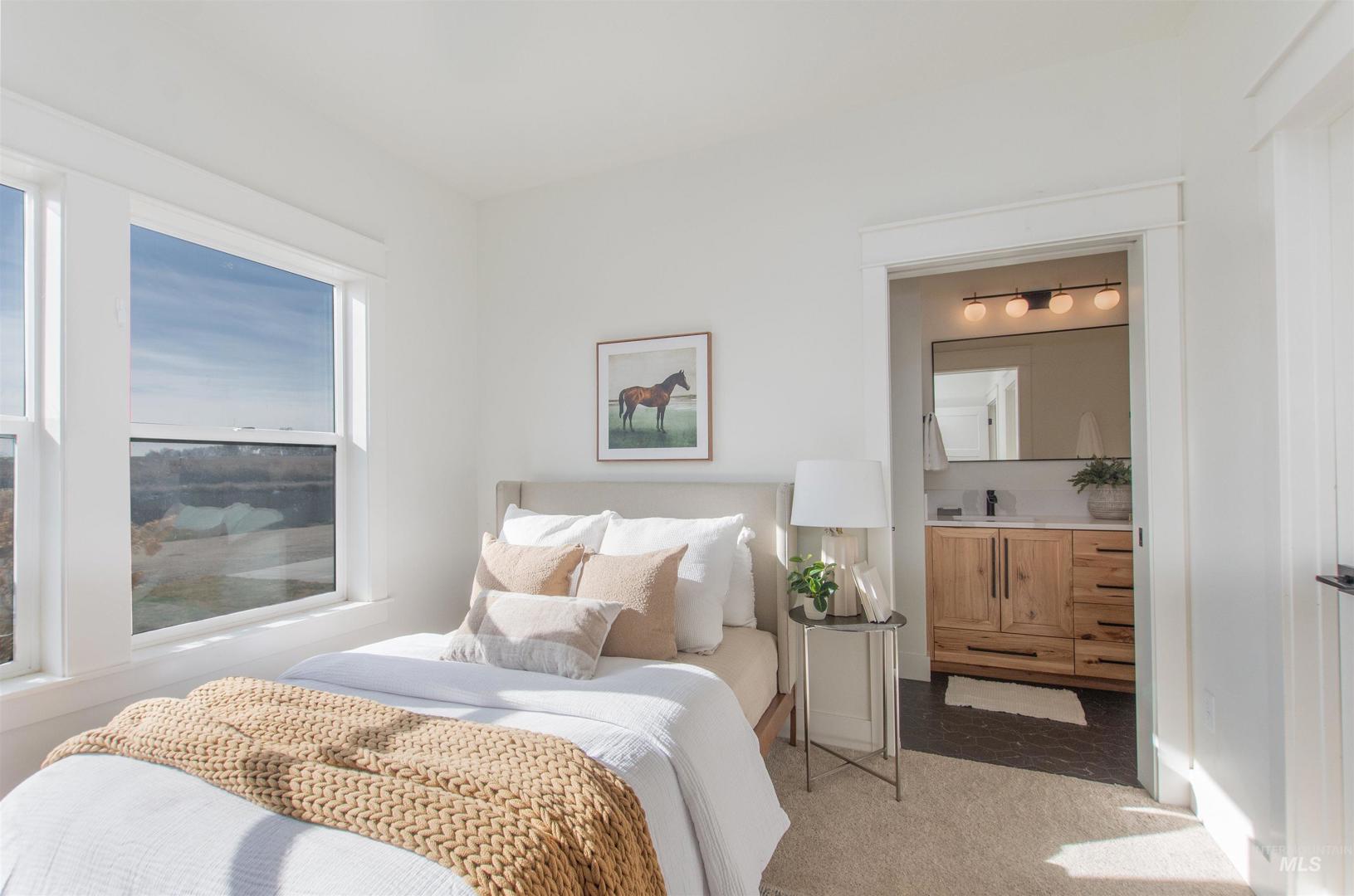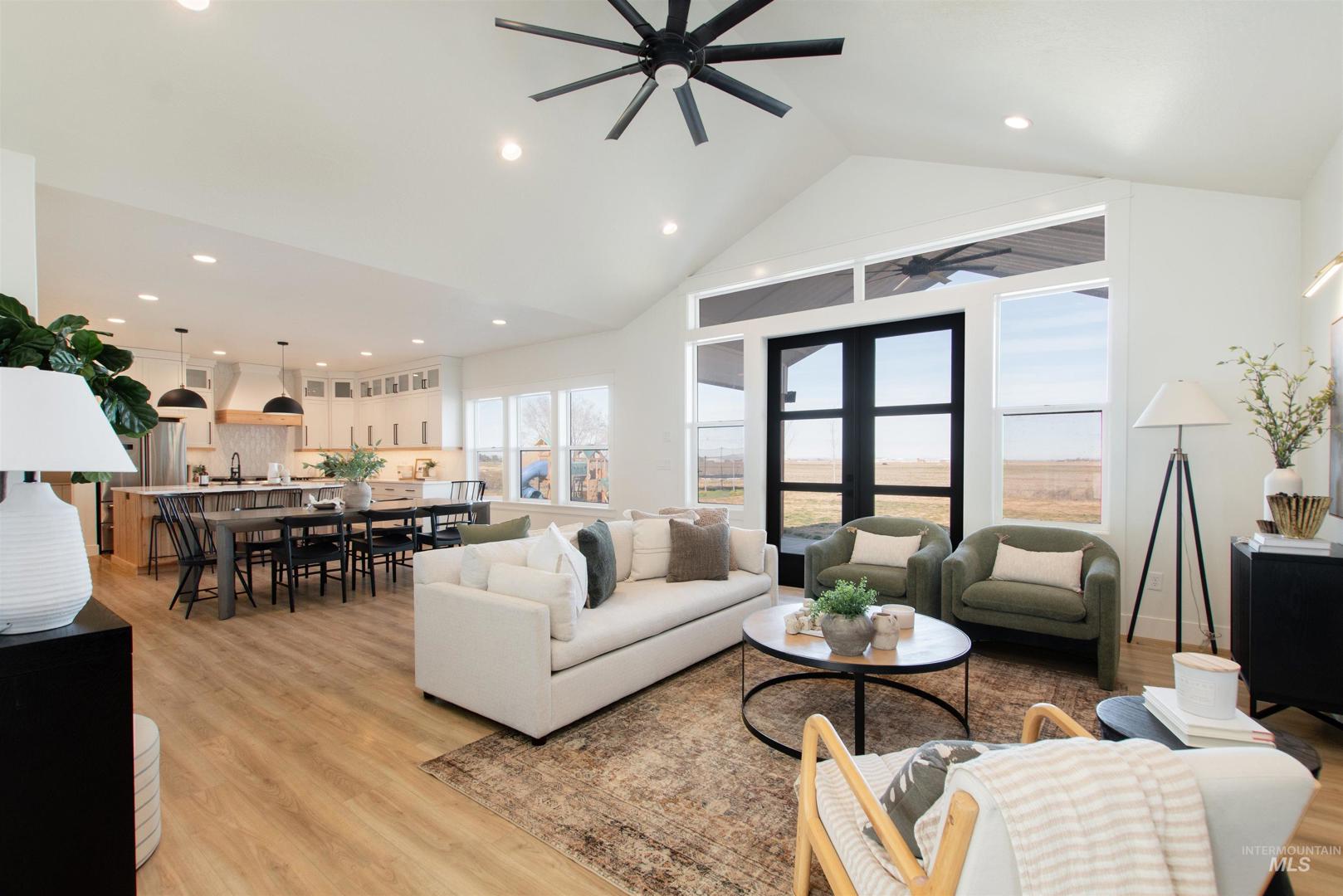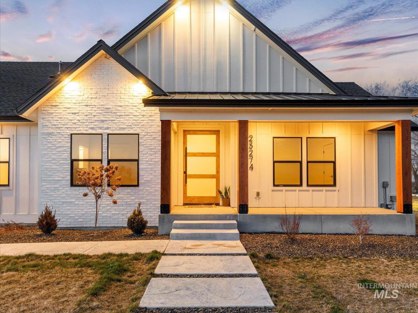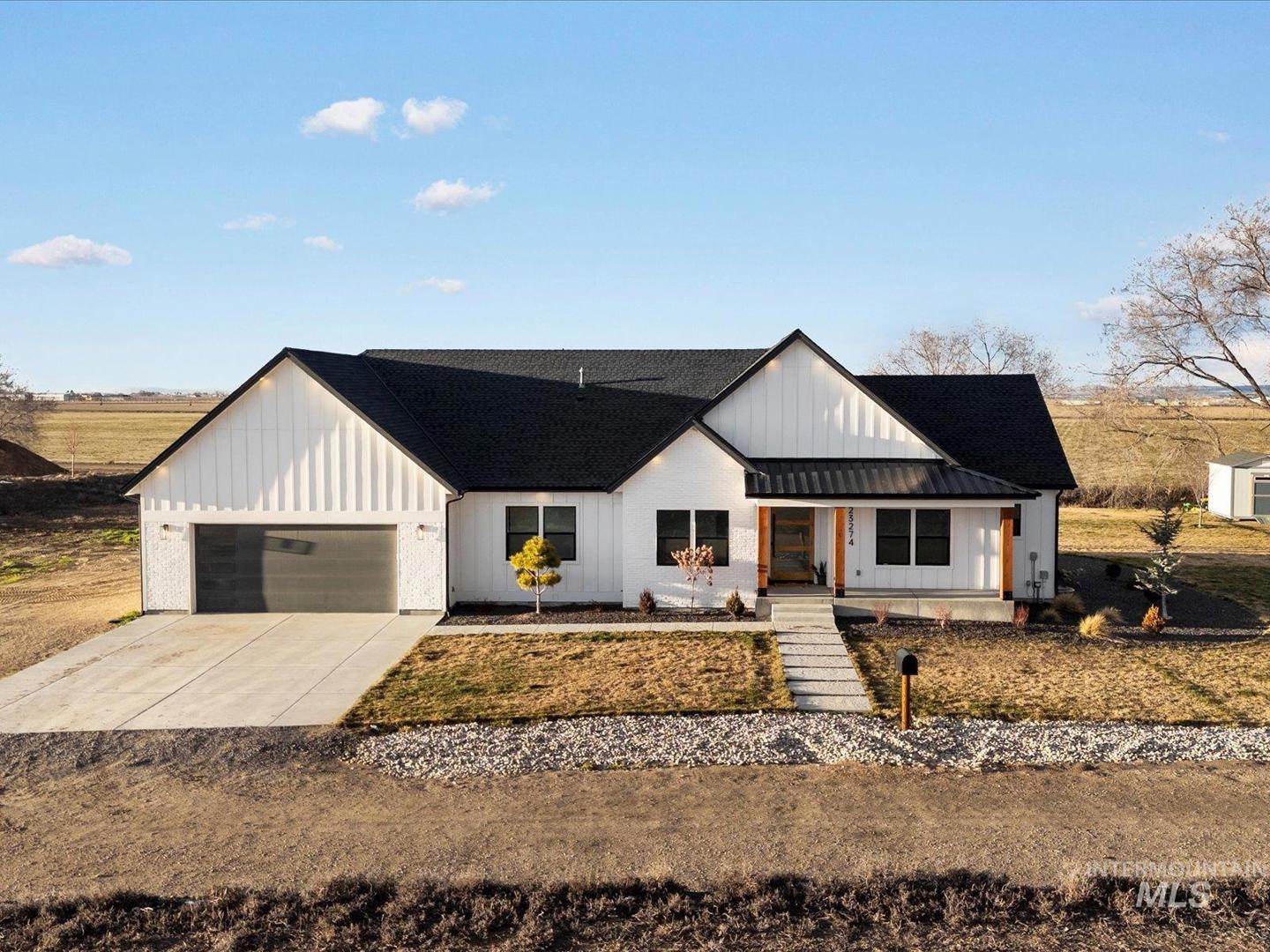 Custom Modern Farmhouse set on 3.29 acres in the peaceful countryside of Greenleaf, this thoughtfully designed home offers a rare combination of space & privacy w/ no back neighbors and amazing views. Offering 2,054 sq ft on the main level & 2,054 sq ft of unfinished basement ready for you to make it your own. Featuring 3 bedrooms, 2.5 bathrooms on the main level, this property provides a functional layout suited for today’s buyers seeking room to live, work and grow. The spacious basement offers flexibility for additional living space, multigenerational use or entertainment. With no HOA and convenient access to I-84, this property delivers quiet country living without sacrificing accessibility. The land is fully equipped with irrigated pasture, water shares included and pressurized irrigation! This is ideal for animals, recreation or future expansion. Inside, the open-concept floor plan is complemented by vaulted ceilings, quartz countertops throughout, LVP flooring and a 48" natural gas range. The home is serviced by all-natural gas (Unique for this location) and a robust 400-amp electrical system with transformer, supporting future shop construction, hobbies or additional improvements. Automotive and recreation enthusiasts will appreciate the oversized garage with overhead storage, Tesla charger and additional 50-amp exterior plug. This property is truly one of a kind!