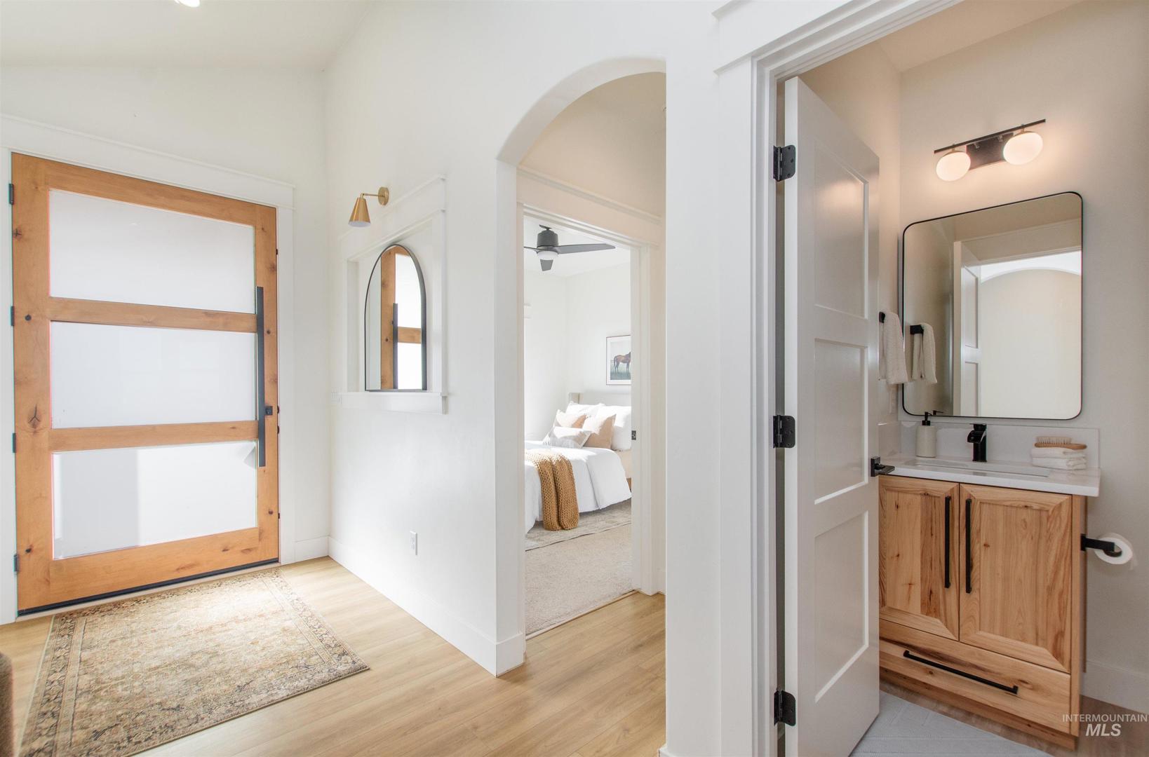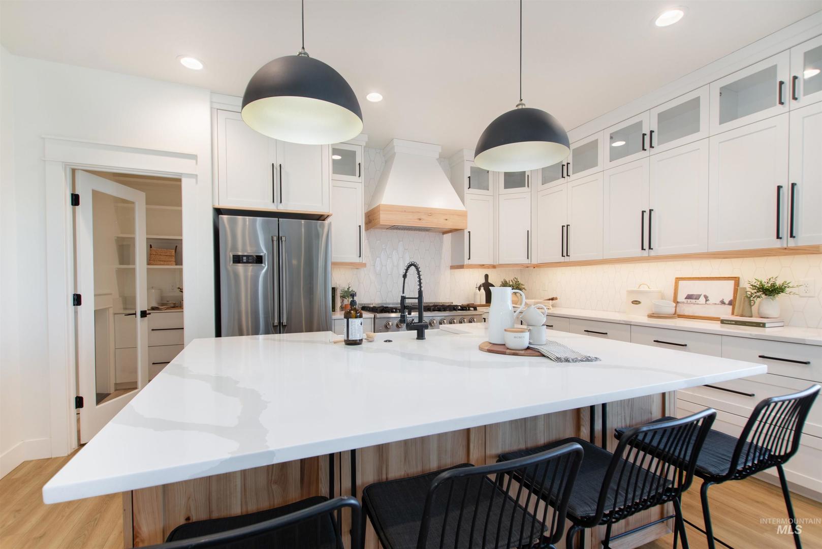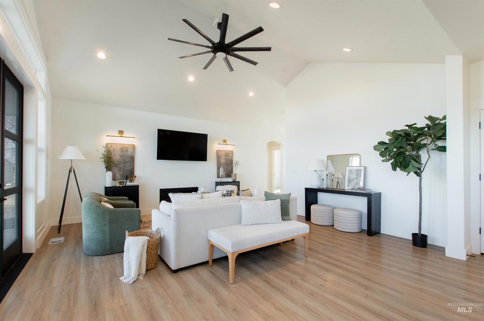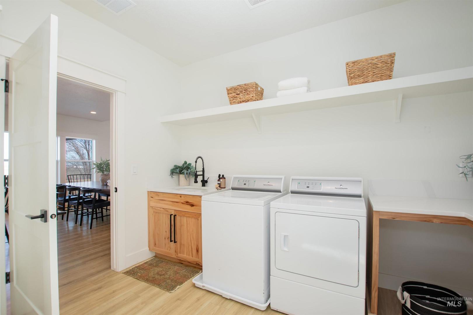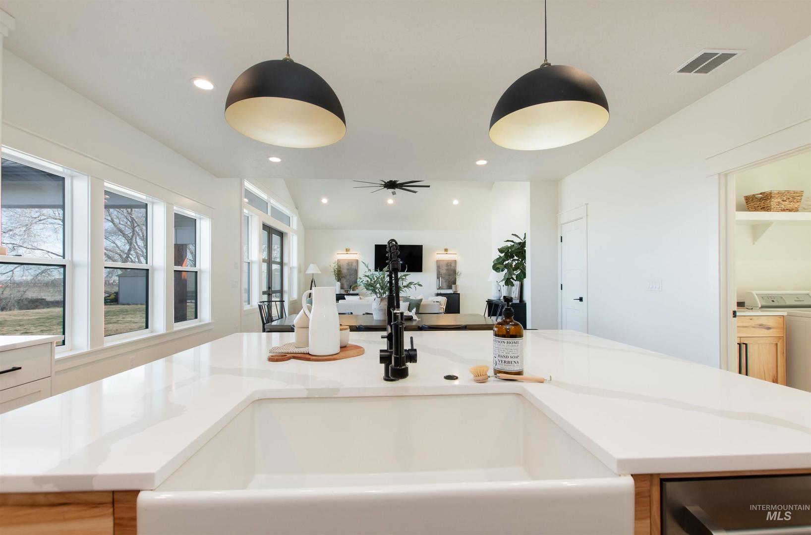 Custom Modern Farmhouse set on 3.29 acres in the peaceful countryside of Greenleaf, this thoughtfully designed home offers a rare combination of space & privacy w/ no back neighbors and amazing views. Offering 2,054 sq ft on the main level & 2,054 sq ft of unfinished basement ready for you to make it your own. Featuring 3 bedrooms, 2.5 bathrooms on the main level, this property provides a functional layout suited for today’s buyers seeking room to live, work and grow. The spacious basement offers flexibility for additional living space, multigenerational use or entertainment. With no HOA and convenient access to I-84, this property delivers quiet country living without sacrificing accessibility. The land is fully equipped with irrigated pasture, water shares included and pressurized irrigation! This is ideal for animals, recreation or future expansion. Inside, the open-concept floor plan is complemented by vaulted ceilings, quartz countertops throughout, LVP flooring and a 48" natural gas range. The home is serviced by all-natural gas (Unique for this location) and a robust 400-amp electrical system with transformer, supporting future shop construction, hobbies or additional improvements. Automotive and recreation enthusiasts will appreciate the oversized garage with overhead storage, Tesla charger and additional 50-amp exterior plug. This property is truly one of a kind!