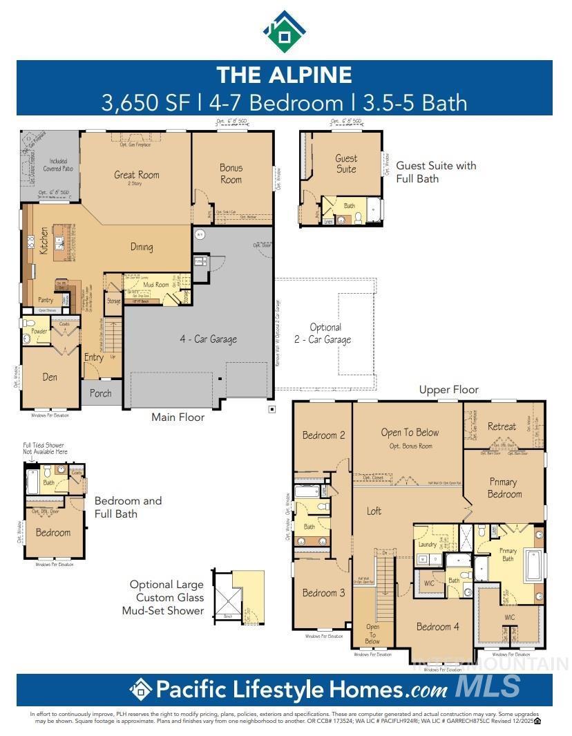 This Alpine TO BE BUILT HOME is one of Pacific Lifestyle Homes most popular floor plans. This lot requires a custom exterior elevation and builder will work with customer at no cost to customer. A beautifully designed 3,650-square-foot, two-story home that perfectly balances elegance and functionality. With 4 bedrooms upstairs, one downstairs and bonus room, this versatile home is crafted to suit families of all sizes and lifestyles. If you need 6 bedrooms, the Bonus room also has a closet and can function as a bedroom as well. The heart of the home lies in its traditional yet open-concept layout, highlighted by a gourmet kitchen that flows seamlessly into the spacious living and dining areas. The covered patio extends the living space outdoors, making it ideal for entertaining or simply enjoying quiet moments surrounded by nature. Nice large 4 car garage. Fully landscaped and fenced, near the community pool and North facing backyard on landscaped common area! Located in the sought after StarPointe community in North Meridian. *Model home located at 6871 N Brock River Place, Meridian- open Fri-Sunday 11-5. Estimated taxes are for land only. *** Photos similar ***
