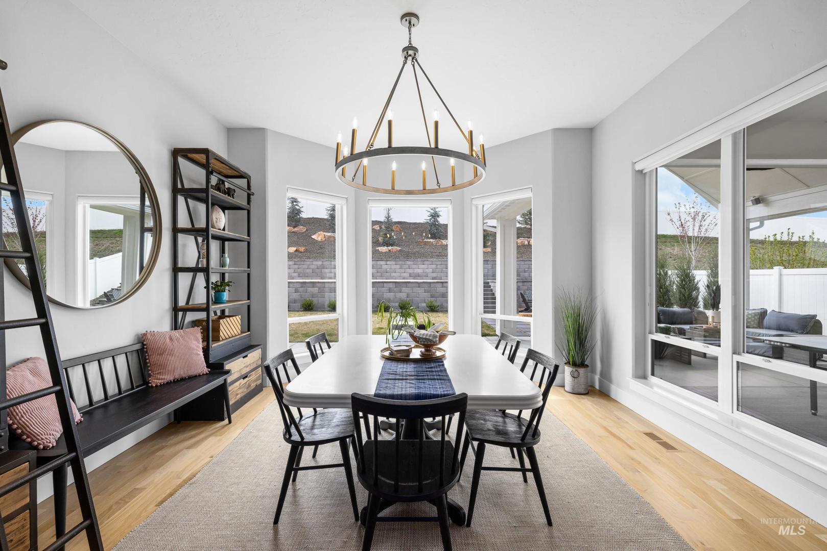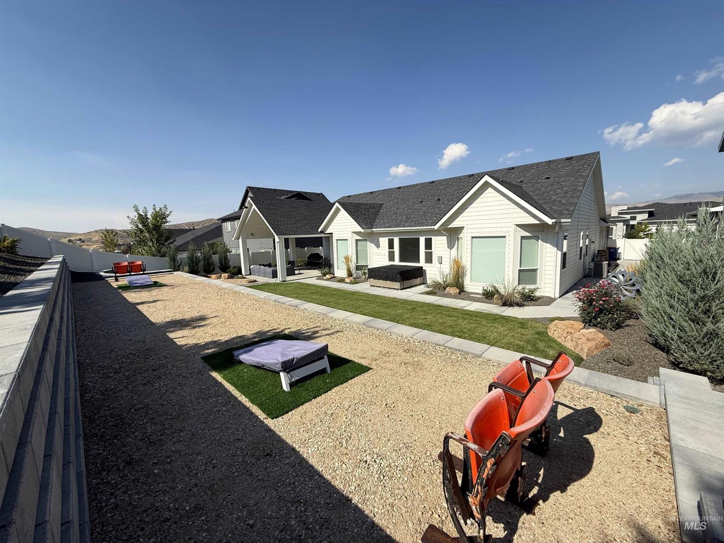 Nestled into the Hills of Dry Creek Ranch, this stunning like new single-level home offers 3,255 square feet of thoughtfully designed living space with 4 bedrooms, 3.5 bathrooms, and a dedicated office. The open-concept layout is anchored by a spacious kitchen with a large island and breakfast bar seating. Hardwood floors run through the main living areas, expansive windows capture tons of natural light and motorized blinds add both convenience and style. The thoughtful floor plan includes a private guest suite, Jack and Jill bath for secondary bedrooms, dedicated office, and an oversized tandem garage with room for up to four vehicles. Step outside to a perfectly manicured and professionally landscaped backyard designed for both relaxation and entertainment. The extended covered patio creates seamless indoor-outdoor living, while the spacious yard offers room for bocce ball, garden beds or whatever Idaho lifestyle you envision. Living in Dry Creek Ranch means more than just owning a home. It’s access to two resort-style pools, a state-of-the-art clubhouse and gym, pickleball courts, an equestrian center, a community farm, on-site coffee shop, and scenic trails weaving through the community. It’s a neighborhood built around connection, wellness, and wide-open space. If you’ve been waiting for a single-level foothill home that blends luxury, function, and lifestyle, this is it.