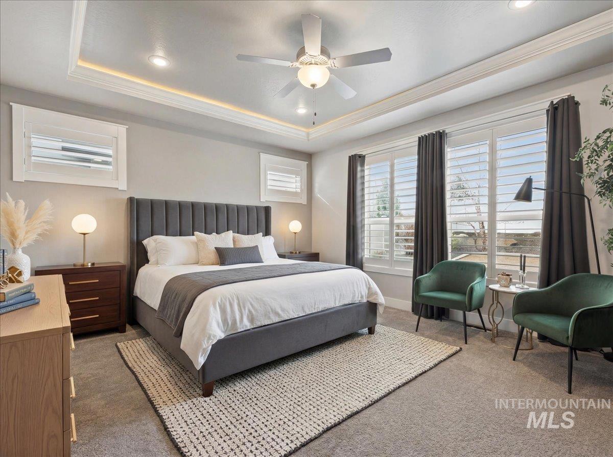 Take advantage of the most affordable home in South Meridian in this price point, under $250/SF! This Todd Campbell built home offers quality craftsmanship & thoughtful design, featuring 5 bedrooms + office + bonus room, generous living spaces & expansive windows that flood the home with natural light. Plantation shutters throughout, quality finishes, crown moulding and high end trim work elevate the interior. Oversized 3 car garage for additional storage and hobby space. Enjoy lush landscaping that blooms from spring to fall, beautiful sunsets, walking paths, community parks, a community pool and Discovery Park just minutes away. This isn`t just a home, it is a lifestyle with so many amenities within minutes. With no backyard neighbors, views of both the Owyhees and the Boise Ridge Range out the front and back of the upper level, this home is nearly perfect! Come and see it today, and don`t miss out!