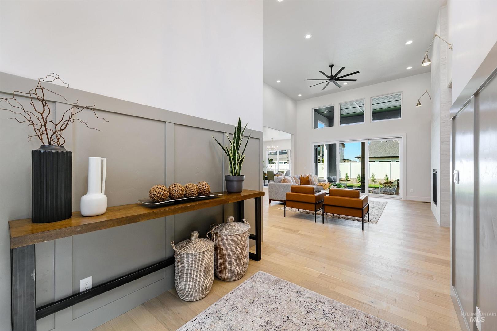 This Lincoln home with an RV garage is located in the coveted Dry Creek Ranch community in the Eagle foothills! Enter through the internal courtyard before stepping into a vaulted great room. Natural light floods through large windows lining the back wall, while a platform fireplace adds a striking focal point. A multi-panel glass slider off the dining area opens onto the covered patio, revealing foothill views. The chef’s kitchen boasts a large island, ample cabinetry, and a walk-in pantry. The primary suite features private patio access, a massive walk-in closet, and a fully tiled shower with dual shower heads. Additional highlights include a generous laundry room and a versatile flex space. Now open, the Dry Creek Ranch Community Clubhouse spans five manicured acres, featuring courts, a pool, and an 8,840 sqft. clubhouse with state-of-the-art amenities. Home is ready now.