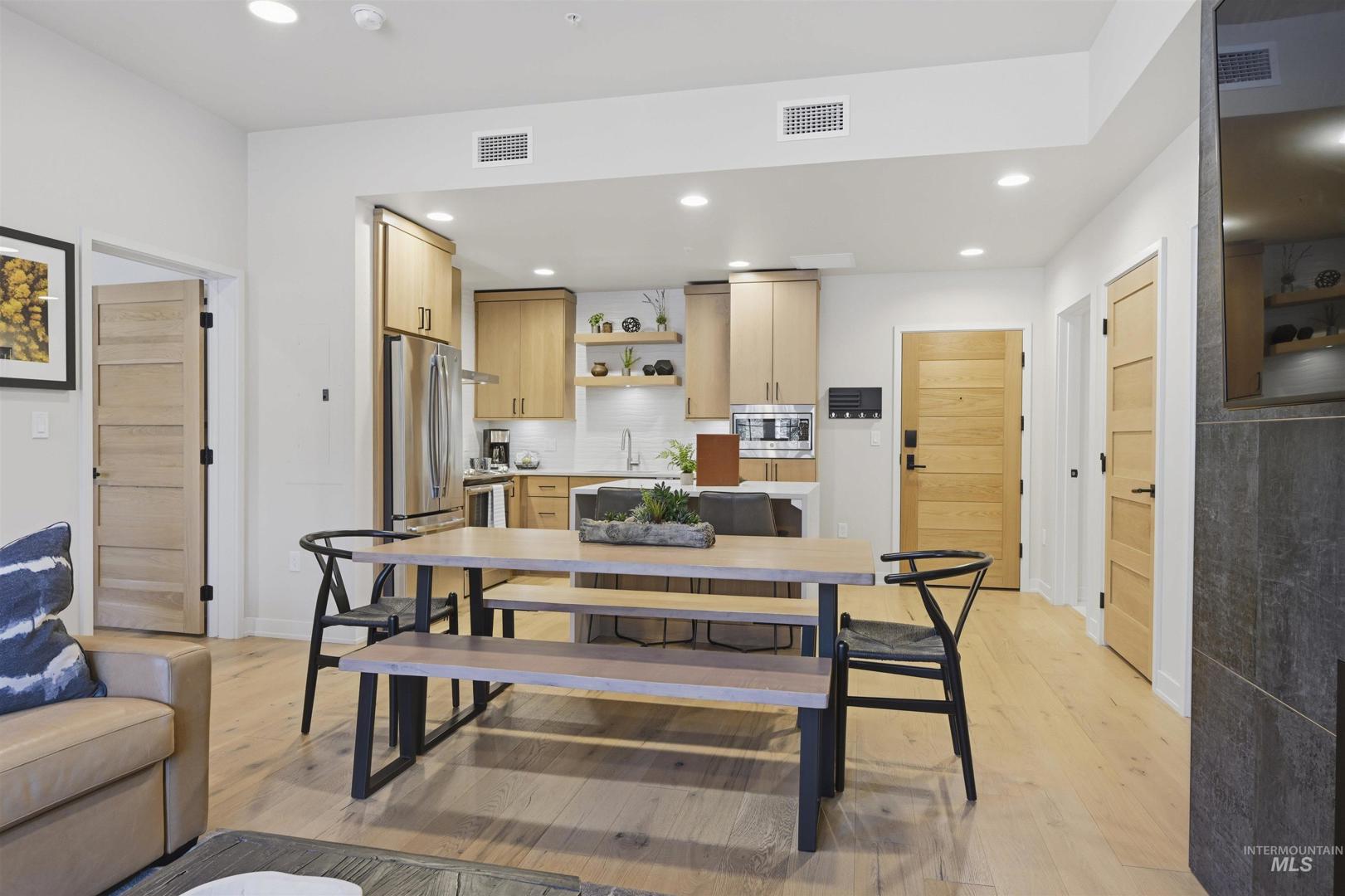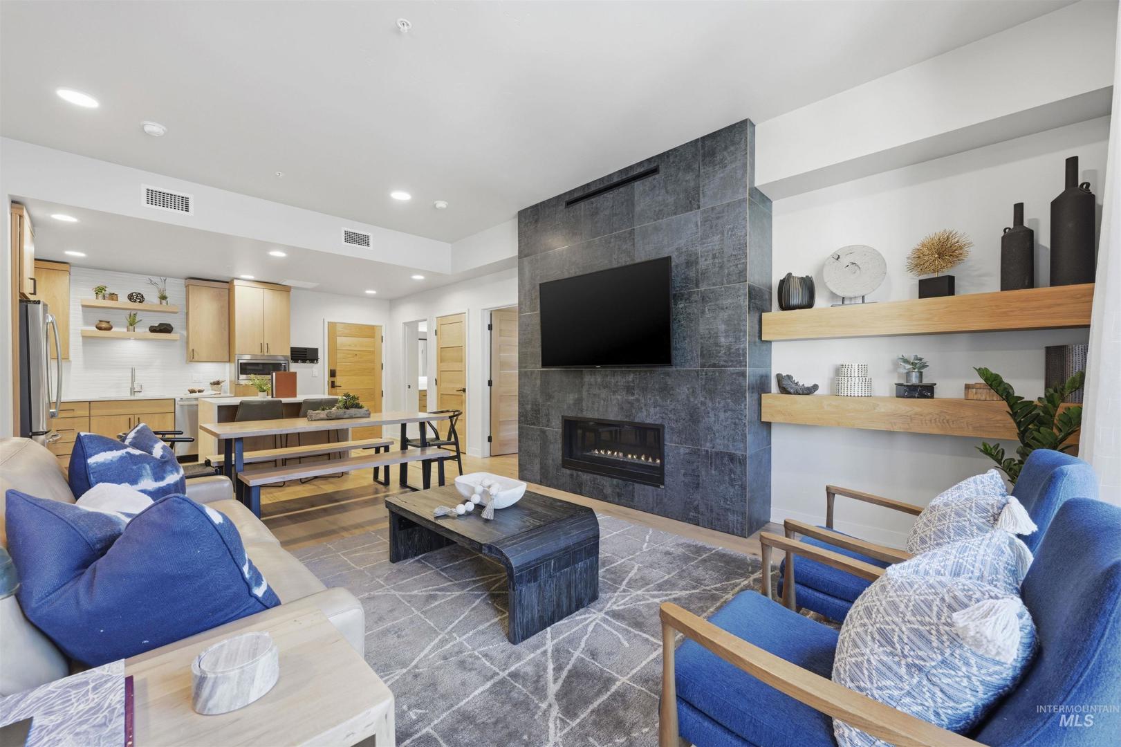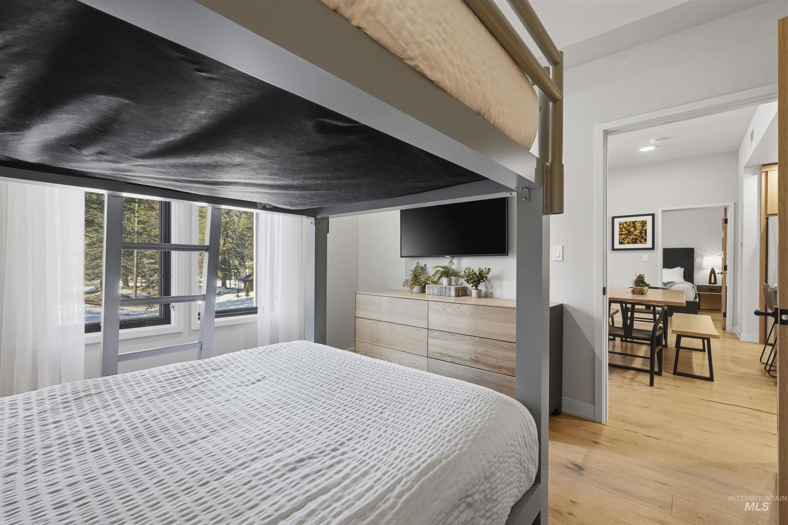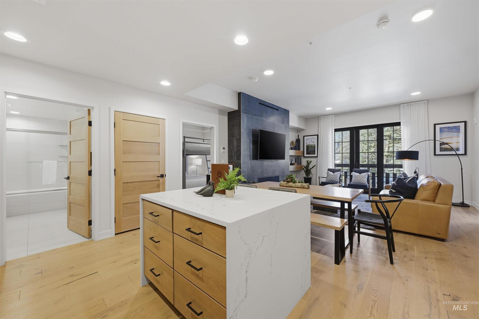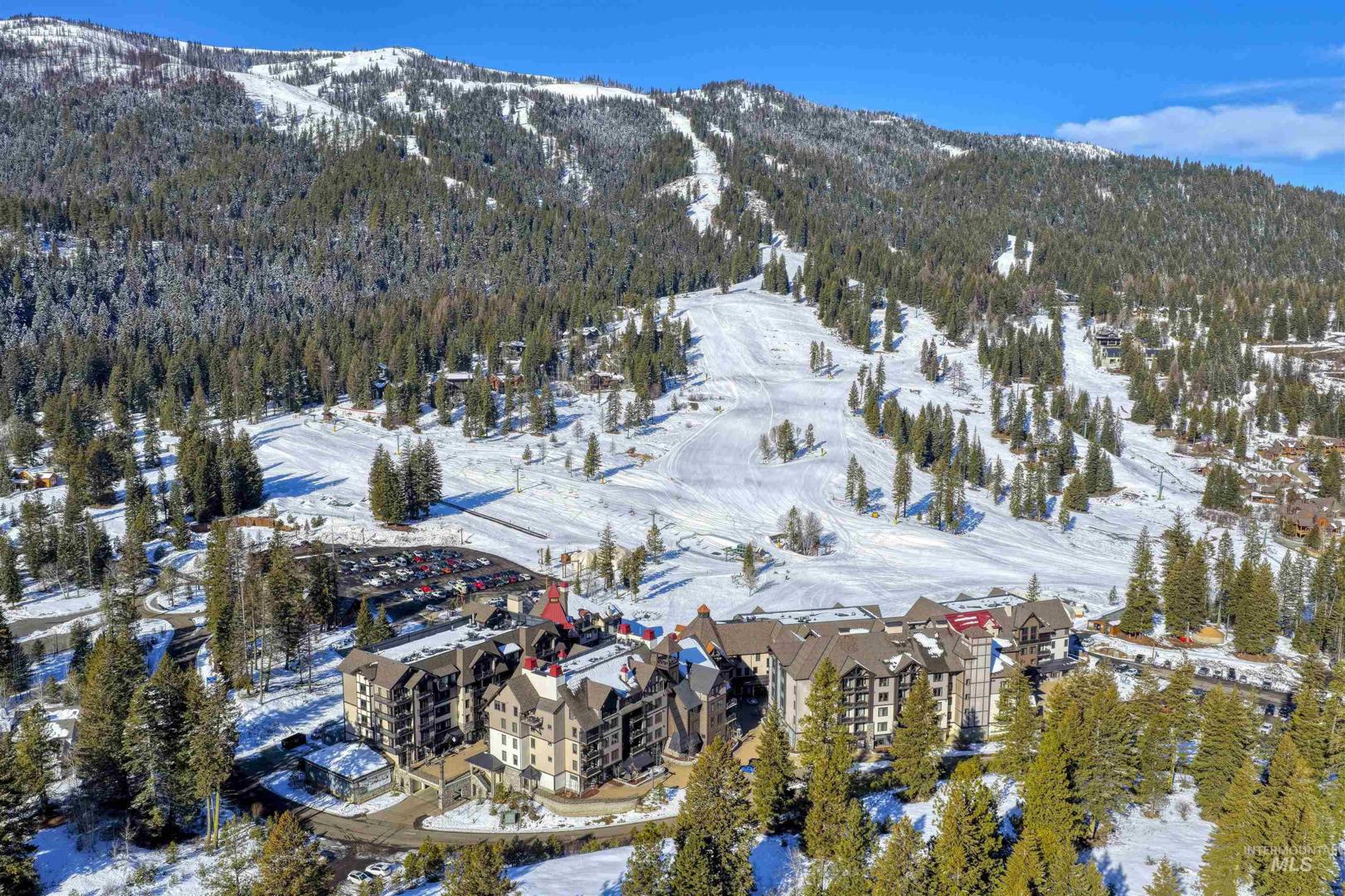 Experience mountain living at its finest in this amazing condo nestled within the stunning Tamarack Village Resort in Idaho’s breathtaking mountain-lake setting. Enjoy picturesque views of the ski hill right from your windows and balcony, placing year-round adventure just outside your door. This turnkey property is perfect for personal enjoyment or as an income-producing rental. The primary suite offers balcony access, a spacious walk-in shower, and a generous walk-in closet, creating a relaxing retreat after a day on the slopes or trails. The second bedroom is thoughtfully designed with two queen-sized bunk beds. The great room provides additional accommodations with a cozy pull-out sofa, making it easy to host family and friends, sleeping up to 8. Classy finishes elevate the space, including engineered hardwood floors, a sleek fireplace for cool mountain evenings, and a stunning kitchen island featuring a waterfall quartz countertop. Every detail blends comfort and style for the ideal resort getaway. Tamarack Resort offers true four-season recreation, including skiing, lake access, golf course, mountain biking and hiking trails, pickleball, an outdoor pool and hot tub, and more. Offered fully furnished and eligible for Tamarack’s rental management program, this condo is ready to enjoy from day one. Come experience this beautiful side of Idaho and all that Tamarack has to offer.