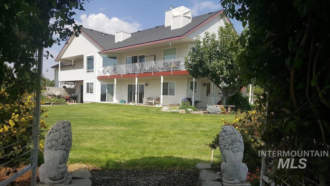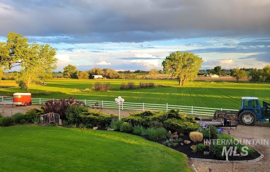 Pristine 19.79 acres w/gorgeous 3,564 SF custom home, hay barn, milk barn, & more! Single level w/daylight basement, 4 beds, 3.5 baths, 2 gas FPs, 2-car garage on main level AND 1-car garage on lower level that is a SHOP setup w/220 power, heated floors & workbenches. Upstairs enjoys vaulted great room w/expansive Milgard windows capturing open agricultural & Owyhee Mountain views. Hickory kitchen cabinets, Sub-Zero refrigerator, double ovens, gas range, prep sink, & large walk-in pantry. Fantastic owner’s suite with clawfoot tub, walk-in shower, dual vanities, walk-in closet plus loads of windows & private door. Lower level bonus room w/kitchenette/eating area, 2 bdrms plus jack-n-jill bath. Large, corner office w/amazing views, exterior entrance plus 1/2 bath. Land is fenced for livestock w/corrals, pens, hay barn w/lean-to, 2-level milk barn w/power, 30 amp RV hookup & shed. Approx 15 acres currently in hay production. 75 acre-feet/year water rights through Black Canyon Water & gated gravity-fed irrig syst