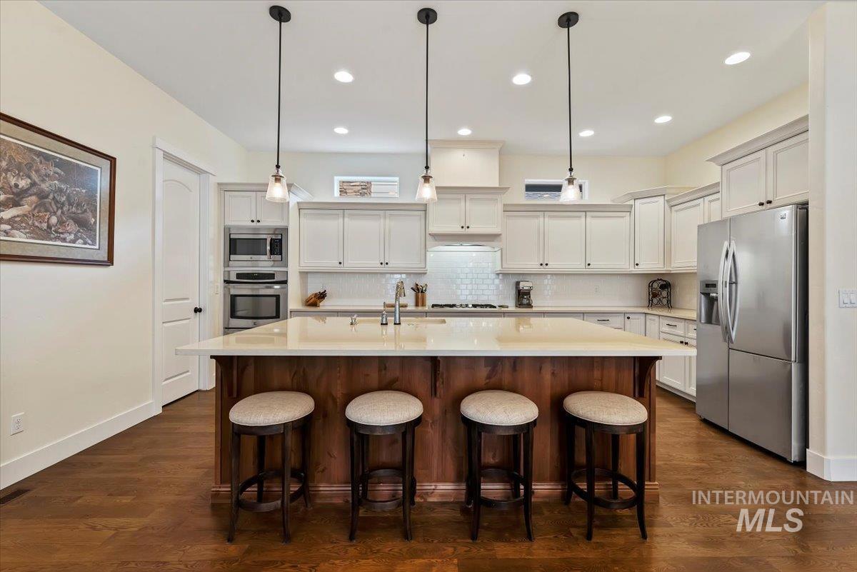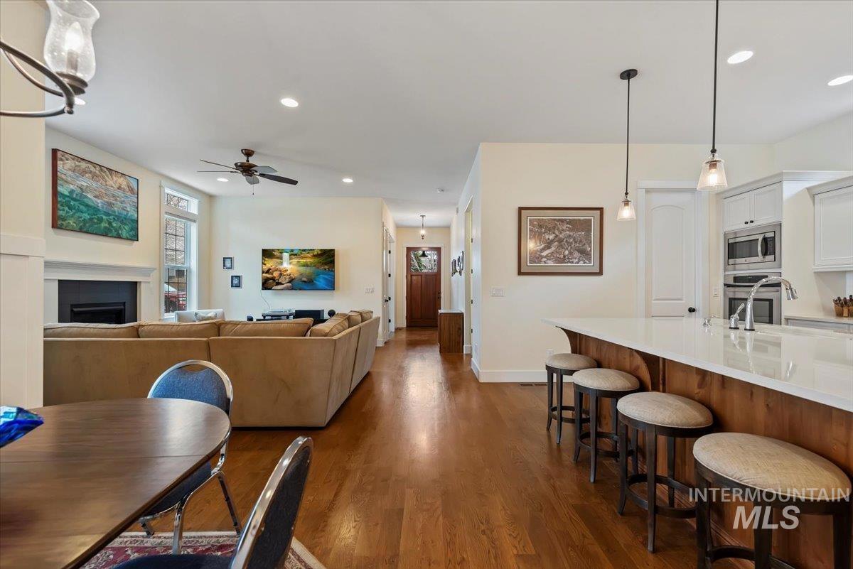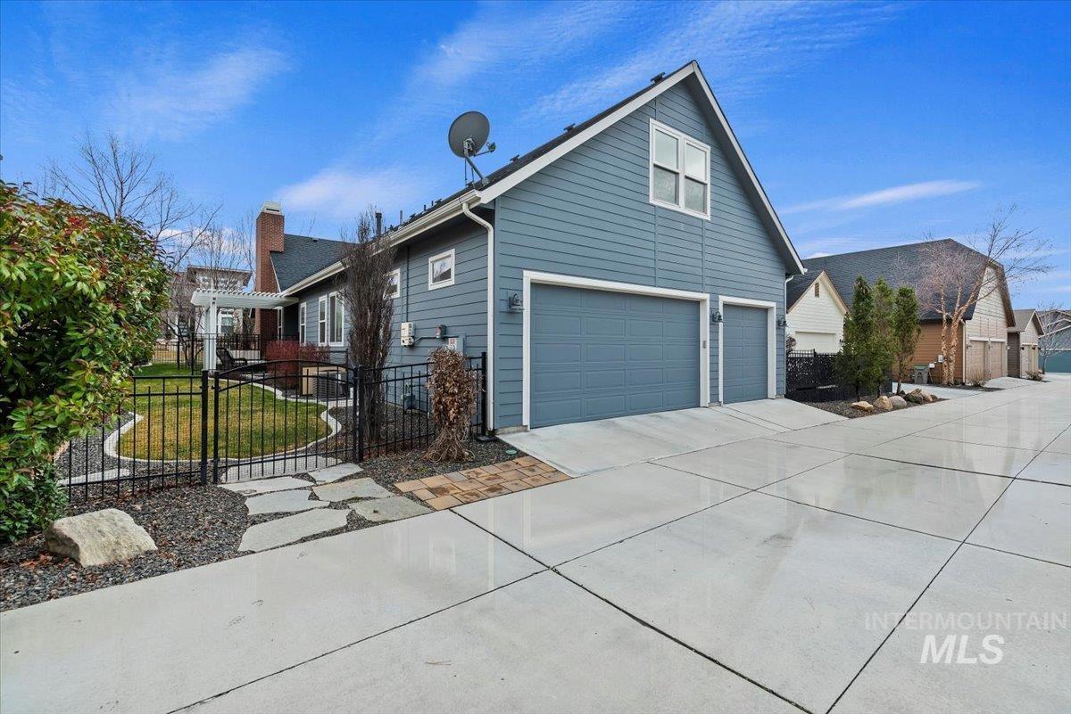 Enjoy a low-maintenance lifestyle in highly desirable Harris Ranch in East Boise—just minutes from dining, shopping, the Boise River, Greenbelt, Ridge to Rivers trail system, and the community pool. This thoughtfully designed home offers 3 or 2 bedrooms and a bonus room plus a dedicated office with built-in bookshelves, perfect for working from home. Soaring 10-foot ceilings and transom windows fill the home with natural light, while the spacious great room features a cozy gas fireplace and seamless flow for entertaining. The gourmet kitchen boasts a large island, double ovens, gas cooktop, walk-in pantry, and space for a beverage cooler. The main-level primary suite provides comfort and privacy, and outdoor living shines with a pergola-covered patio and fully fenced yard complete with garden boxes. Located in a Firewise community with no CID taxes and pressurized irrigation to sprinklers. Additional highlights include solar panels, an electric car charger, epoxy-coated 3-bay garage with workbench, slat wall and cabinets, furnace less than 4 years old, and water heater less than 2.5 years old. Lock-and-go convenience in one of East Boise’s most sought-after neighborhoods!