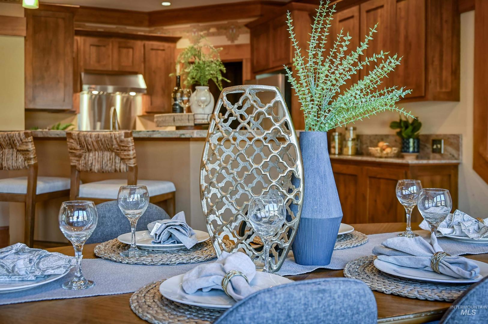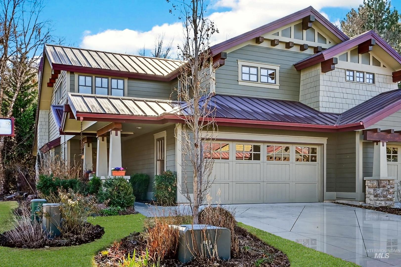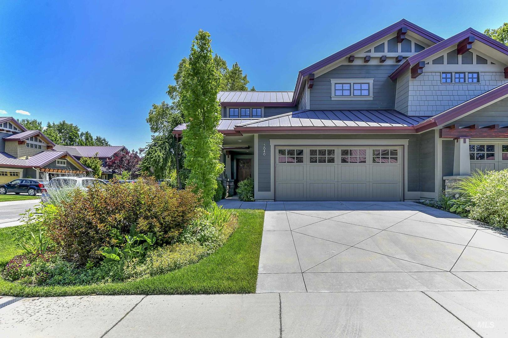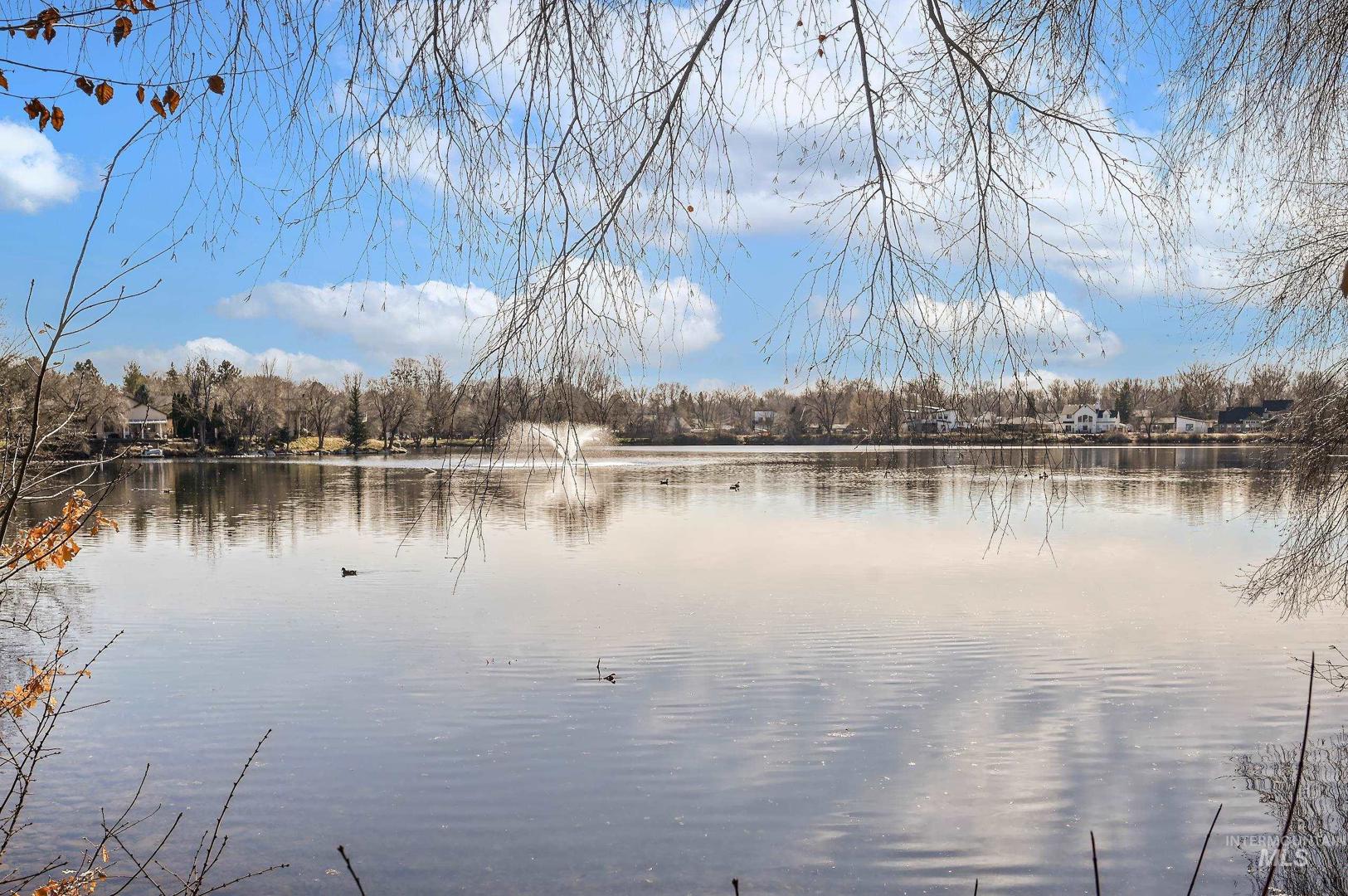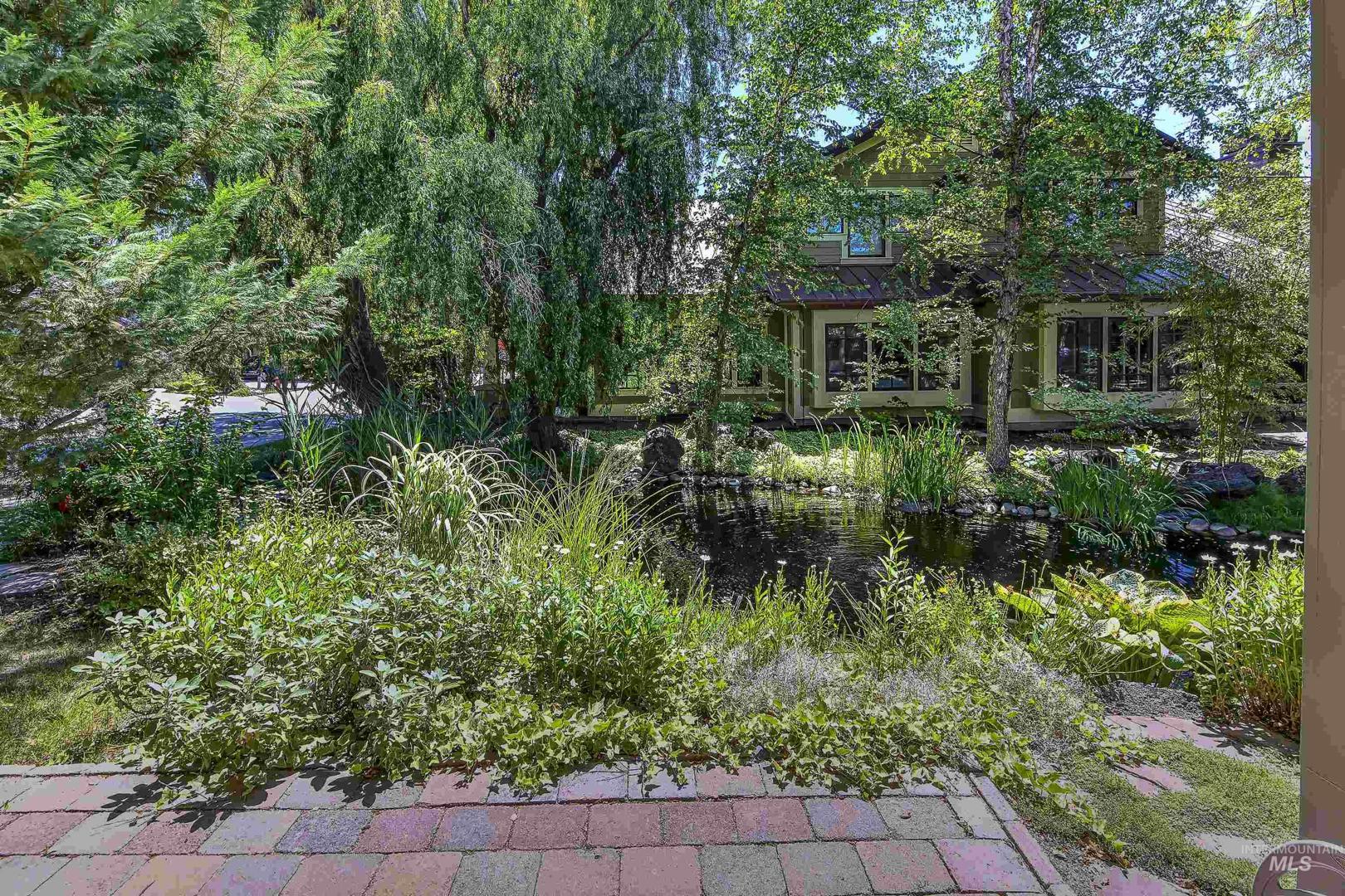 Come home to this coveted Tivoli Gardens waterfront home. A beautiful 3 bedroom, 2.5 bath 2227 sq ft home blends timeless beauty and modern amenities all surrounded by meticulously maintained landscaping. Quality and attention to detail are evident throughout the home. The thoughtfully designed kitchen features a Viking professional-grade range, slab granite counters and breakfast bar all seamlessly flow into the main living areas. The great room is anchored by a stunning sandstone gas fireplace, highlighted by vaulted wood ceilings, sky lights, exposed beams, rich wood paneling, custom trim work, and dramatic windows. Expansive beautiful Brazilian hardwood floors offer warm with detailed inlay. Additional finishes include hand-cast bronze hardware and solid-core doors. The main-level primary offers a wall of windows overlooking the pond, solid surface dual vanity, two walk-in closets and walk-in tile shower. Upstairs, you’ll find two bedrooms, a full bath and bonus room with space for fun and entertainment. Step outside to a waterfront oasis designed for year-round enjoyment. Dine under the stars and enjoy the gentle soothing sounds of the waterfalls amidst mature landscaping. All of this plus a large two-car garage, separate laundry room with storage. Located steps from the Boise River & Greenbelt, Silver Lake. Just minutes from Downtown, restaurants and shopping. BTVA