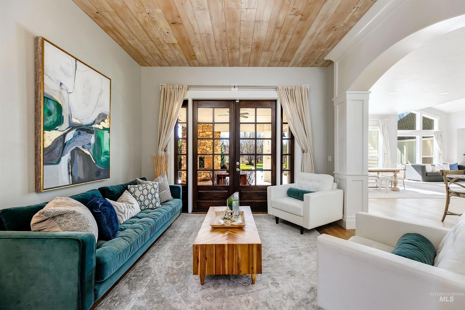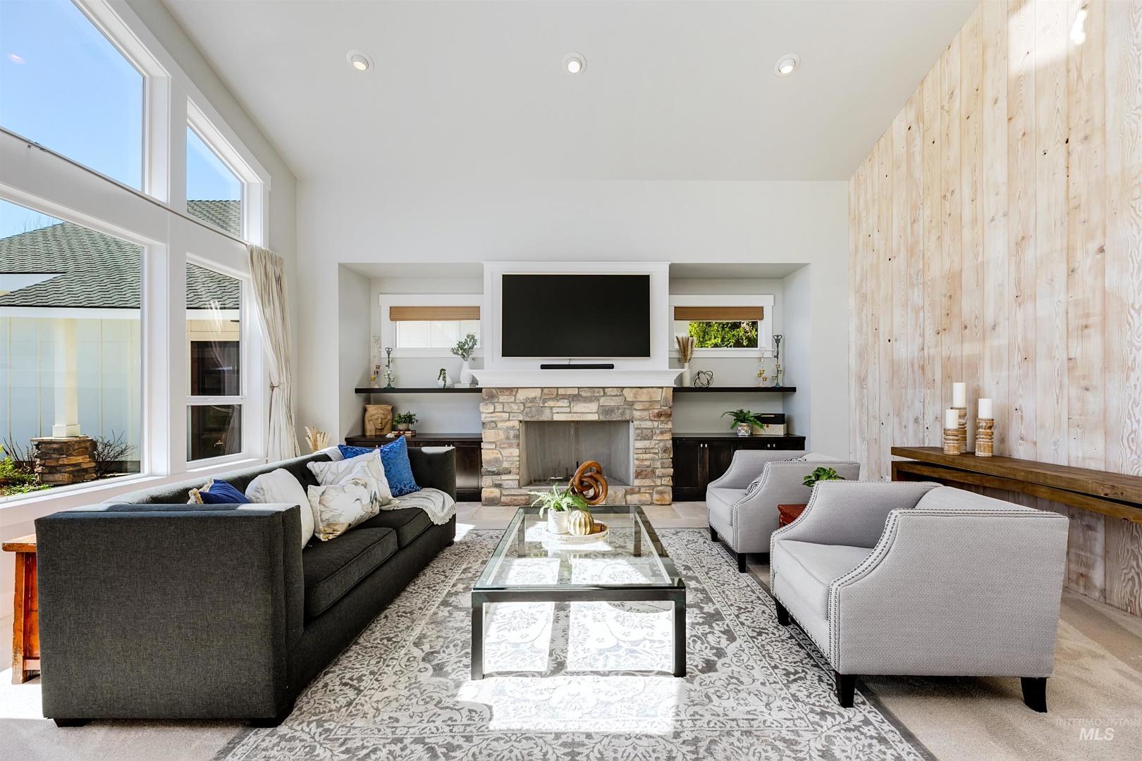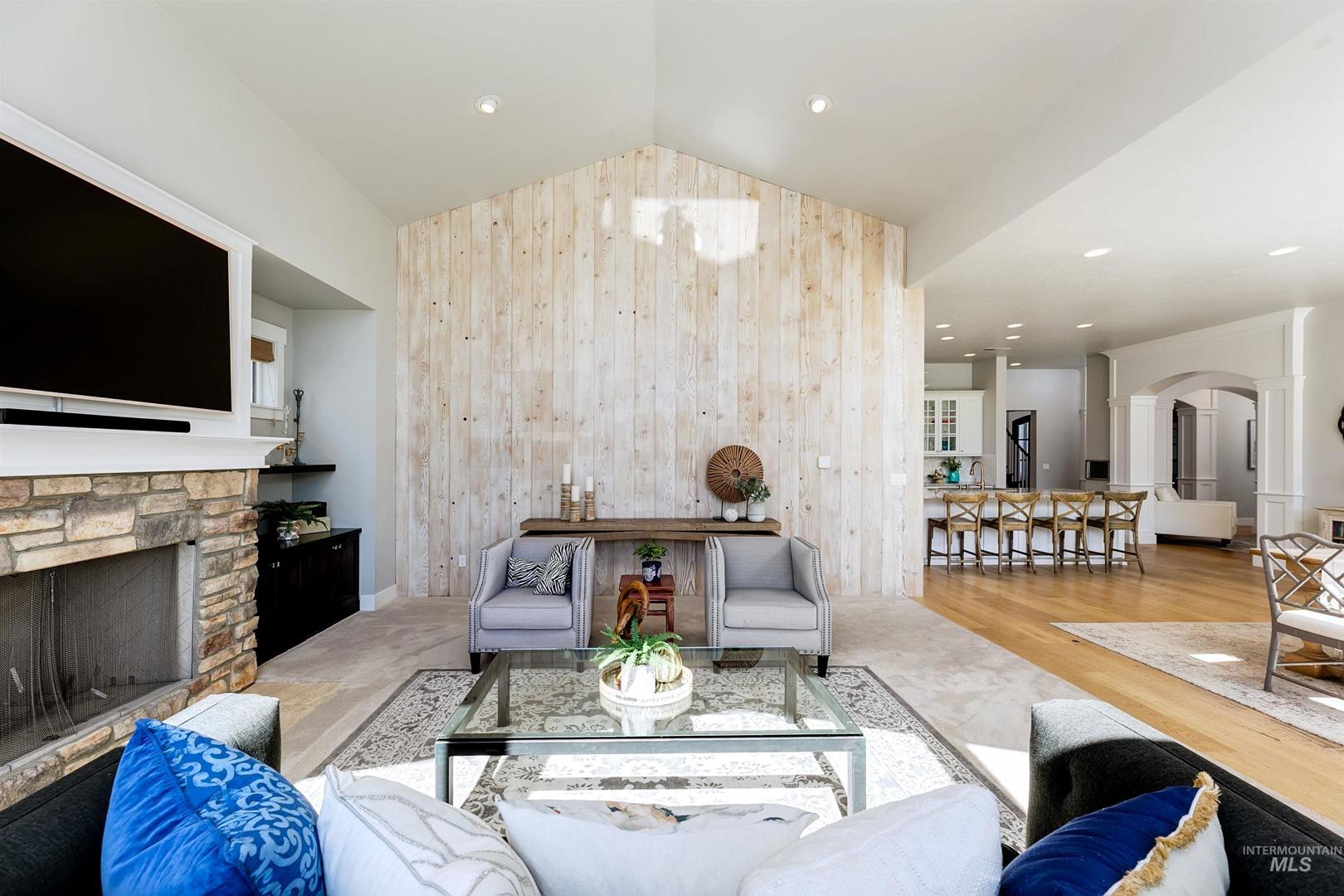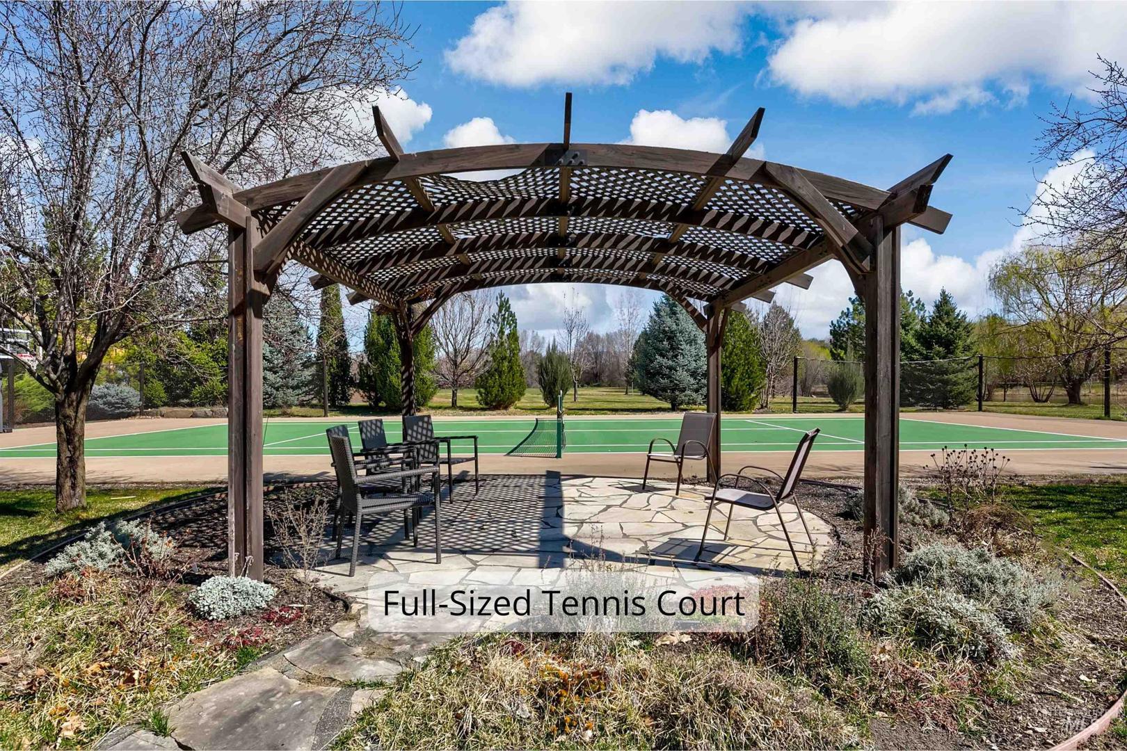 Set along a tranquil waterfront with expansive green space and a private tennis court, this meticulous 2.3-acre Eagle residence offers a rare blend of refined design, resort-style living, and everyday comfort. Located in the coveted Vizcaya community with Eagle’s top-rated schools, the property delivers on exclusivity and proximity. Mature landscaping and a sweeping one-acre backyard lawn, the grounds feature a fire pit gathering area, an in-ground trampoline, and a circular driveway. Inside the home, there is a true five-bedroom layout with a bonus room, a dedicated office, and multiple spaces, including both living and family rooms. Large windows throughout create a bright, open atmosphere, filling the interiors with natural light. A south-facing kitchen with expansive granite surfaces, custom cabinetry, and an island ready for everyday living and effortless entertaining. The primary suite provides a peaceful retreat with upscale finishes, a spacious layout, and serene views. A detached structure offers a private in-law suite/ADU with its own entrance, plus space for up to five vehicles or for use as a shop, rec room, or hobby area. Designed for both relaxation and recreation, the outdoor living spaces include a stunning pool, expansive patio with a rock fireplace, and direct access to the large pond. This rare Eagle property combines space, versatility, and elevated living.