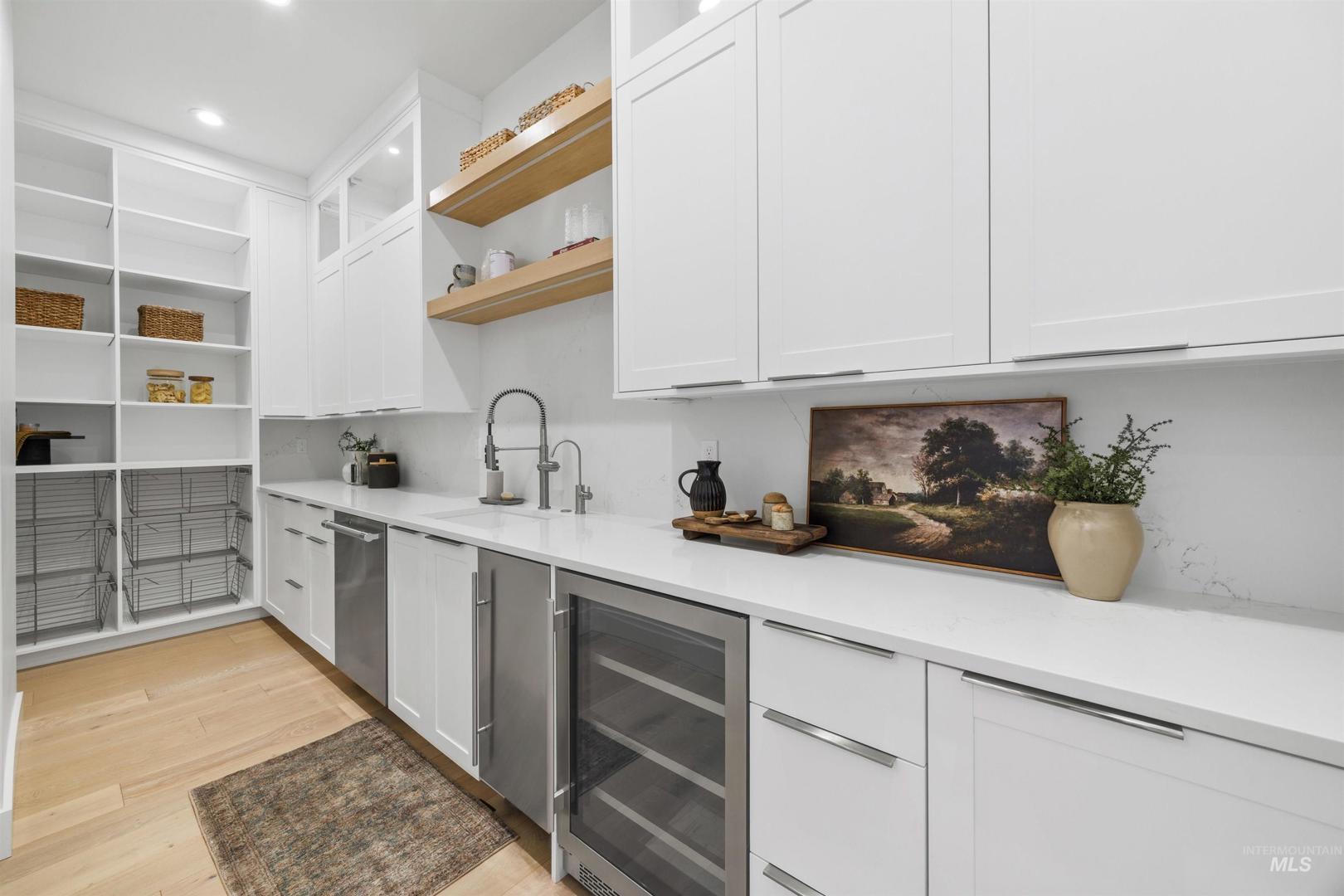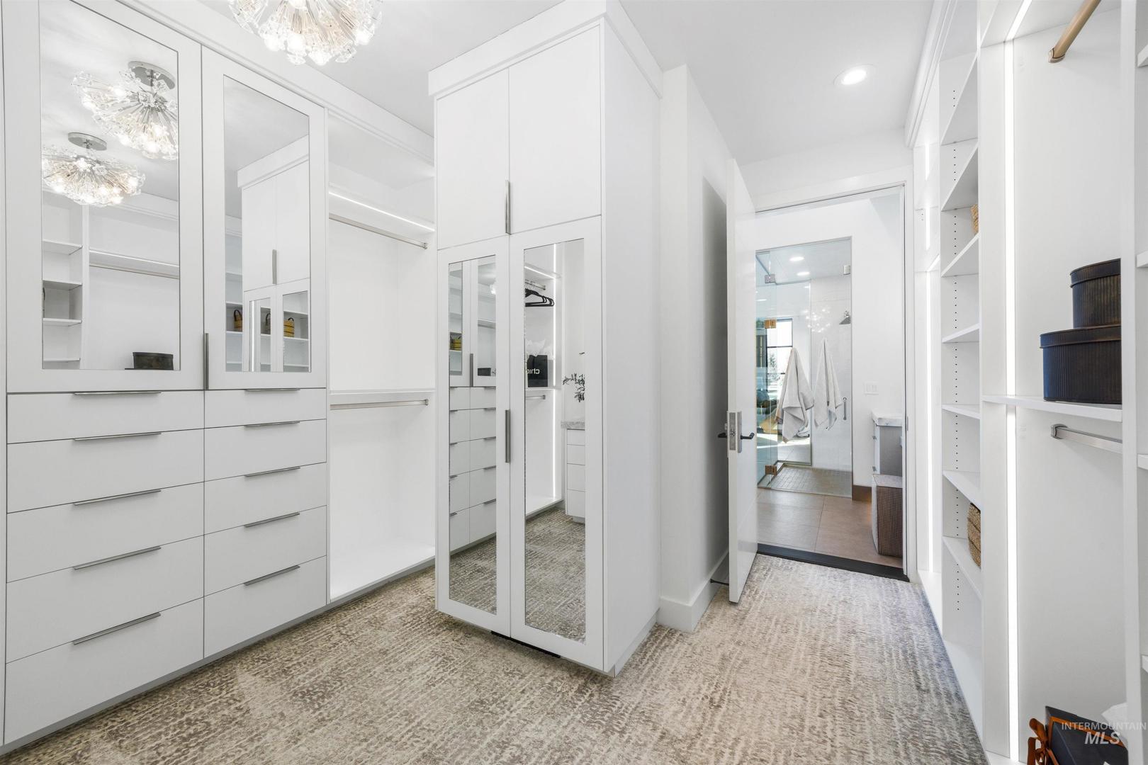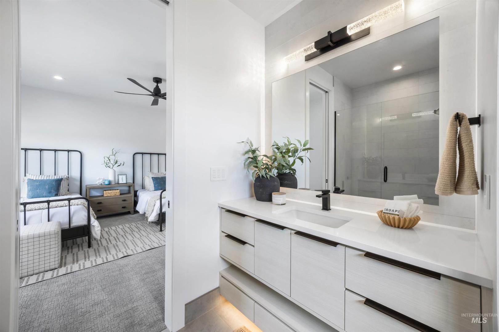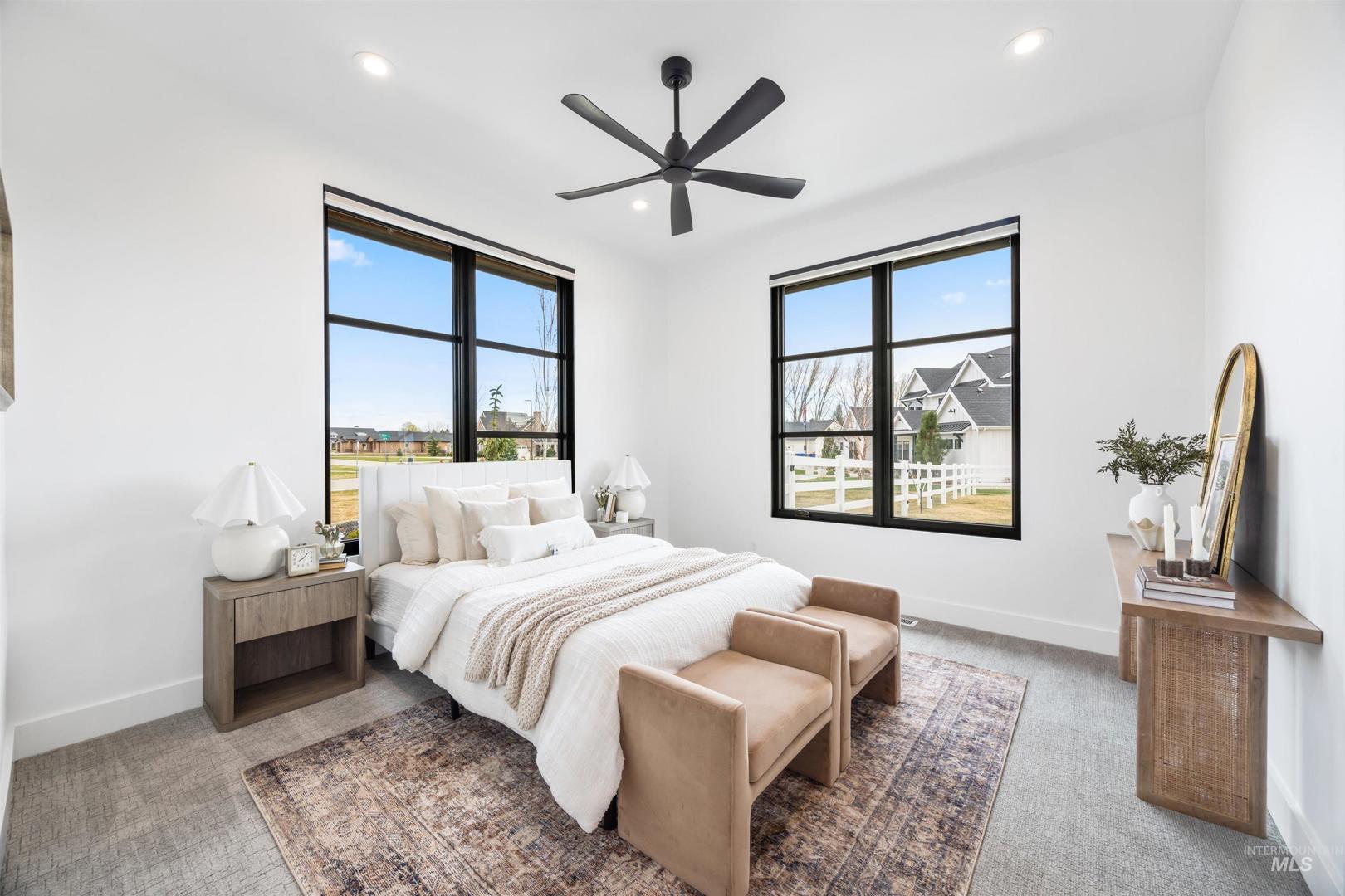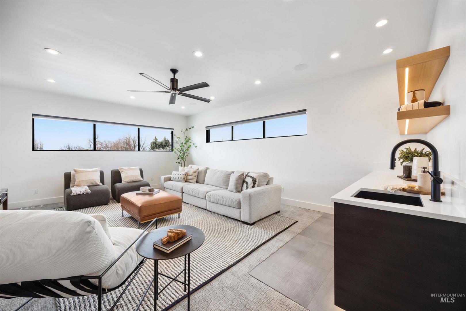 A rare opportunity to own one of Eagle’s most impressive newly built estates. Set on 1.84 private acres, this extraordinary modern home blends clean architectural design with expansive living spaces and resort-style amenities. Dramatic walls of glass and expansive sliding doors flood the home with natural light and frame views of the resort-style grounds, designed to surround the pool for seamless indoor-outdoor living. The chef’s kitchen features quartz countertops, Thermador appliances, custom cabinetry, and a designer butler’s pantry. Thoughtfully designed with a private executive office, spacious game room, and lower-level recreation or bonus space ideal for a gym, media room, or additional living area. The primary suite offers a spa-like retreat with marble countertops, heated floors, and a statement soaking tub. Each bedroom includes its own en suite bath. Resort-style outdoor living includes a pool, spa, pickleball court, in-ground trampoline, and pool house with kitchen, entertaining area, bath, and changing room. A 1,478 sq ft covered outdoor living area extends the home with an outdoor kitchen, heaters, built-in speakers, and automatic screens. Impressive 3,810 sq ft heated garage with double RV bay, custom cabinetry, and car lift. 12,997 sq ft under roof in one of Eagle’s most sought-after settings, offering an exceptional blend of design, privacy, and lifestyle.