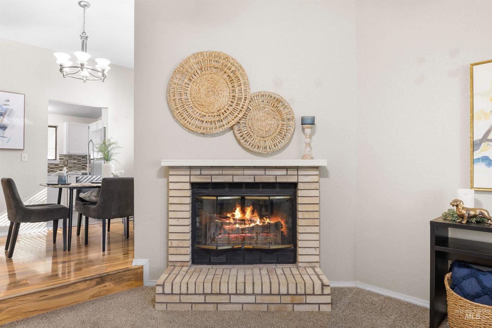 Discover comfortable single-level living in this charming 3-bedroom, 2-bathroom home nestled in an established Meridian neighborhood. Warm and welcoming, the spacious living area features a classic wood-burning fireplace—perfect for cozy Idaho evenings. The updated kitchen offers modern convenience with plenty of style, while the covered back patio extends your living space outdoors for year-round enjoyment. The backyard is like a little oasis. You can hear water, ducks, and geese. The grapevine, lilac, wisteria, and trumpet vines are beautiful in Spring and Summer. With fresh exterior paint, a 2-car garage, an additional parking space, and a layout designed for easy living, this home blends comfort and practicality. Centrally located in the heart of Meridian, you’ll enjoy quick access to parks, shopping, dining, and recreation. The home comes with a transferrable warranty and irrigation water is available which provides excellent cost savings. Don`t miss the opportunity to see this great home today!