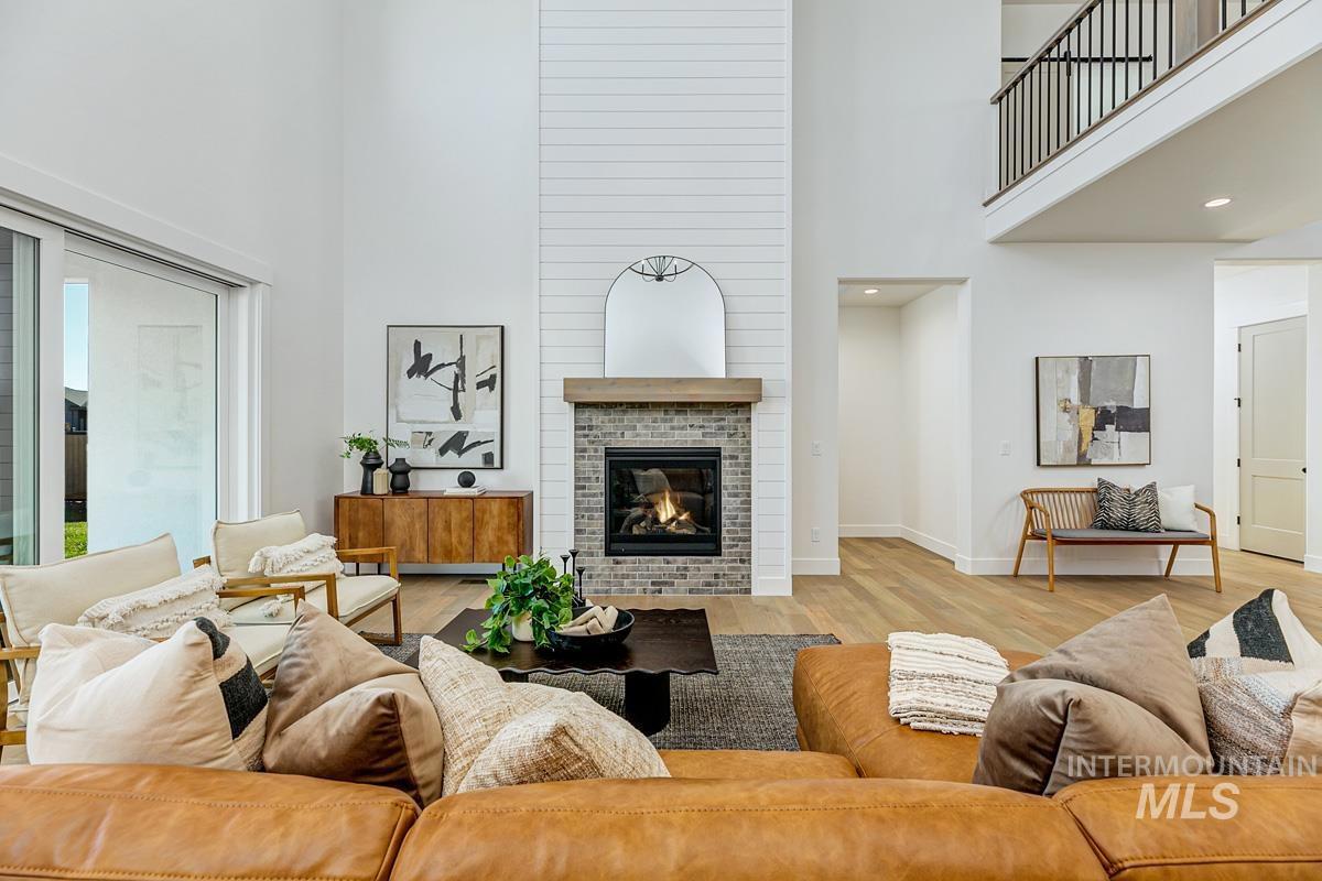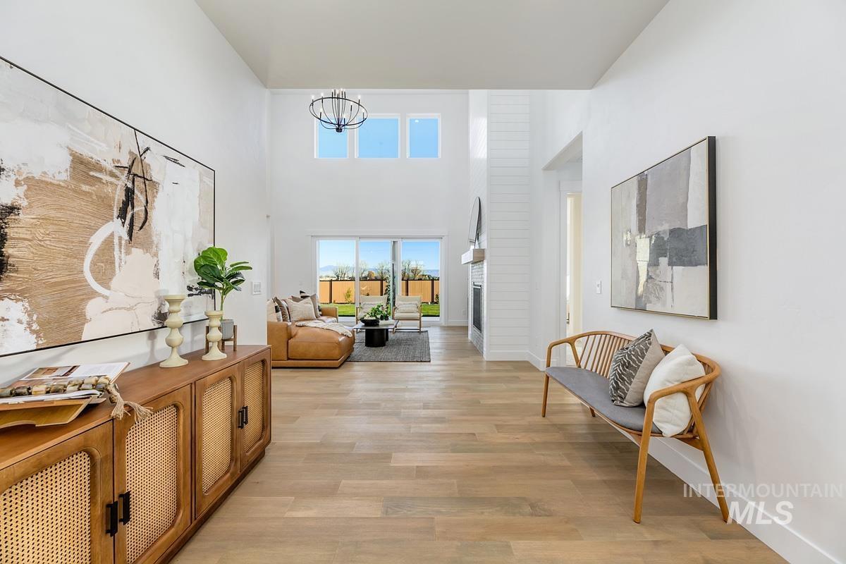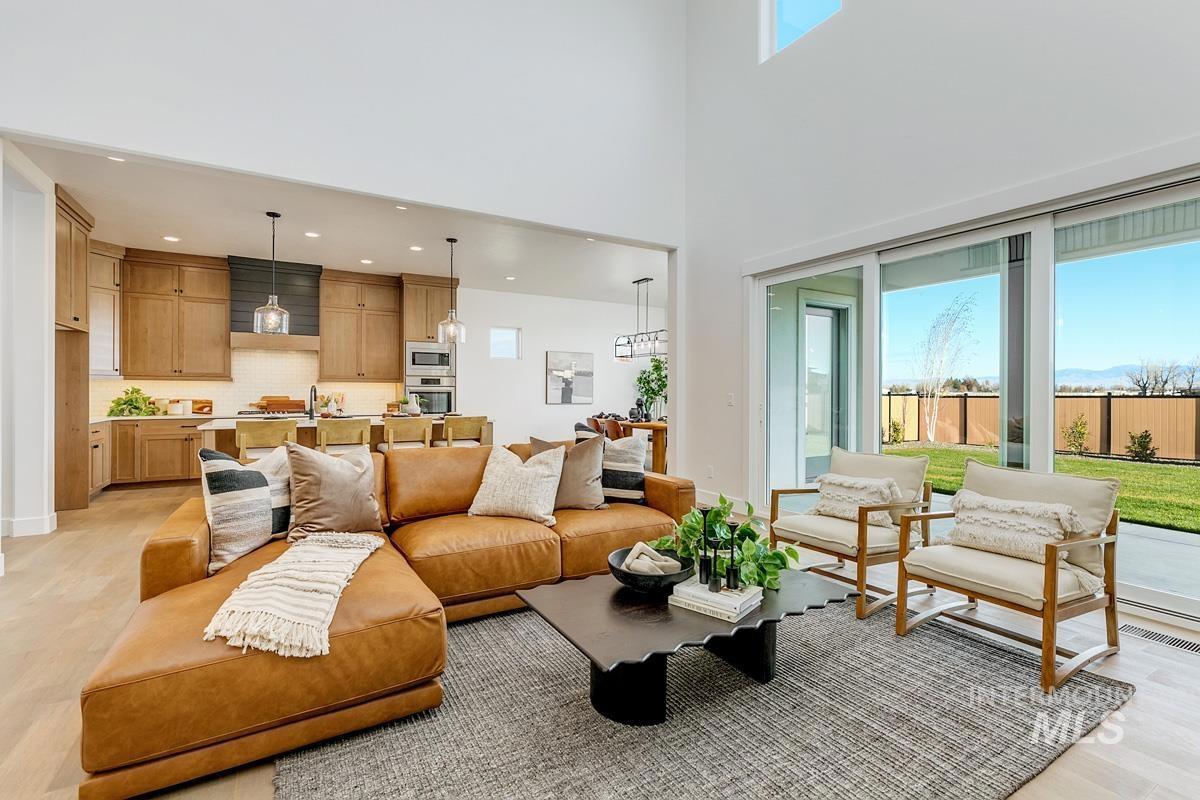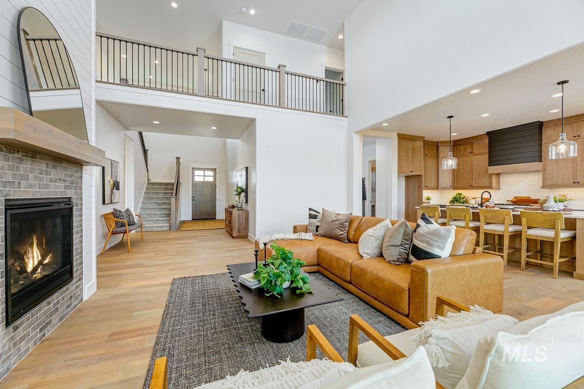 Come see this gorgeous two-story home near the neighborhood’s best amenities, including exclusive Boise River access, lakes, beaches, walking paths, and the community pool. Step inside the Tablerock, where towering ceilings and expansive windows bathe the home in natural light. The chef’s kitchen features a large island, walk-in pantry, and direct connection to an expanded dining room lined with tall windows. Nearby, the great room impresses with a platform fireplace and high ceilings that create a dramatic open-to-below effect. The main level also includes a guest suite, an office, and a luxurious primary with dual vanities, a tiled shower, a free-standing tub, and a massive walk-in closet. Upstairs, two additional bedrooms and a spacious flex room complete the home. Now open, the River Park Estates Clubhouse offers endless opportunities for activity and relaxation. Enjoy pickleball, swimming, lounge areas, and more, all presented in a beautiful modern aesthetic. Home is ready now.