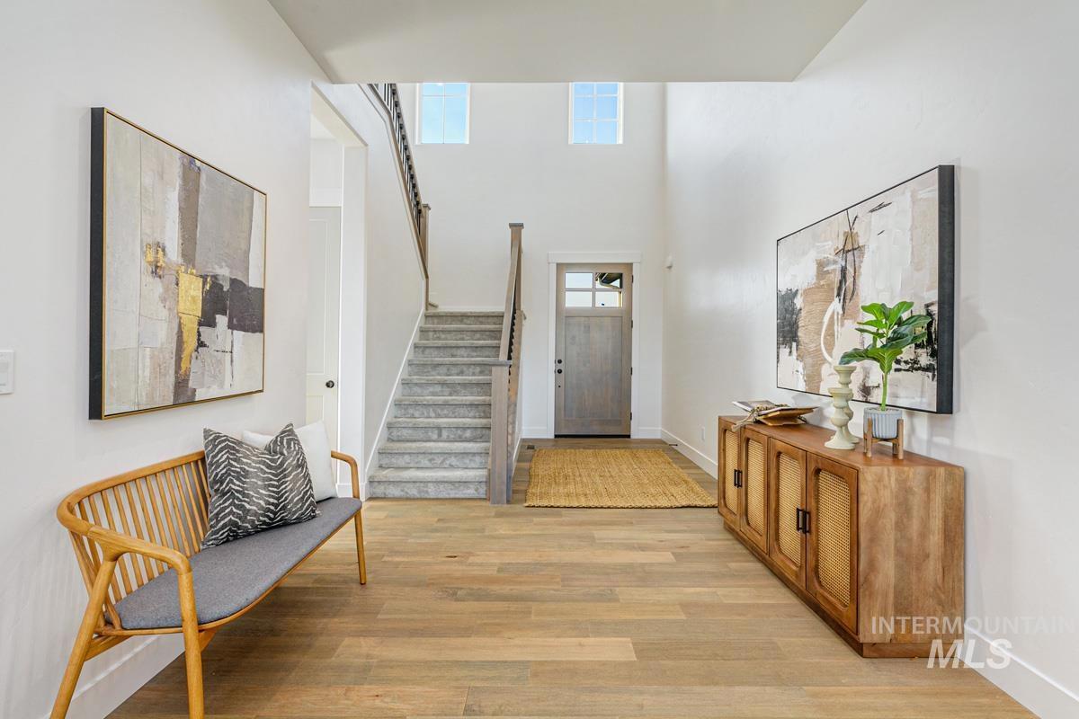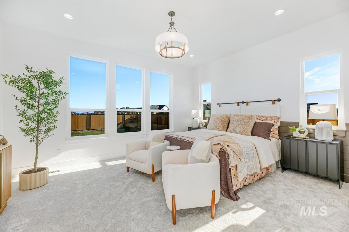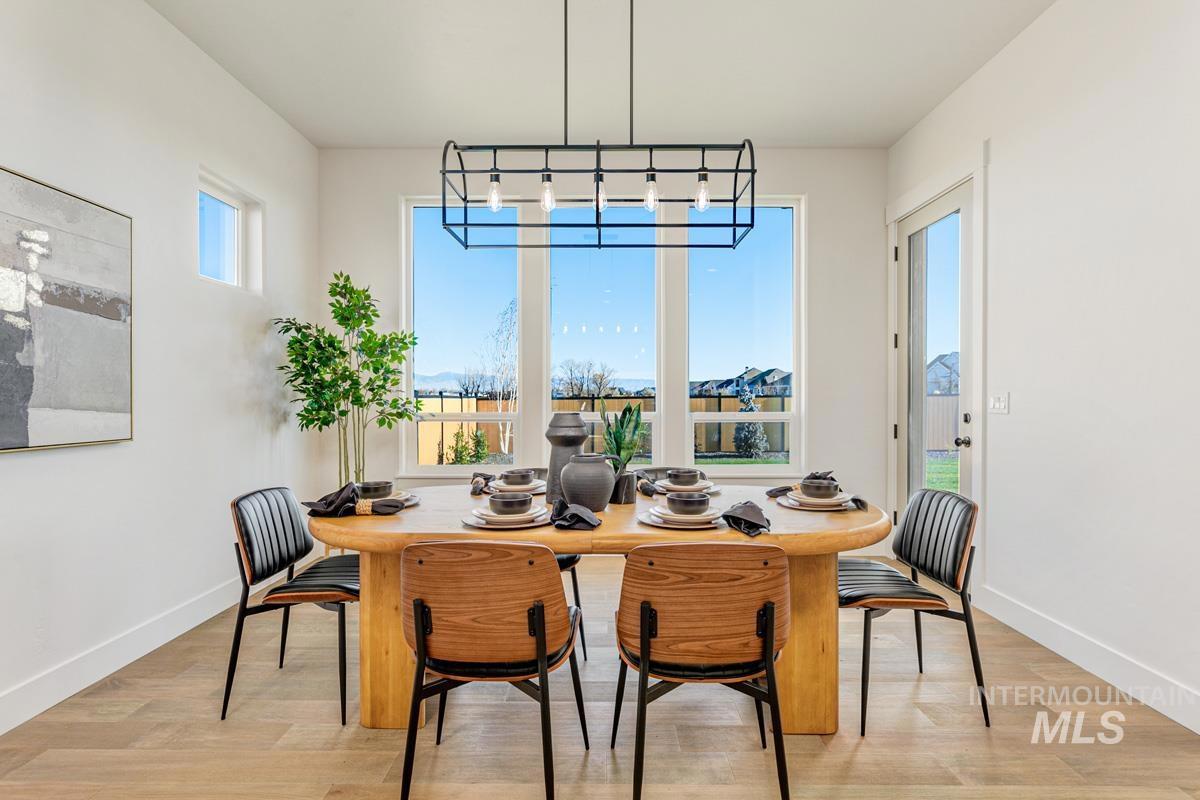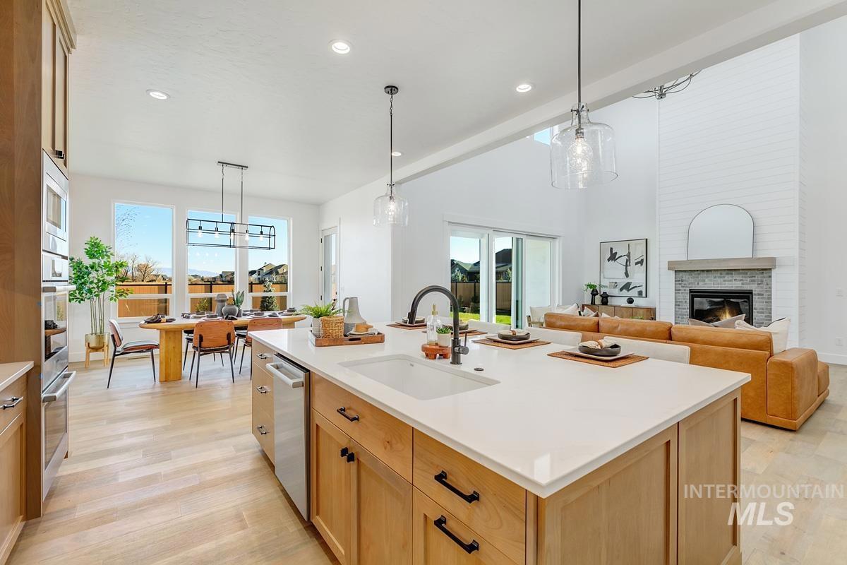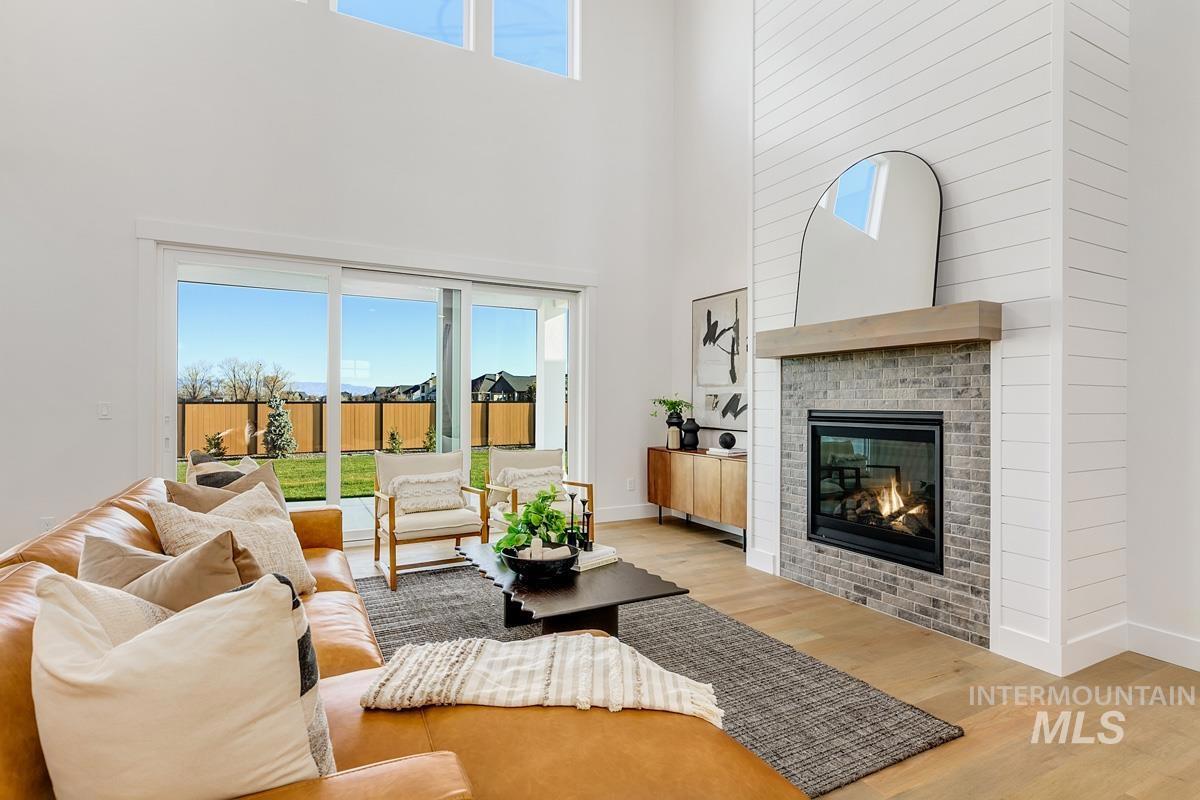 Come see this gorgeous two-story home near the neighborhood’s best amenities, including exclusive Boise River access, lakes, beaches, walking paths, and the community pool. Step inside the Tablerock, where towering ceilings and expansive windows bathe the home in natural light. The chef’s kitchen features a large island, walk-in pantry, and direct connection to an expanded dining room lined with tall windows. Nearby, the great room impresses with a platform fireplace and high ceilings that create a dramatic open-to-below effect. The main level also includes a guest suite, an office, and a luxurious primary with dual vanities, a tiled shower, a free-standing tub, and a massive walk-in closet. Upstairs, two additional bedrooms and a spacious flex room complete the home. Now open, the River Park Estates Clubhouse offers endless opportunities for activity and relaxation. Enjoy pickleball, swimming, lounge areas, and more, all presented in a beautiful modern aesthetic. Home is ready now.