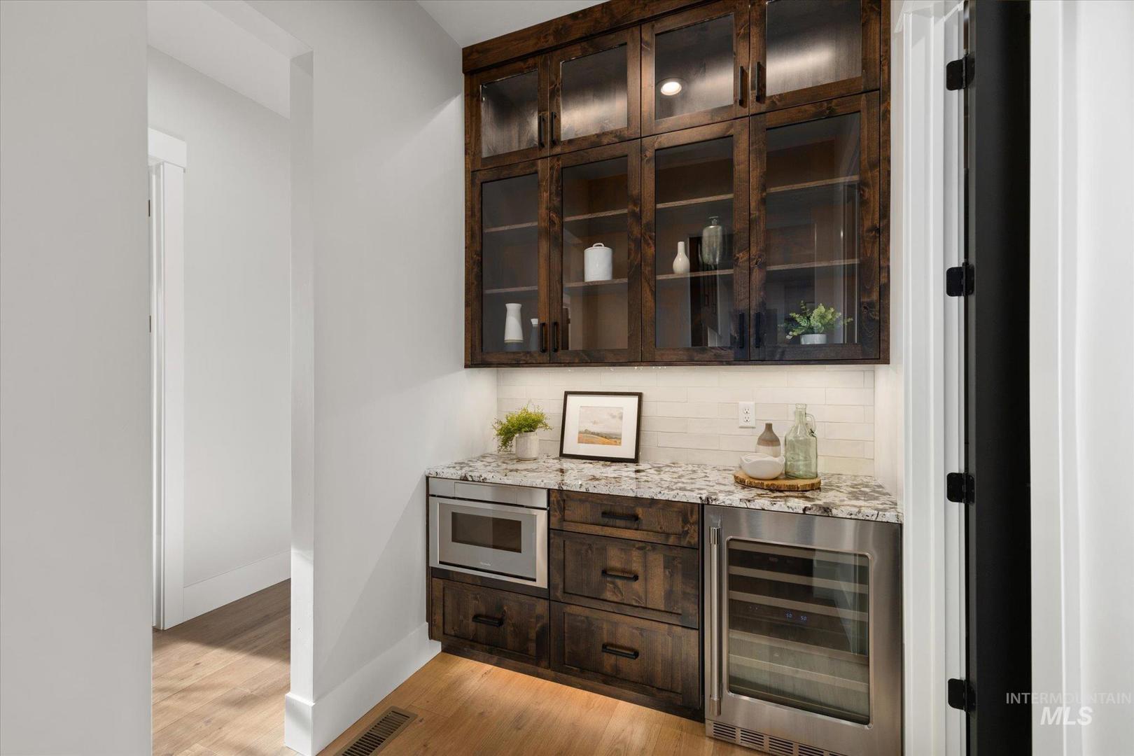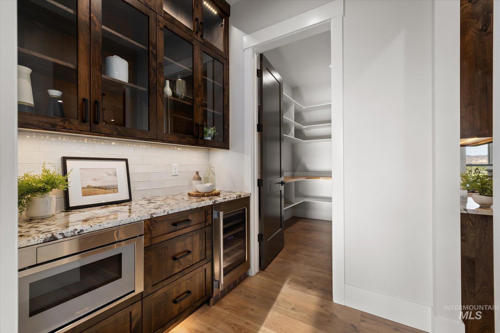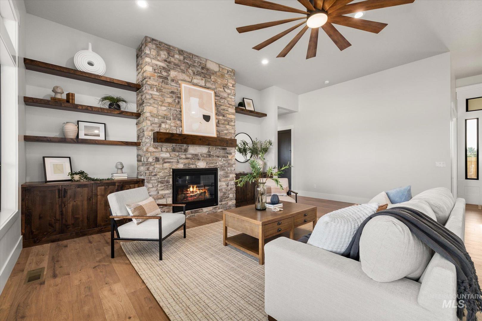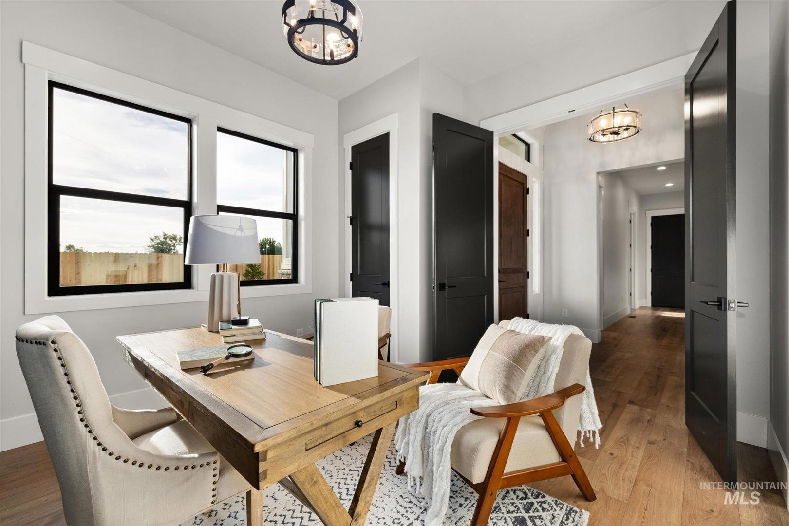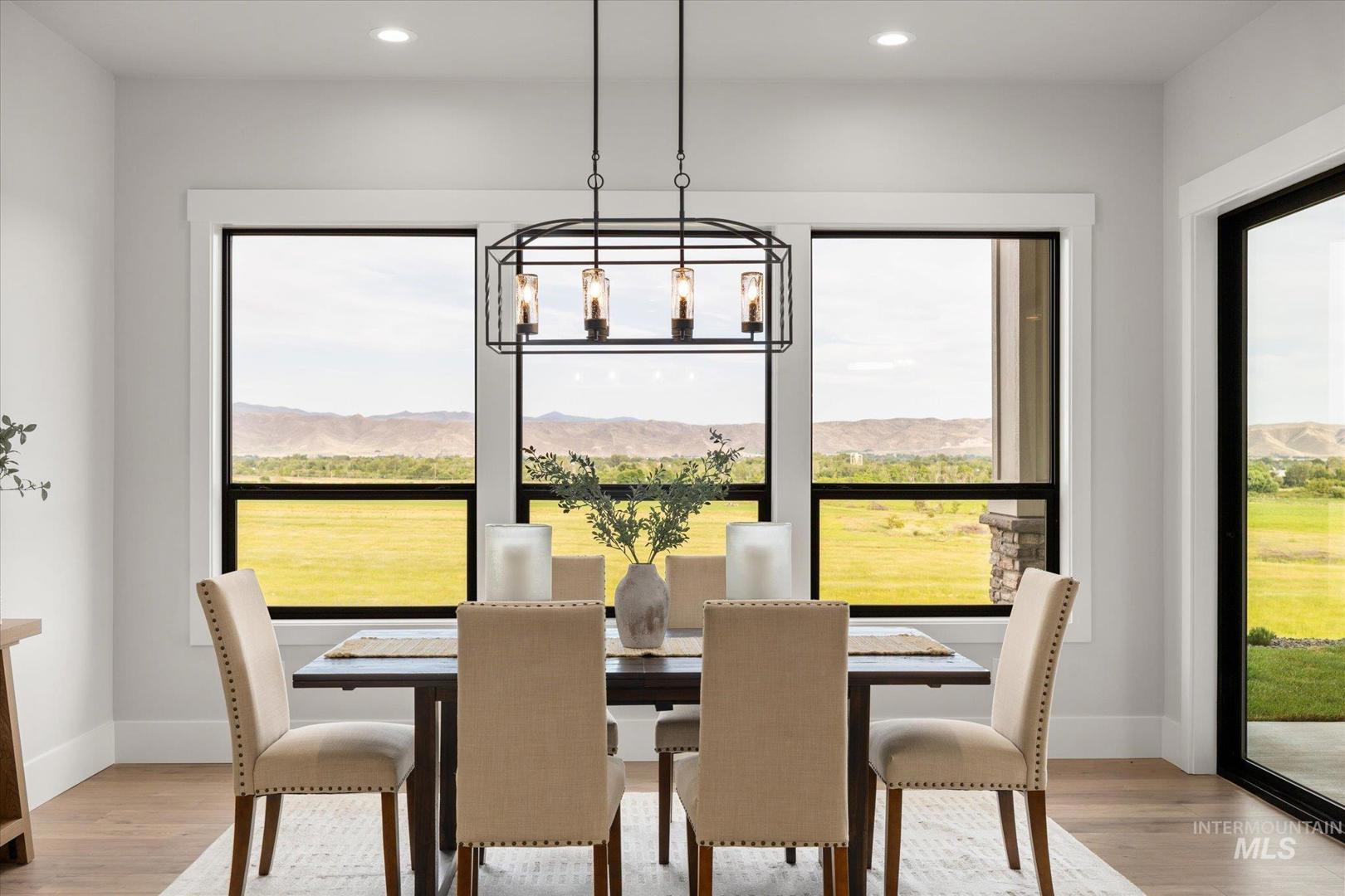 New construction perched on a bluff, surrounded by farmland w/ expansive mountain & valley views. 4-bedroom, 2.5-bath, 2,950 sqft single-level home blends quality craftsmanship w/ modern design. The gourmet kitchen features high-end built-in appliances, quartz countertops, a large center island, modern tile backsplash, walk-in pantry, & custom cabinetry. The split-bedroom floorplan offers privacy & function, w/ a luxurious primary suite including a spa-like bath, walk-in shower, dual vanities, & an oversized walk-in closet. On the opposite side of the home are two bedrooms & a private office that can serve as a fourth bedroom. LVP flooring runs throughout the kitchen, living, office, foyer and primary bedroom. Tons of natural light, this home includes soaring ceilings, a gas fireplace w/ floor-to-ceiling stone, a wall of windows w/ 8-ft doors, built-in shelving, & a extra-large slider leading to a covered patio & private, southeast-facing backyard. This parcel also includes an additional 0.657 acre lot labeled "Lot 5 Common Area" shown on the plat under DOC Tab. Check out the Amenity List under the DOC tab for selections and finishes. PLEASE GO SLOW ON GRAVEL ROAD - 5MPH - Watch for Neighborhood Kids and Pets Please. Agent related to Seller. BTVAI