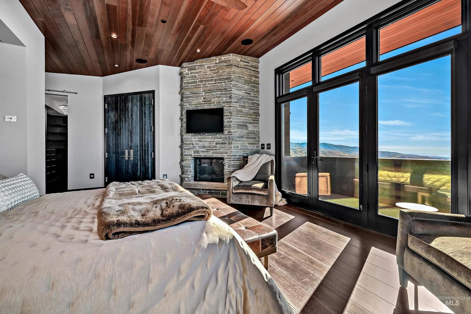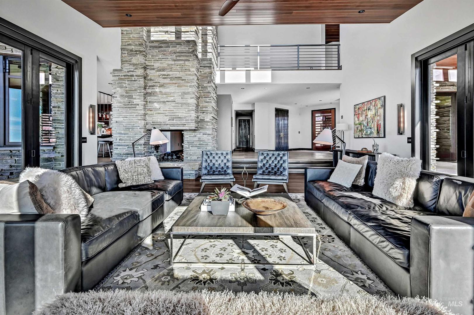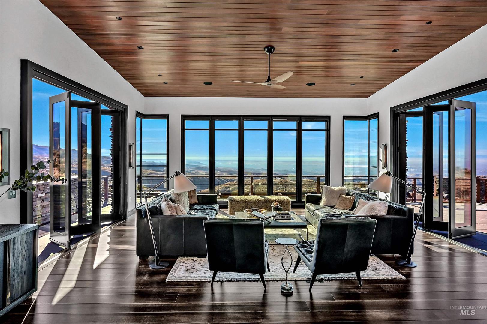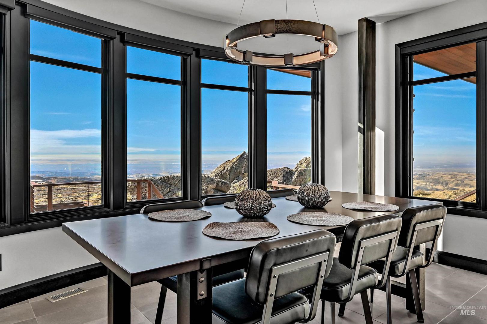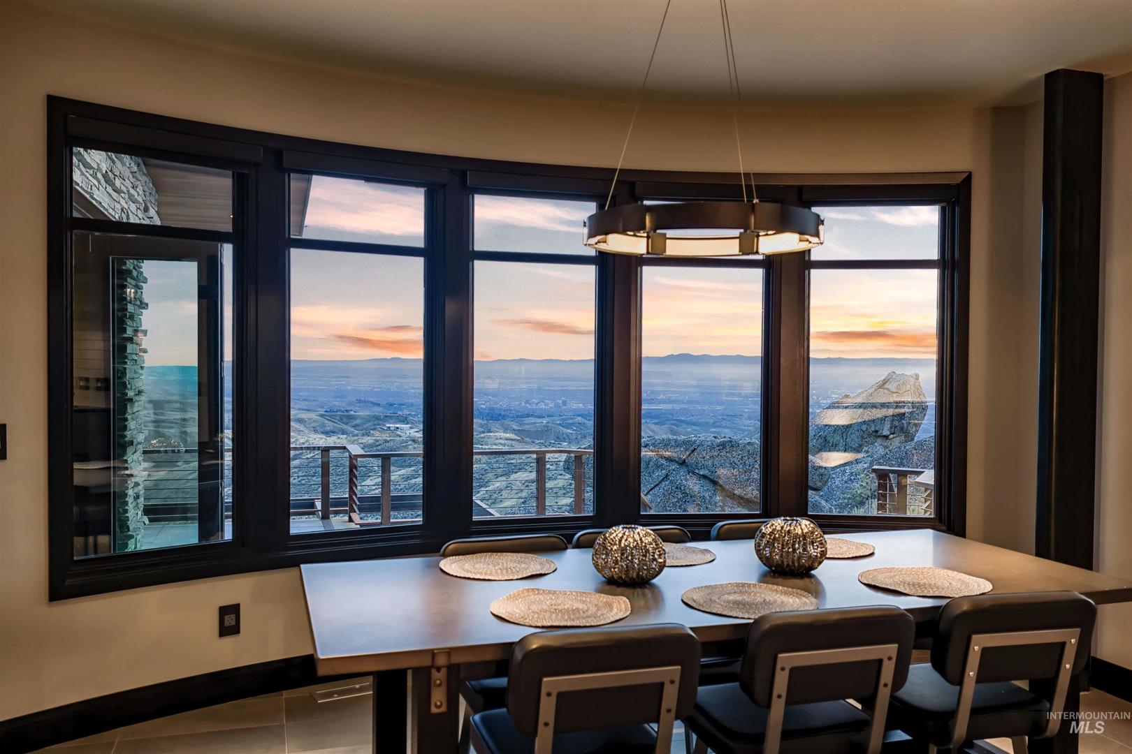 Welcome to The Overlook—where bold design meets the rugged beauty of Idaho. Nestled among massive boulders, this architectural gem commands sweeping views of Boise and the entire Treasure Valley. A dramatic two-story fireplace takes center stage, setting the tone for this one of a kind retreat. Set on 4.72 acres with low-maintenance landscaping, the home offers 4 bedrooms, 5.5 bathrooms, an executive office, a chef’s kitchen, ensuite bedrooms and over 7,000 square feet of meticulously crafted living space. Retractable glass walls in the living room offer seamless flow to the outdoor patios. Head to the lower level to discover your private home theater and fully equipped gym, perfect for unwinding or staying sharp. The detached shop provides additional vehicle storage and could easily be an ADU. Built without compromise, this home blends luxury and functionality seamlessly. Downtown Boise’s vibrant dining and entertainment is just 20 minutes away while outdoor enthusiasts will love the close proximity to Bogus Basin Ski Resort along with the Ridge to Rivers Trail System.