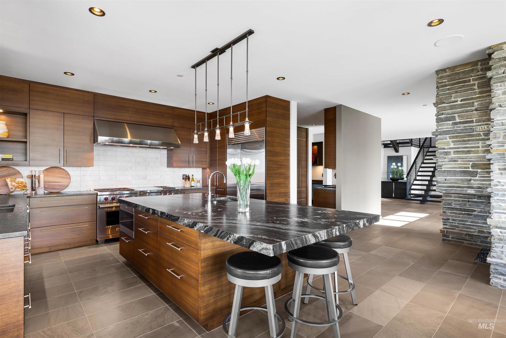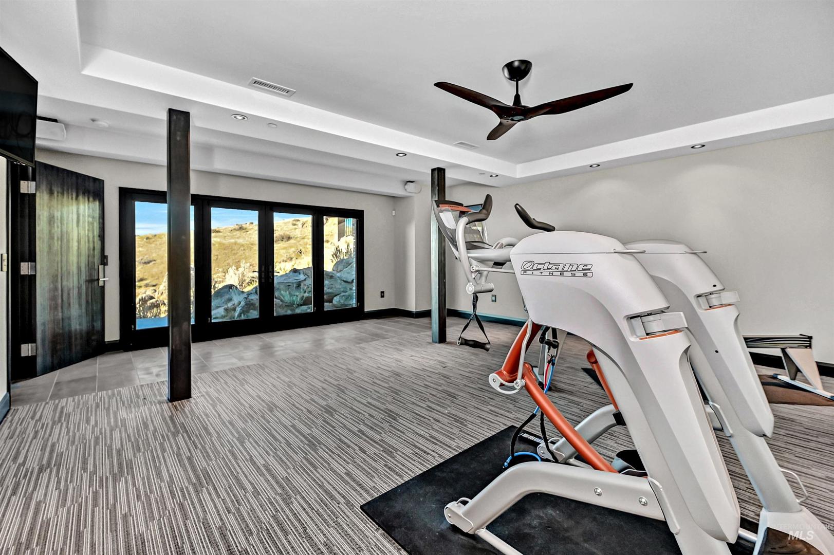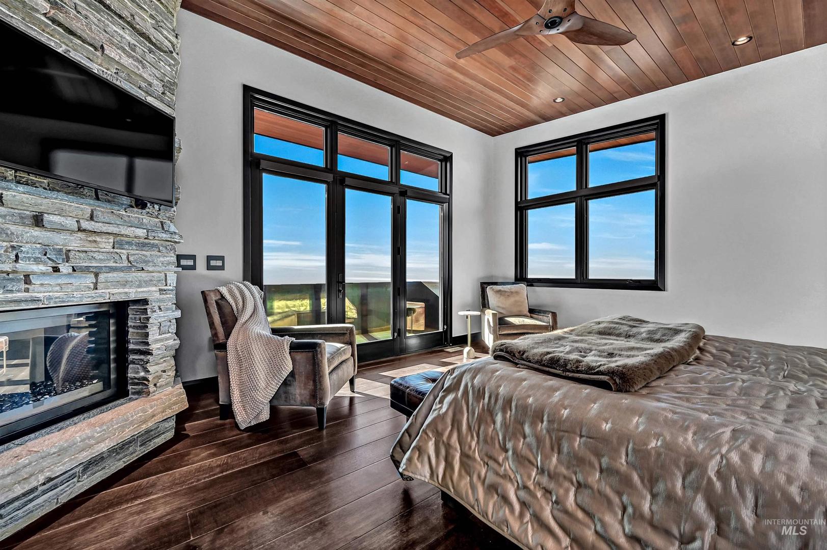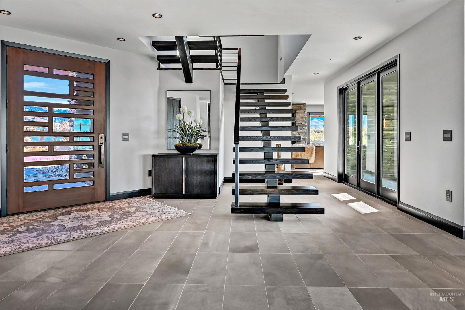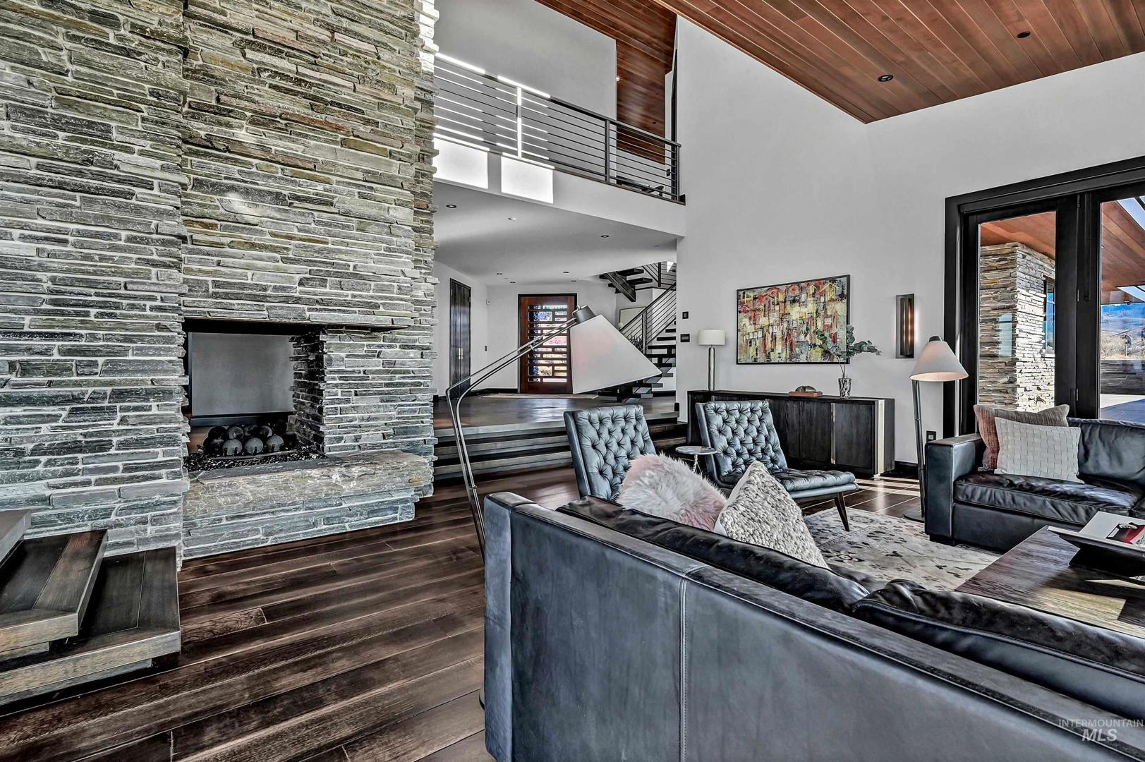 Welcome to The Overlook—where bold design meets the rugged beauty of Idaho. Nestled among massive boulders, this architectural gem commands sweeping views of Boise and the entire Treasure Valley. A dramatic two-story fireplace takes center stage, setting the tone for this one of a kind retreat. Set on 4.72 acres with low-maintenance landscaping, the home offers 4 bedrooms, 5.5 bathrooms, an executive office, a chef’s kitchen, ensuite bedrooms and over 7,000 square feet of meticulously crafted living space. Retractable glass walls in the living room offer seamless flow to the outdoor patios. Head to the lower level to discover your private home theater and fully equipped gym, perfect for unwinding or staying sharp. The detached shop provides additional vehicle storage and could easily be an ADU. Built without compromise, this home blends luxury and functionality seamlessly. Downtown Boise’s vibrant dining and entertainment is just 20 minutes away while outdoor enthusiasts will love the close proximity to Bogus Basin Ski Resort along with the Ridge to Rivers Trail System.