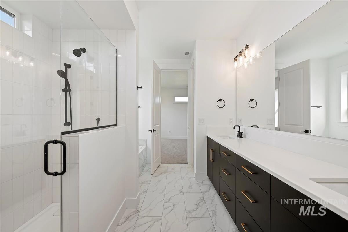Introducing The Myles by Whitepeak Homes, a charming contemporary farmhouse with a bright, open floorplan. The main level features an inviting open-concept kitchen and great room with a gas fireplace, flowing to a covered rear patio, plus a stylish office off the vaulted entry. A ½ bath and handy mudroom add convenience. The kitchen shines with a large quartz island and walk-in pantry. Upstairs, unwind in the oversized primary bedroom with a spacious walk-in closet, joined by an open loft, laundry room, 3 roomy bedrooms, and 3 full baths. Fencing is included, completing this modern yet timeless home! Don`t settle for just another house, discover your Idaho dream home.