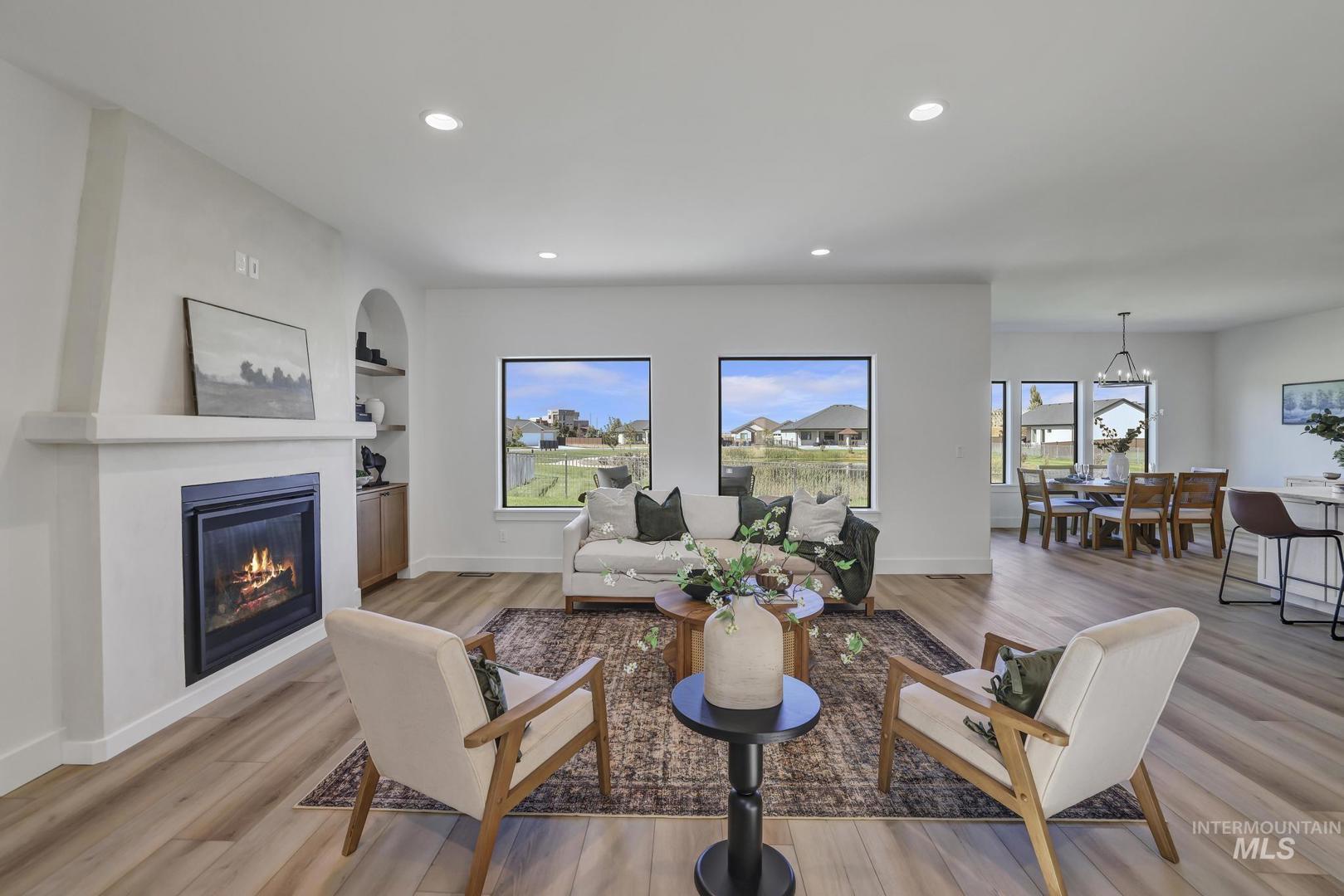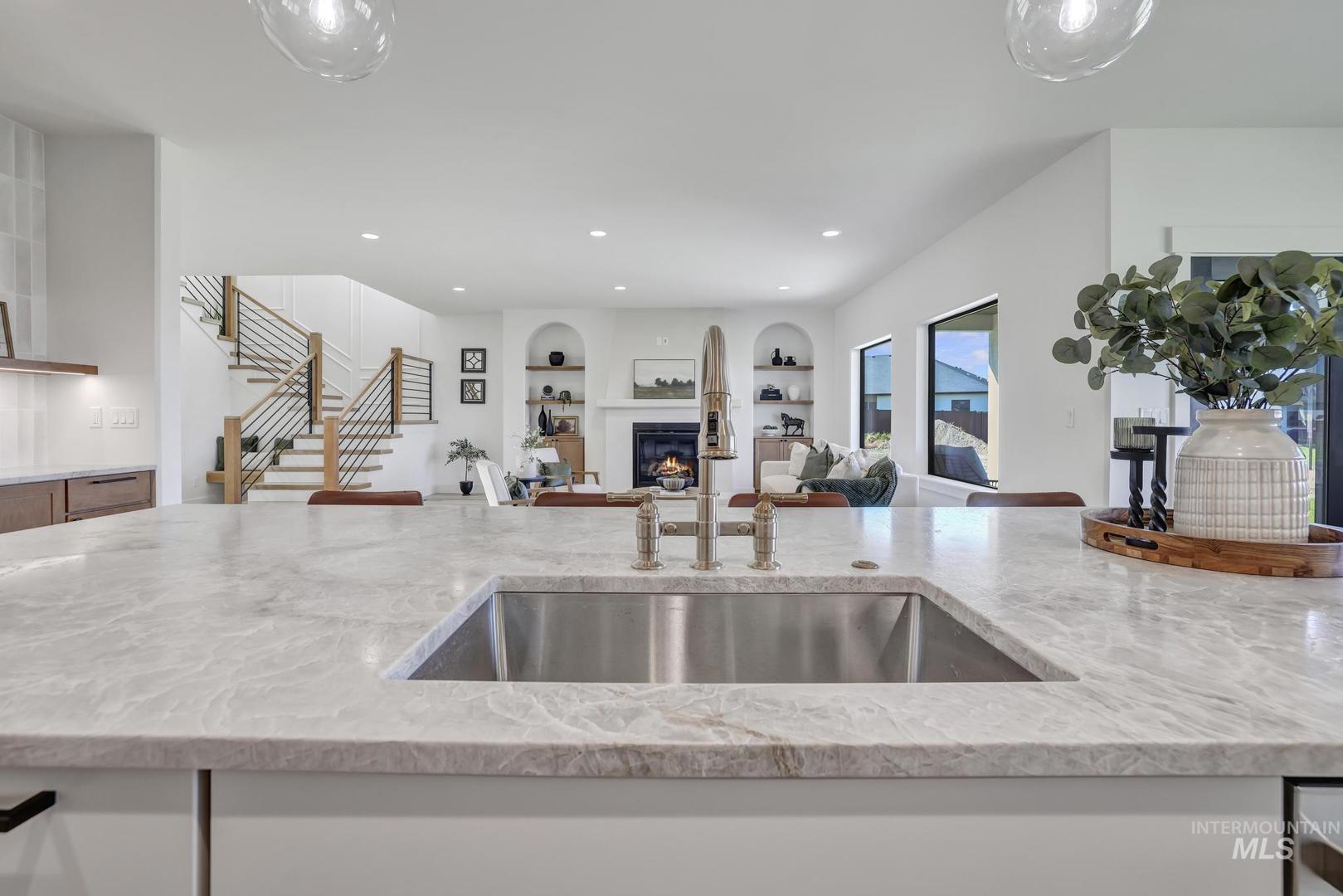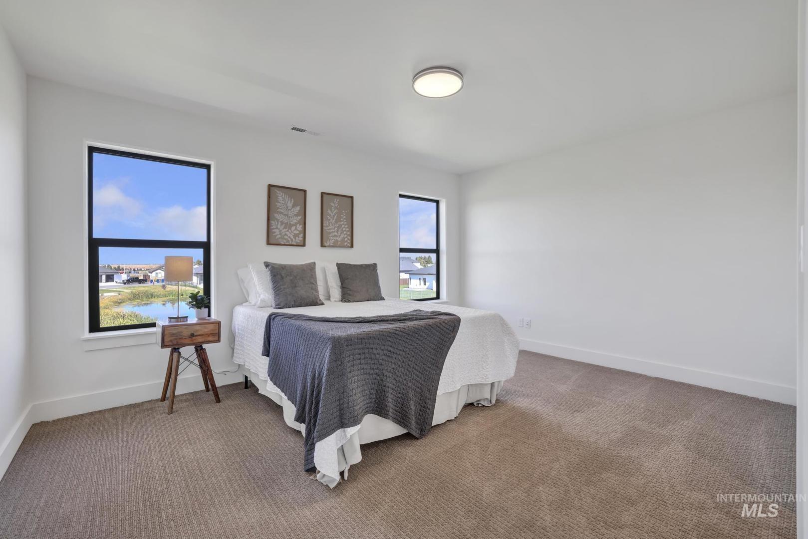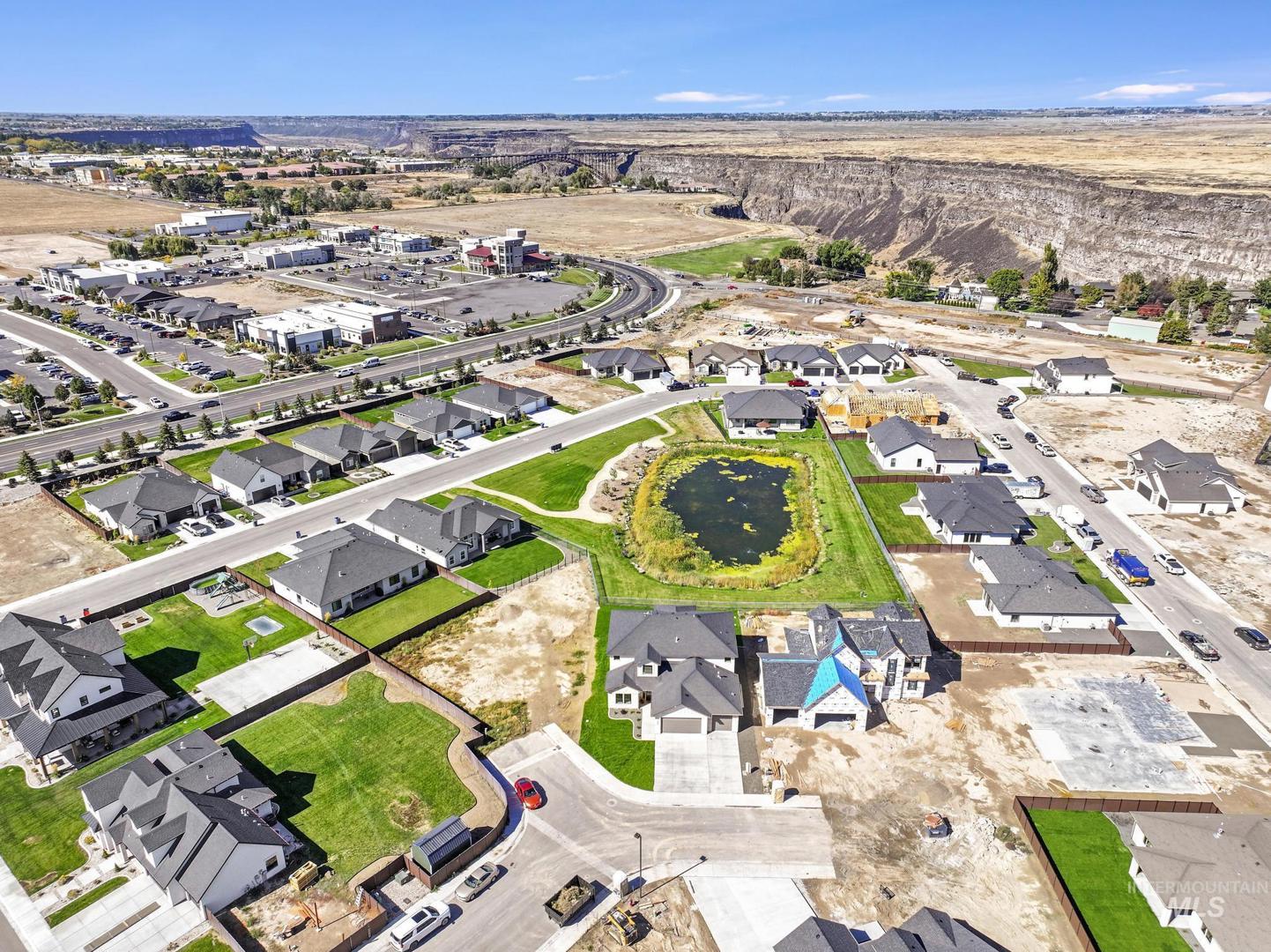 Welcome to this stunning brand-new two-story home featuring 5 bedrooms, 3.5 baths, an office, and endless custom details. Perfectly positioned along a gated pond with ducks and direct access to the Snake River Canyon walking trail. Every bedroom features a walk-in closet! The main floor offers a custom kitchen with Taj Mahal quartzite countertops, a Venetian plaster fireplace, beautiful custom arches with built-ins, a white oak staircase, a great room, and a laundry room connected to the master closet. Upstairs you’ll find 4 bedrooms, 2 full baths—including a Jack-and-Jill—and a spacious family room, plus a second laundry room. The master suite includes a walk-in tile shower and dual vanities. Enjoy summer evenings on the covered patio overlooking the water. A 3-car garage and top-tier finishes complete the home. The HOA plans to offer pools, pickleball courts, and a community clubhouse.