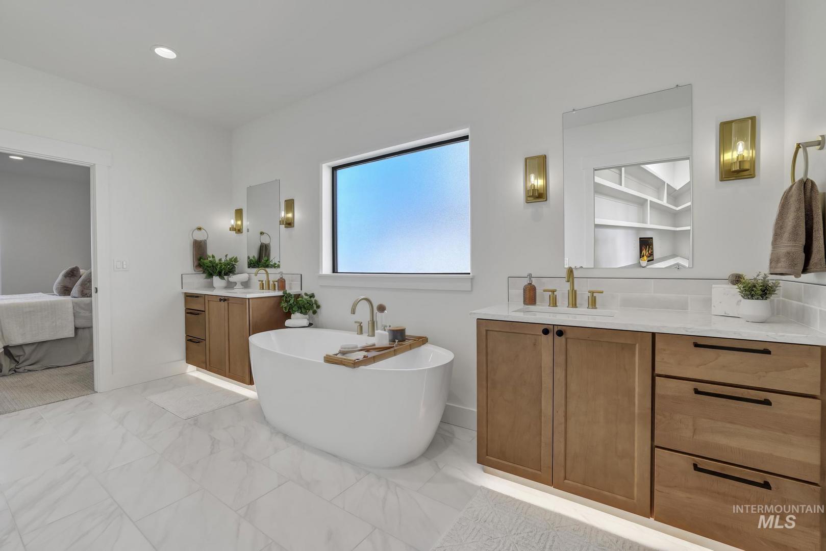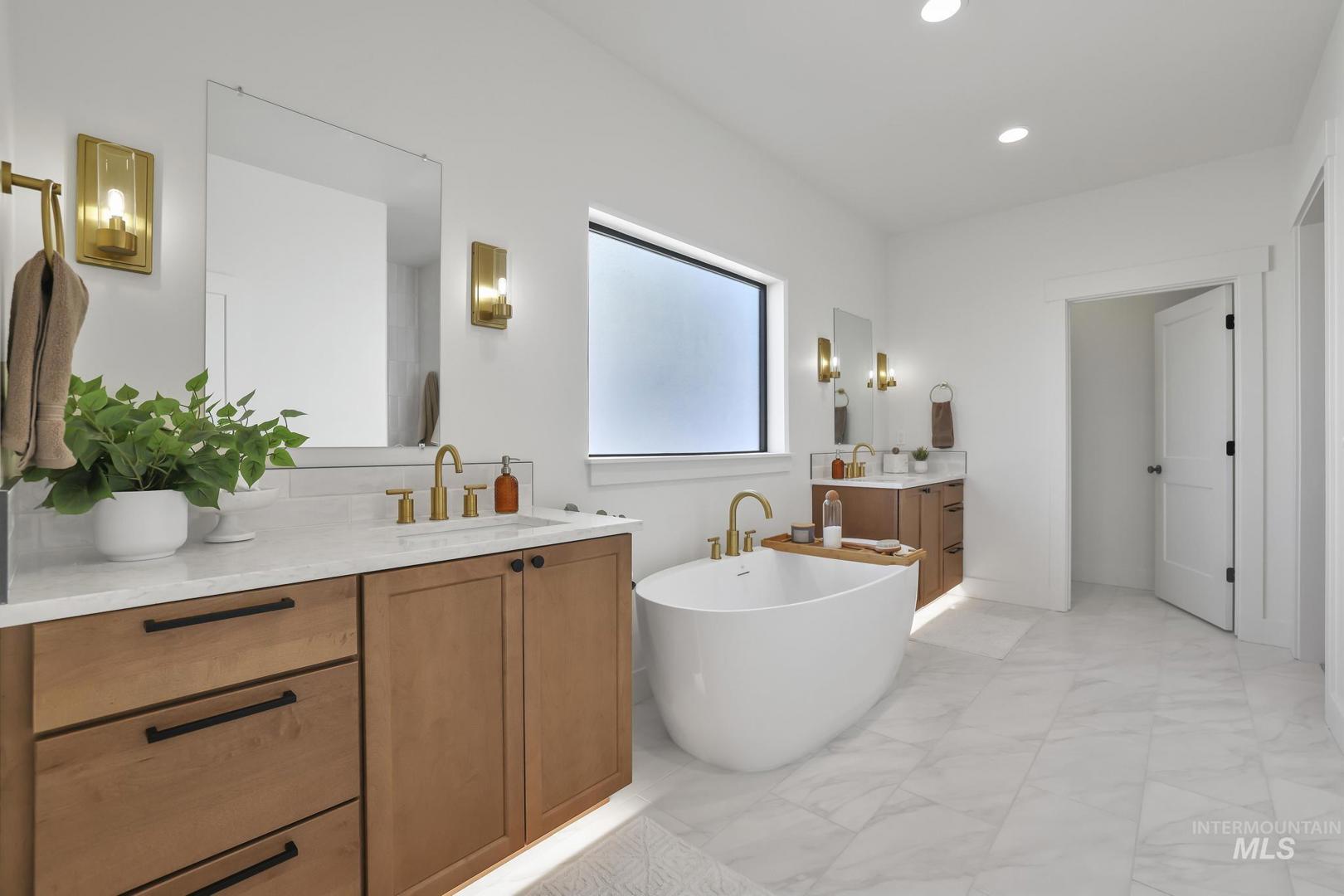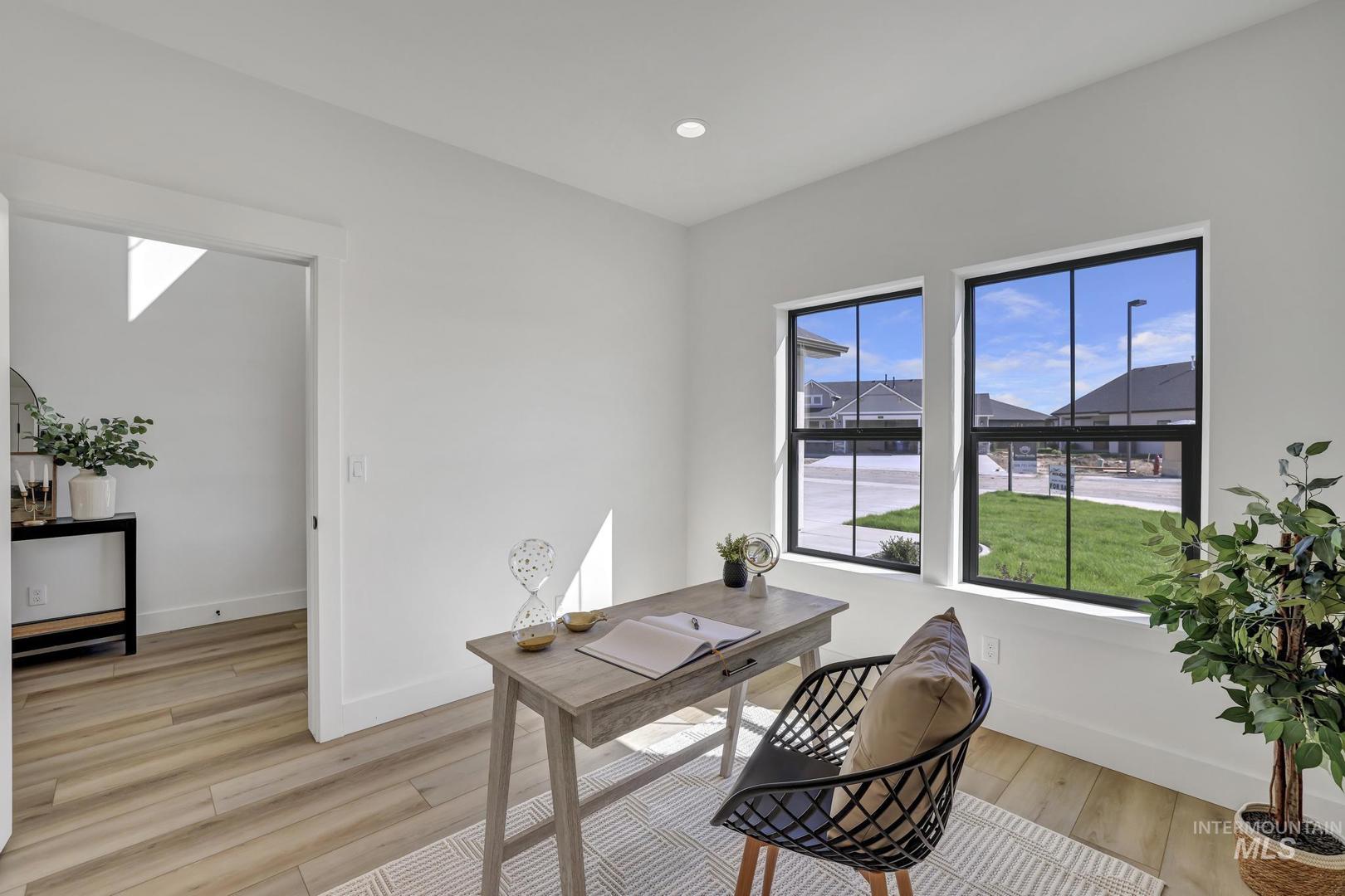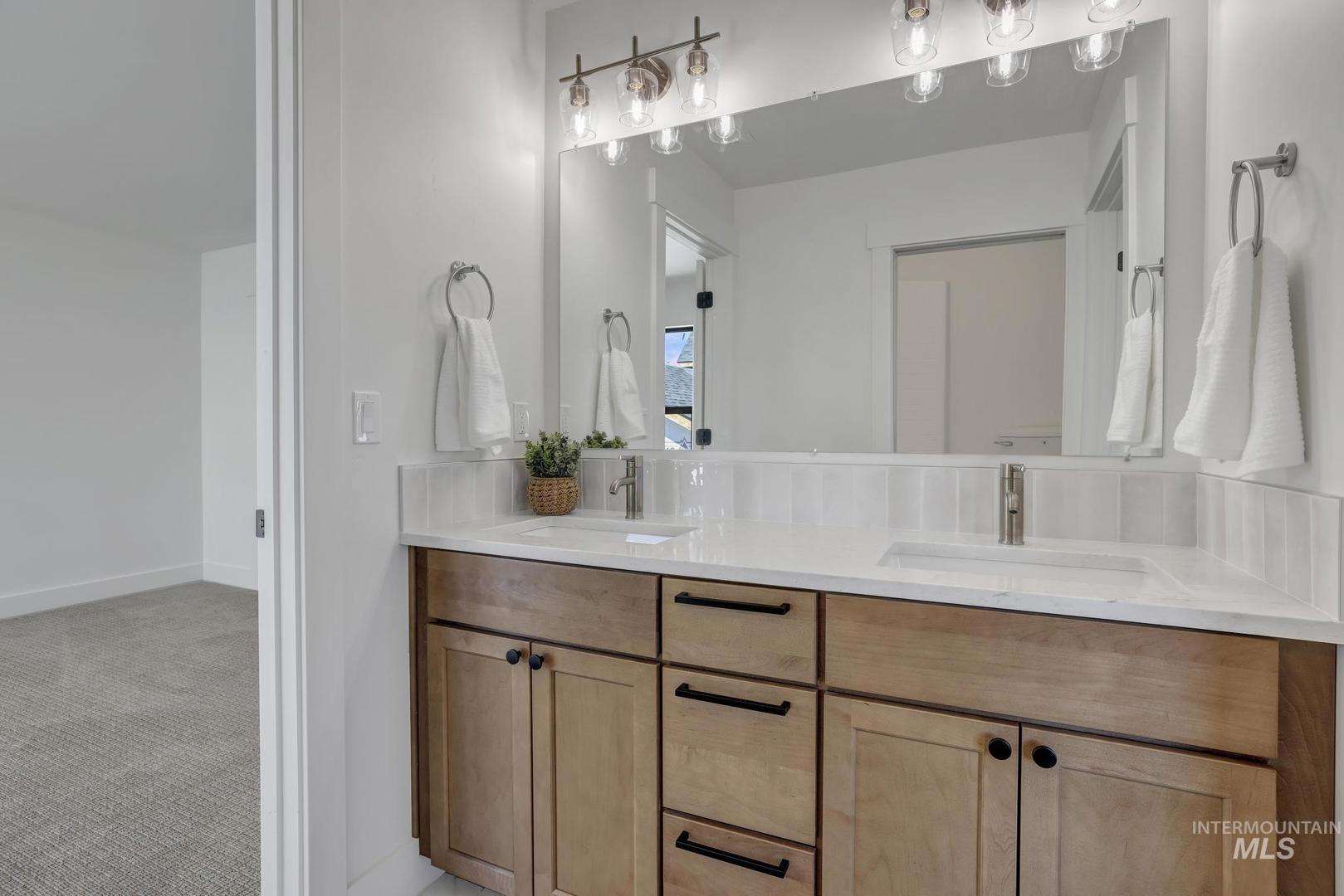 Welcome to this stunning brand-new two-story home featuring 5 bedrooms, 3.5 baths, an office, and endless custom details. Perfectly positioned along a gated pond with ducks and direct access to the Snake River Canyon walking trail. Every bedroom features a walk-in closet! The main floor offers a custom kitchen with Taj Mahal quartzite countertops, a Venetian plaster fireplace, beautiful custom arches with built-ins, a white oak staircase, a great room, and a laundry room connected to the master closet. Upstairs you’ll find 4 bedrooms, 2 full baths—including a Jack-and-Jill—and a spacious family room, plus a second laundry room. The master suite includes a walk-in tile shower and dual vanities. Enjoy summer evenings on the covered patio overlooking the water. A 3-car garage and top-tier finishes complete the home. The HOA plans to offer pools, pickleball courts, and a community clubhouse.