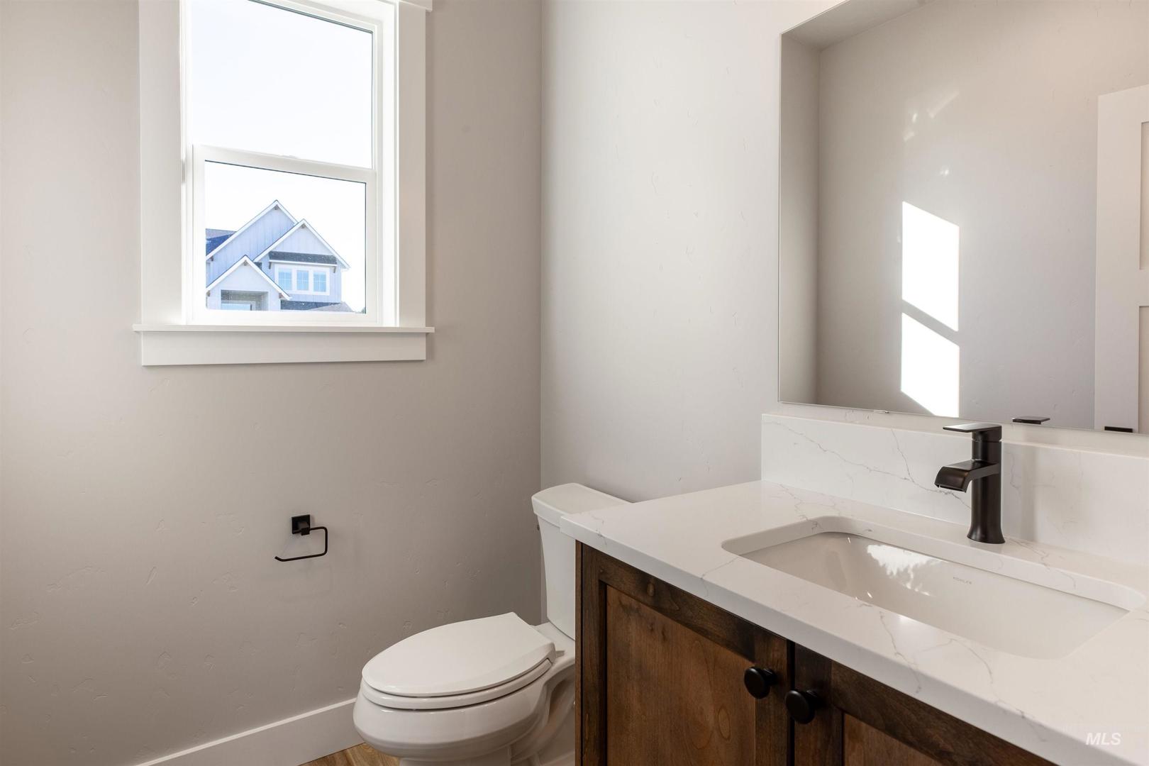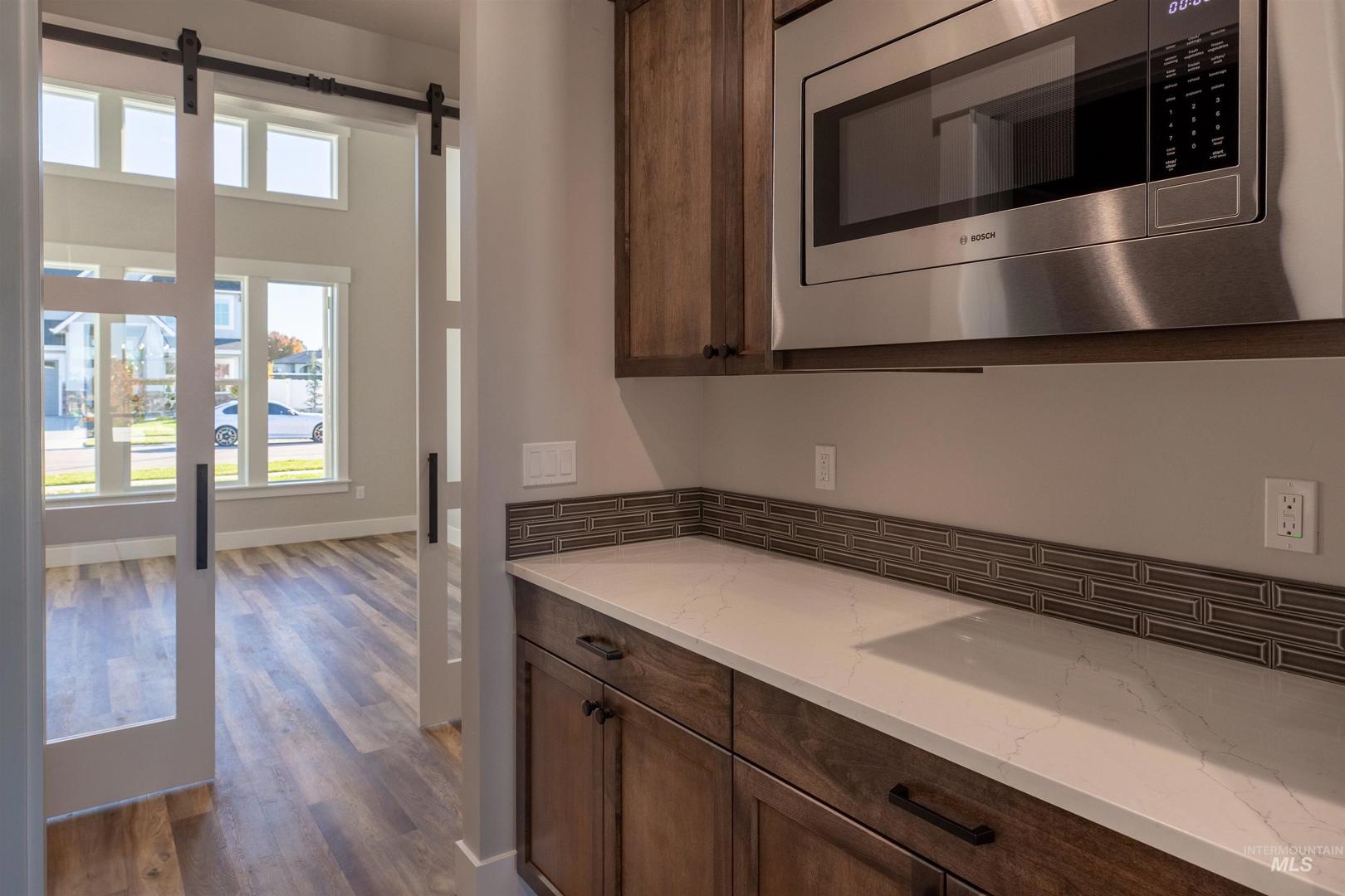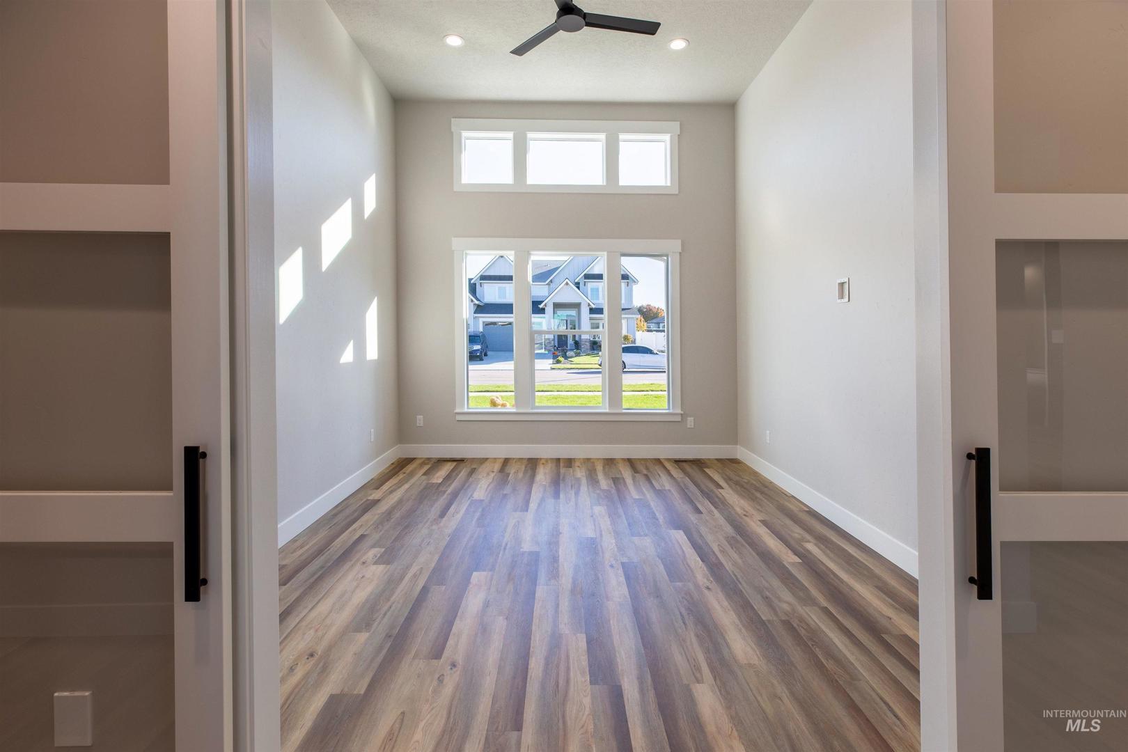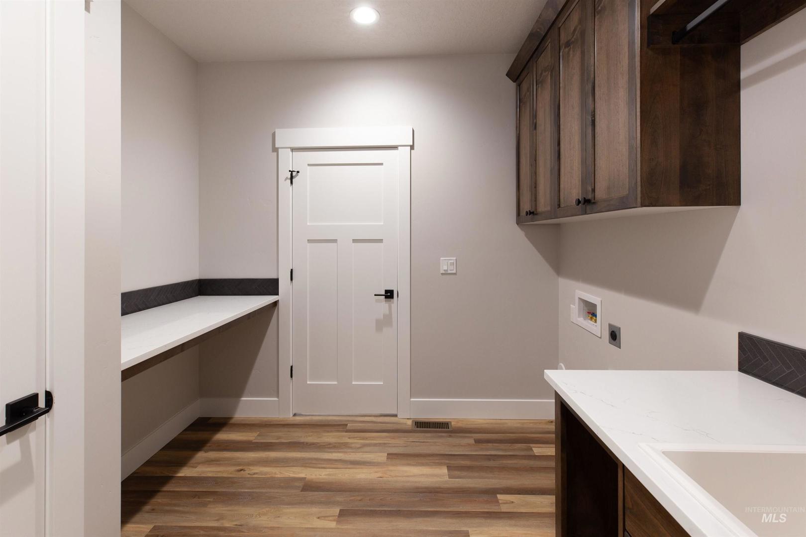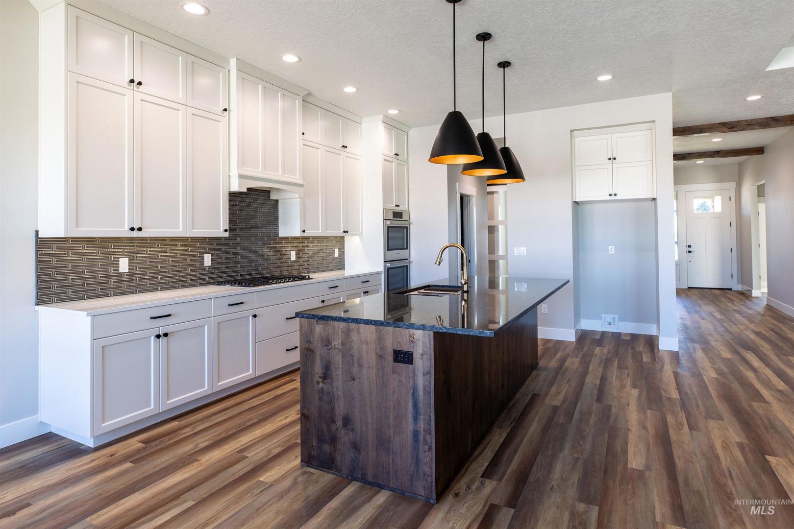 Awesome Jump Creek plan by Rugged Terrain Homes. This split bedroom plan boasts a beautiful primary retreat with a massive walk-in closet, his and hers vanities with tasteful colors and hard surfaces/quartz/tile throughout including the laundry room. Floor to ceiling custom kitchen cabinets with soft close drawers, undermount lighting and butler`s pantry. Living room features coffered ceiling and cozy fireplace flanked by built ins. Secondary bedrooms share a Jack & Jill full bath. Flex/media room w/insulated sound walls for tons of possibilities. Halo can lighting in Primary and Living Rm. AMAZING finished RV garage with fully insulated and separate tool room with own heater & circuit (plus pre-plumbed for sink), 4` LED lighting and tankless water heater. Garage loft has data wiring and views of the mountains. 36ft RV Garage w/work area, multiple circuits including 50Amp plug. Main portion of garage pre-plumbed & vented for gas heater. Good sized covered back patio, space for garden with separate sprinkler zone. New subdivision Shafer View Terrace-complete with tot play lot, pickleball court and picnic gazebo) along with views toward the foothills.