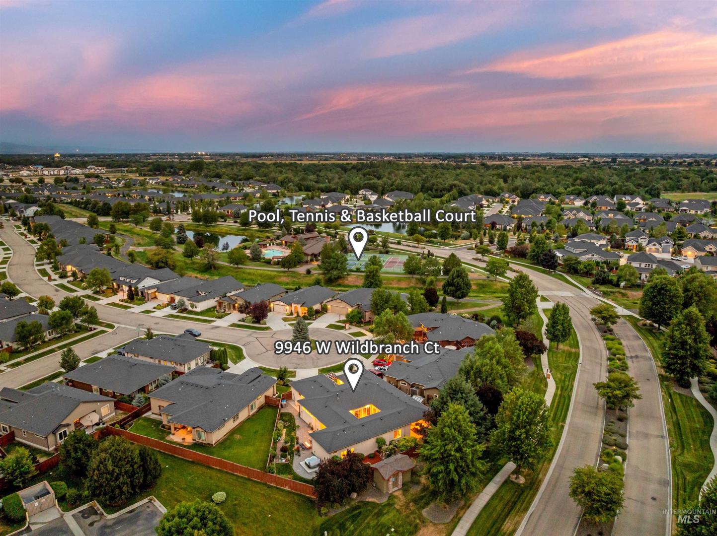 Gorgeous custom-built home on a quiet cul-de-sac. Thoughtfully designed horseshoe layout features walls of windows surrounding the beautifully paved courtyard, filling the home with natural light and creating an open, oasis-like feel. Just steps outside, enjoy the year-round outdoor experience w/2 separate covered seating areas, lg gas fire pit, garden space, and the tranquility of 2 water features. Home features top-of-the-line upgrades throughout w/spacious bedrooms; one room plumbed for wet bar. Mstr bath w/dual vanity, soaker tub, and two-door walk-through shower. Lg walk-in butler’s pantry, central vac w/equipment, fireplace, and built-in shelving, water softner. Finished 2-car garage w/epoxy floors, attached shop w/upgraded electrical, utility sink, cabs/shelving. Leave your car at home—minutes to shopping, dining, and more. Short path to 82-acre Freedom Park w/pond, pools, pickleball, tennis courts, and clubhouse. HOA incl. internet, irrigation, mowing, snow removal, sprinkler startup/blowout.