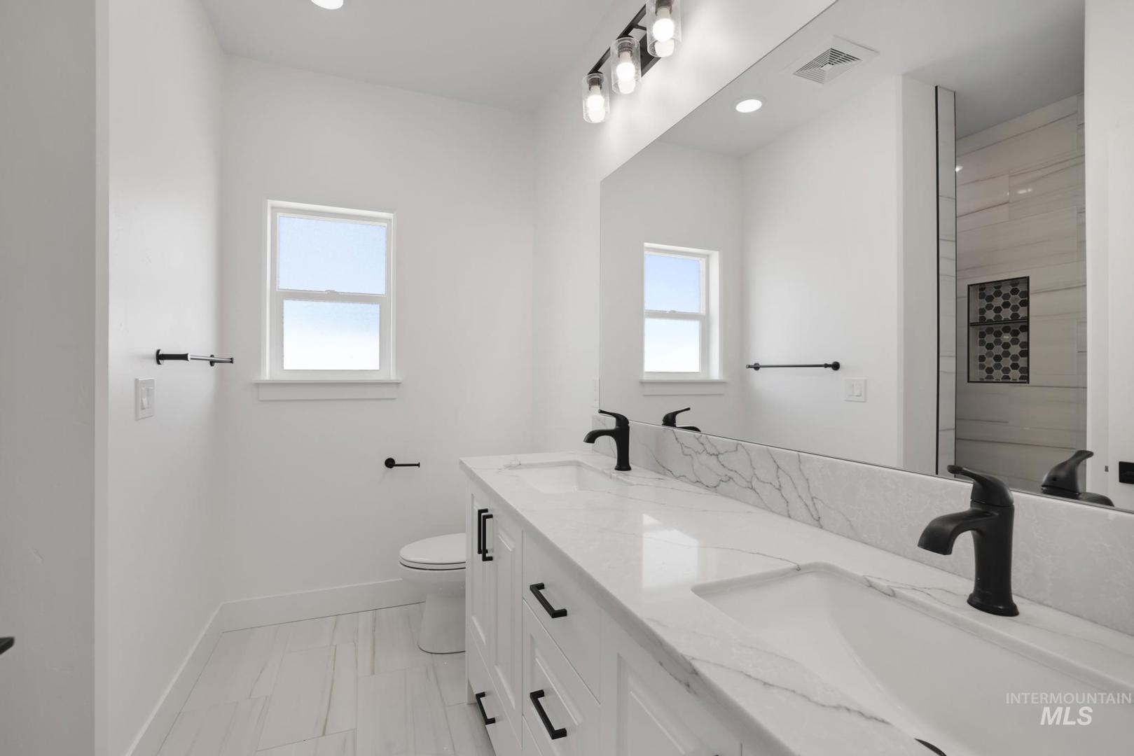 This is the home you have been looking to buy! 4 Bedrooms with two of the bedrooms are split. Another of the bedrooms is off of the master bedroom which could be a bedroom, office or bonus tv room. 2 Bathrooms both with quartz tops and tile flooring. Master bedroom has dual vanity and walk in tile shower, Laundry room has upper and lower cabinets with quartz top. Very open and vaulted living room and kitchen. Kitchen is light and bright with big island and sink. LVP in Common areas, tile in bathrooms and carpet in the bedrooms. Large Home on large city lot offers 1730 sq ft. of living space. Exterior is maintenance free full stucco and 30 asphalt shingles. Front sod and sprinkler, Rear seed and sprinkler with beautiful curbing with rock, plants and bushes. Rear vinyl fencing is complete. Welcome to Upland Meadows a Jerome Idaho Subdivision. Located on the East side of Jerome Idaho with easy access to town, South Lincoln, State Hwy 25, Highway 93 and Interstate 80. Idaho Power, Intermountain Gas, Sparklight, City Water and City Sewer. Home is done and ready to move in. Schedule to see this home with any Realtor, home is available to view anytime.