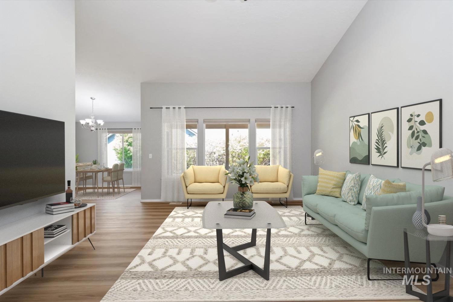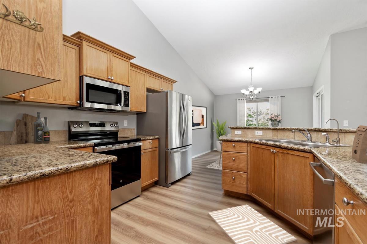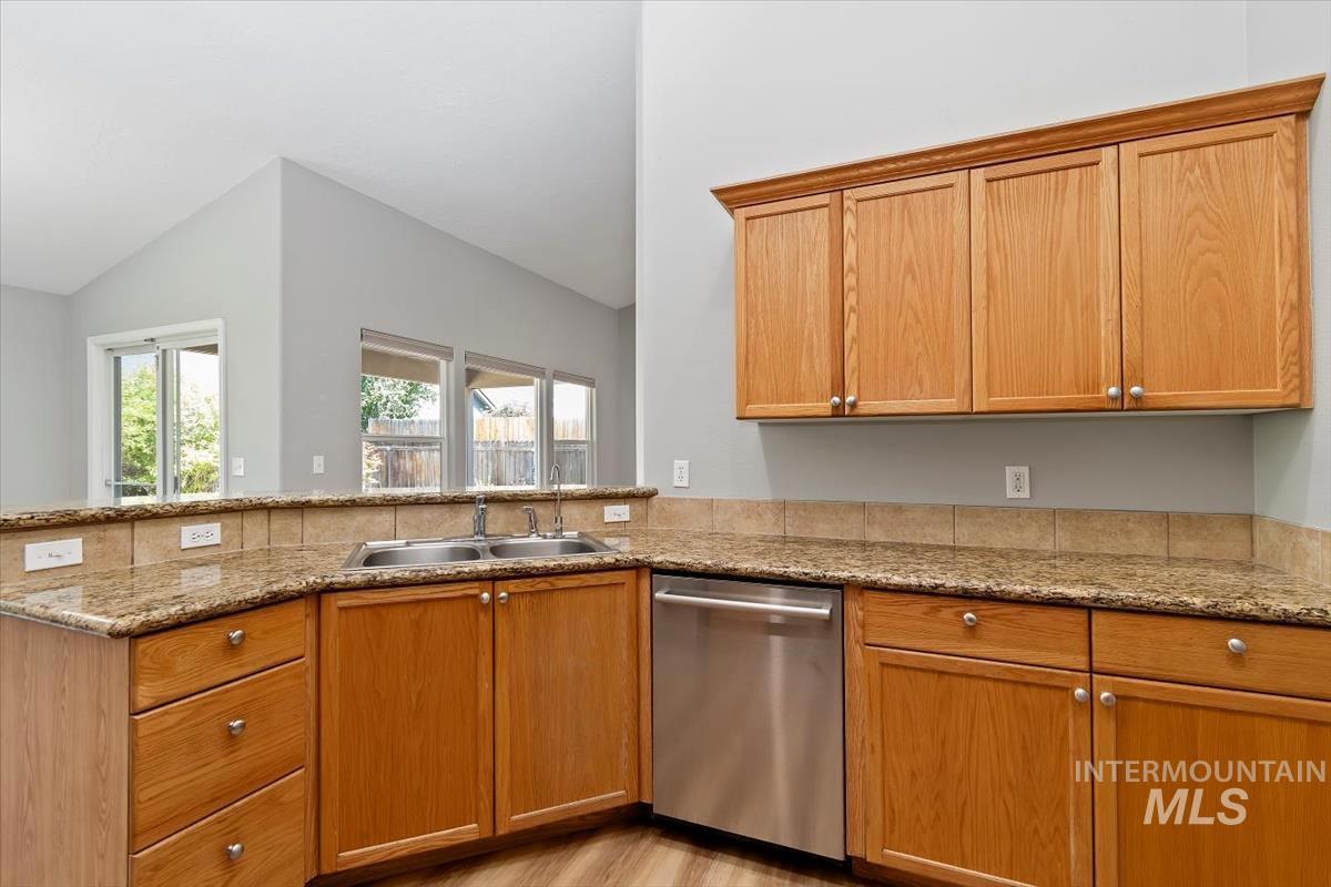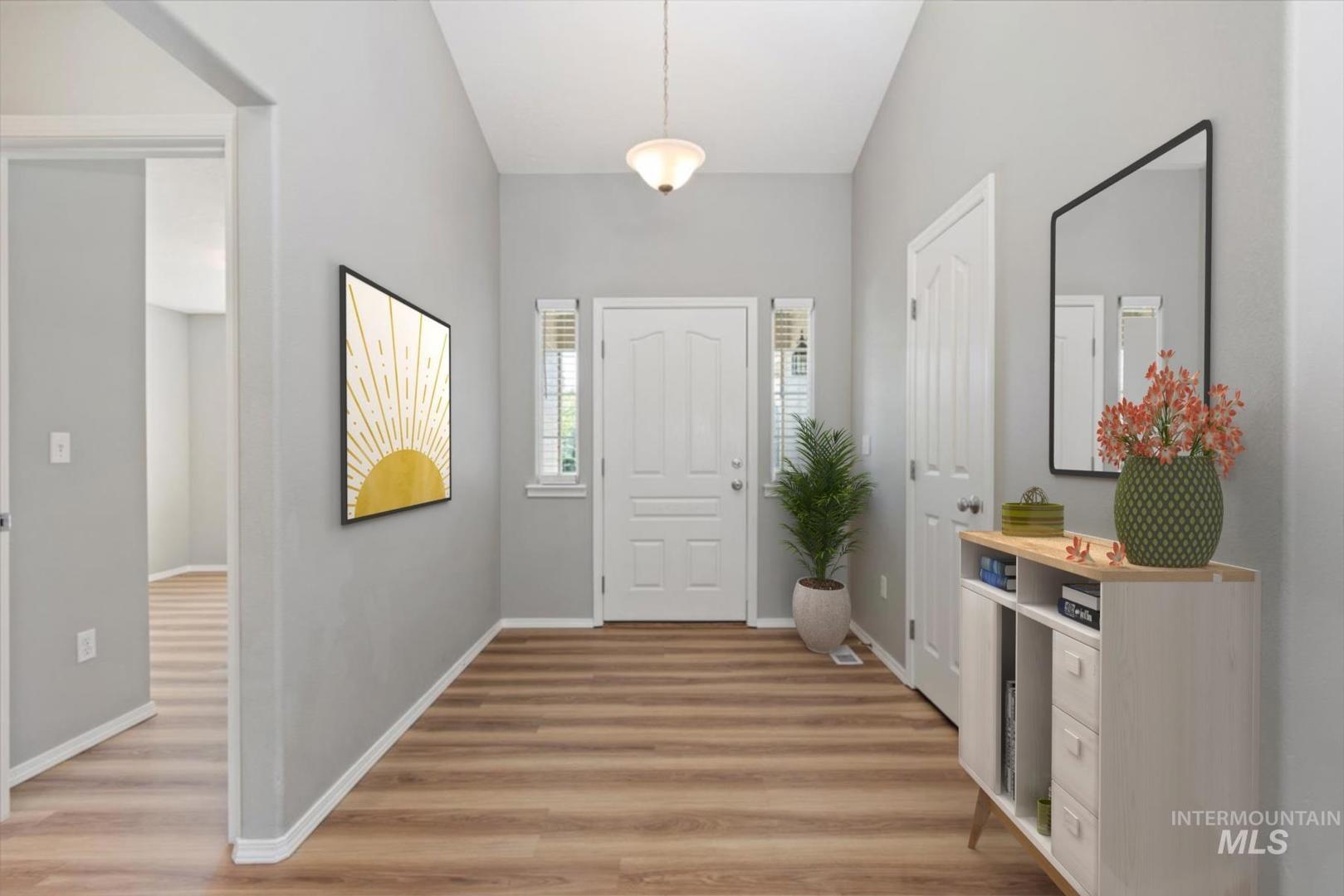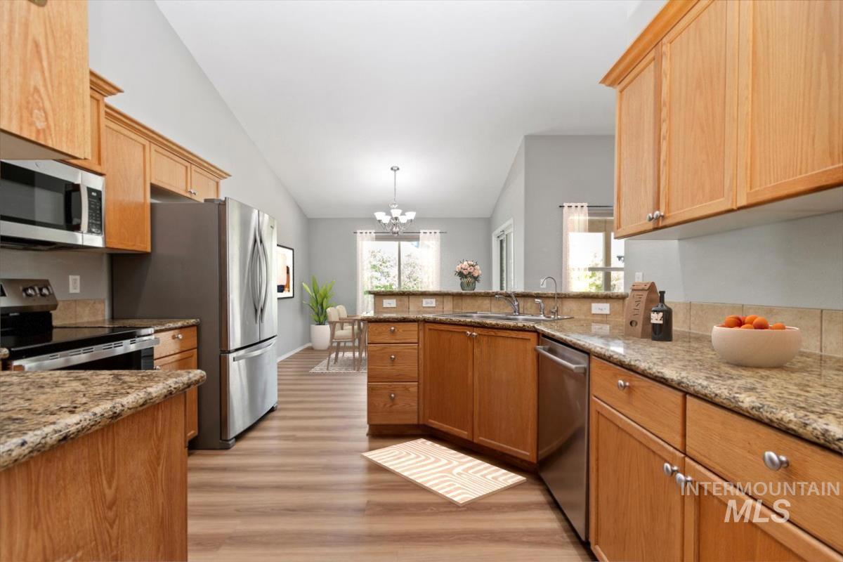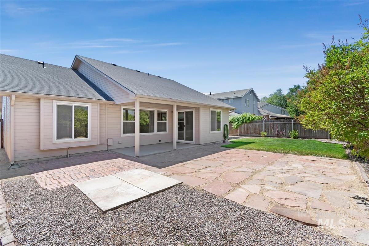 SELLER IS SUPER MOTIVATED! BRING US AN OFFER! Immaculate nearly 1500 square foot single level 3 bed / 2 bath home, with a large three car garage in an excellent, northwest Boise neighborhood. Tucked away, just off Hill Road--Near the foothills, Optimist Sports Complex and Old Town Eagle. Spacious, open living concept floor plan, with vaulted ceilings in the great room and split bedroom design for privacy. Also, brand new LVP flooring throughout. The kitchen features granite countertops, a pantry, breakfast bar, a new stove and microwave, and stainless steel refrigerator. Washer and dryer included as well. The spacious primary bedroom suite includes granite countertops, dual vanities, large walk-in closet and a separate water closet. The backyard features a covered patio, plus extended flagstone perfect for entertaining or raised garden beds, and a hot tub pad with hookup. The landscape has underground sprinklers with drip irrigation, plus there is a covered storage at the side of the house. Irrigation water included in the HOA dues. OPEN HOUSE SAT OCT 18th from 11am to 1pm. .