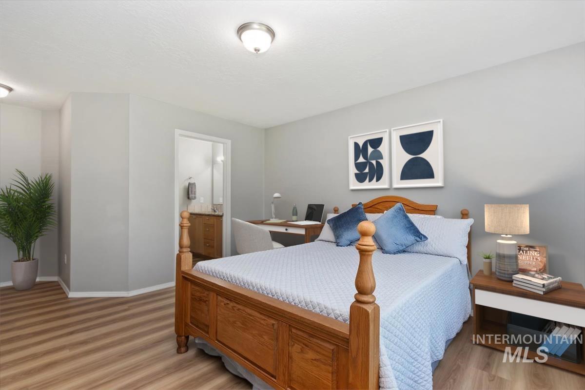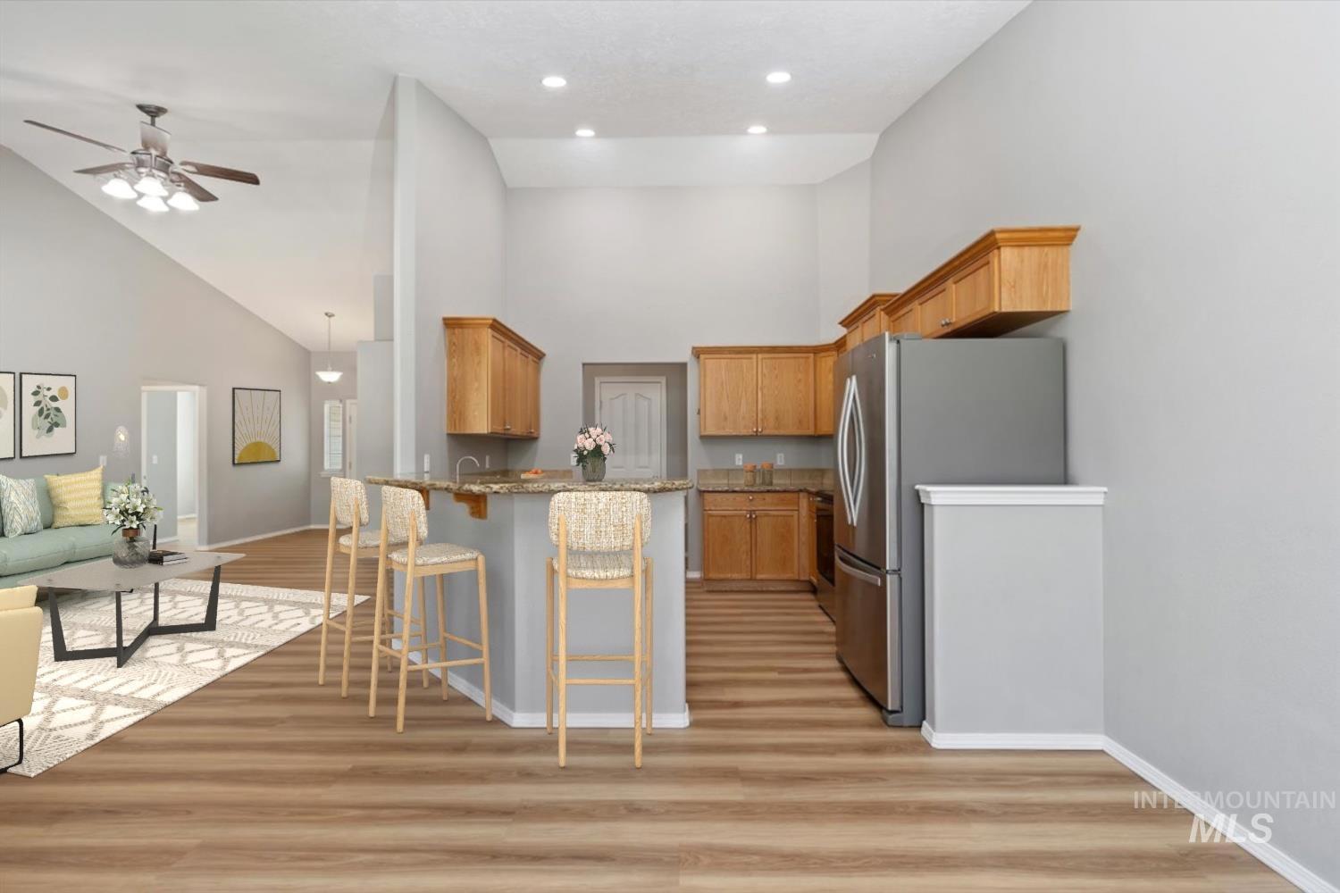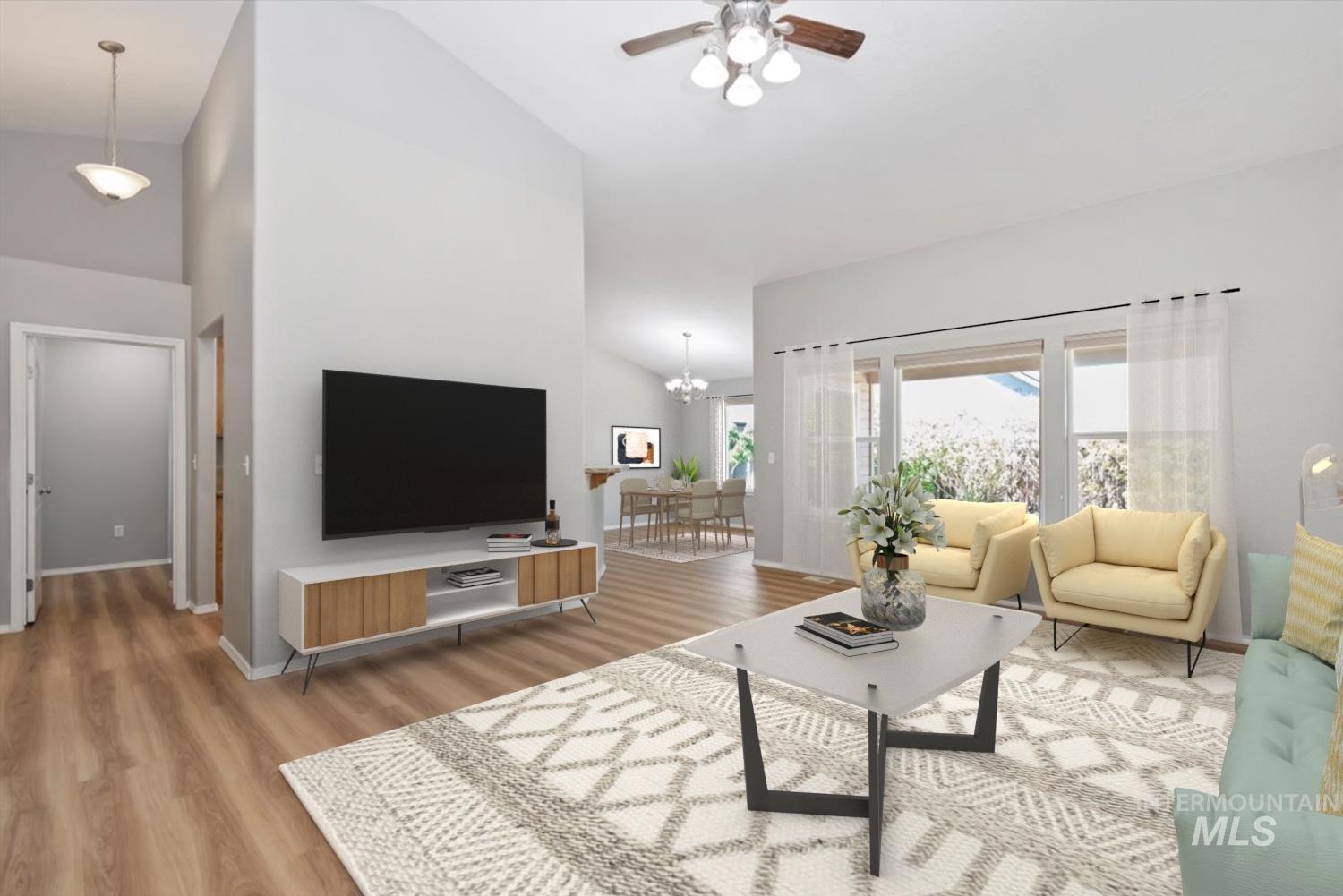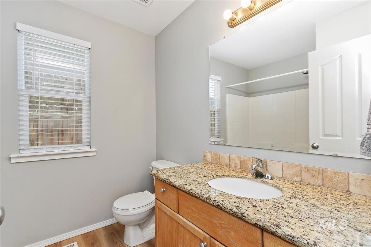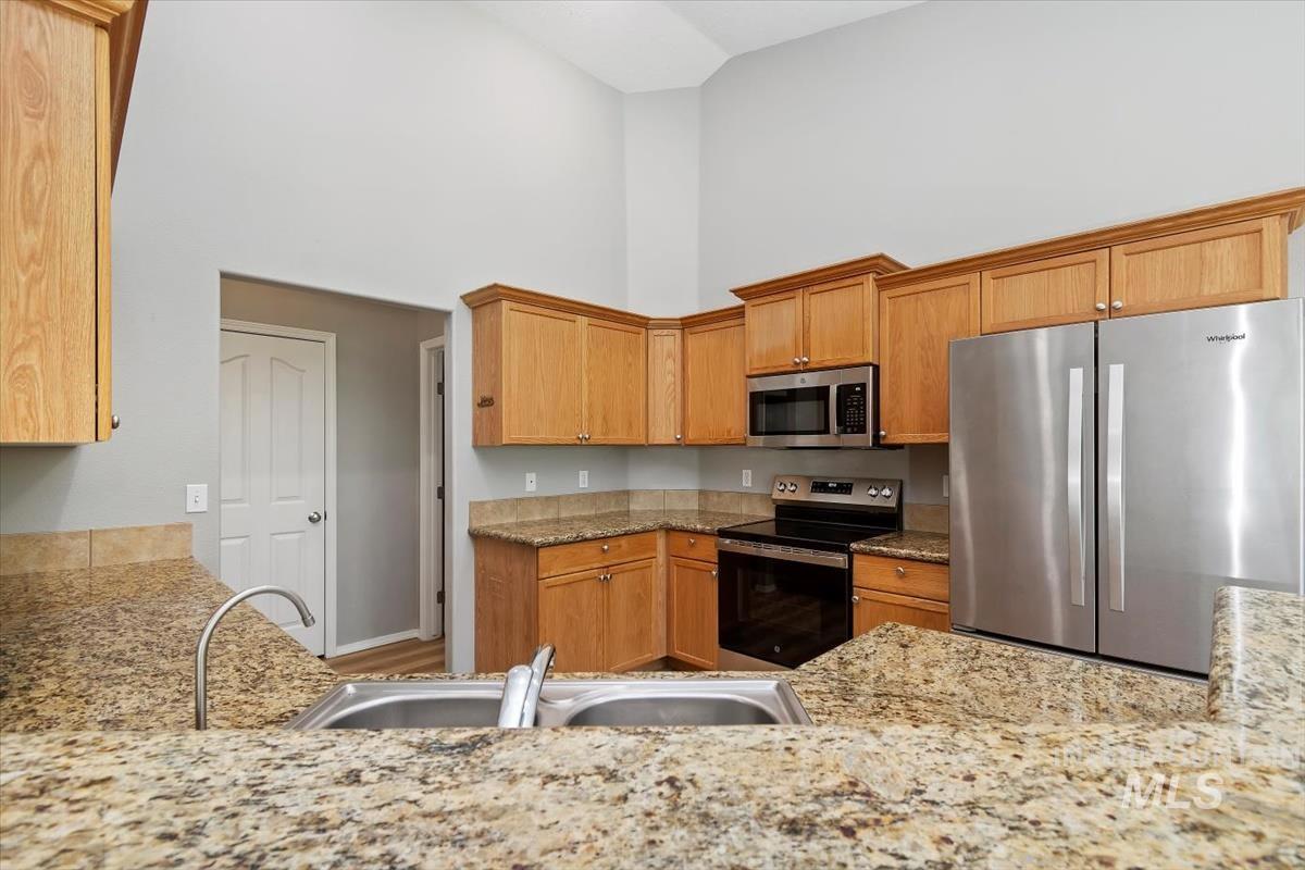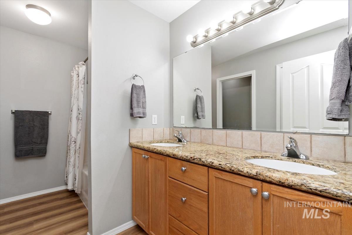 SELLER IS SUPER MOTIVATED! BRING US AN OFFER! Immaculate nearly 1500 square foot single level 3 bed / 2 bath home, with a large three car garage in an excellent, northwest Boise neighborhood. Tucked away, just off Hill Road--Near the foothills, Optimist Sports Complex and Old Town Eagle. Spacious, open living concept floor plan, with vaulted ceilings in the great room and split bedroom design for privacy. Also, brand new LVP flooring throughout. The kitchen features granite countertops, a pantry, breakfast bar, a new stove and microwave, and stainless steel refrigerator. Washer and dryer included as well. The spacious primary bedroom suite includes granite countertops, dual vanities, large walk-in closet and a separate water closet. The backyard features a covered patio, plus extended flagstone perfect for entertaining or raised garden beds, and a hot tub pad with hookup. The landscape has underground sprinklers with drip irrigation, plus there is a covered storage at the side of the house. Irrigation water included in the HOA dues. OPEN HOUSE SAT OCT 18th from 11am to 1pm. .