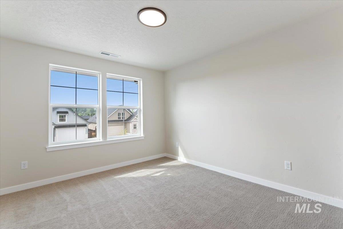 Stunning New Home in wonderful Gated Community. Discover this beautiful, brand-new home located minutes from Eagle Island State Park, downtown Eagle, the Boise River, the Greenbelt, top-rated schools, shopping, and dining. This home features modern finishes throughout, including stylish flooring, sleek granite countertops, contemporary cabinetry, and designer fixtures. The open-concept design is both functional and elegant, centered around a cozy gas fireplace that adds warmth and charm to the living space. Enjoy year-round comfort with a high-efficiency dual HVAC system, and the flexibility of a 4th bedroom that can easily serve as a family room, home office, or flex space—offering endless possibilities to suit your lifestyle. Step outside to a private patio with no back neighbors, overlooking a well maintained common area that includes lush lawn, a tot lot, park, picnic space, and gazebo—perfect for relaxing or entertaining. This low-maintenance sub provides front and back lawn mowing and snow removal.