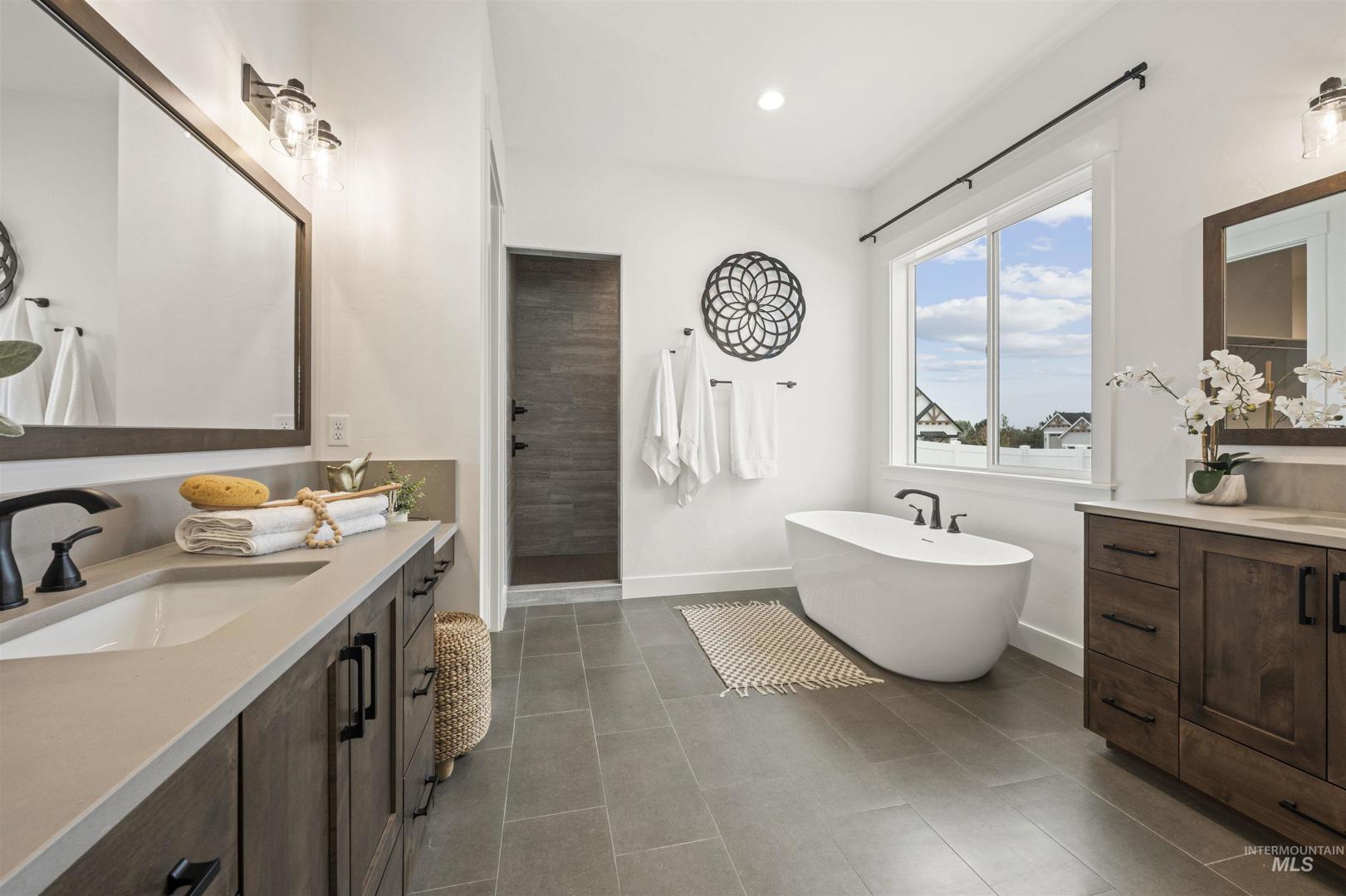 Welcome to a home where modern elegance meets everyday comfort, a rare and private setting—nestled within an intimate circle of just 20 homes, designed for quiet luxury living. Inside, soaring 10-ft ceilings—with 13-ft ceilings in the entry and office—create a bright, open feel. The stunning kitchen boasts premium finishes and high-end Bosch appliances, flowing seamlessly into the living area with a cozy gas fireplace. Two expansive covered patios extend your living space outdoors. The main-level patio features a built-in gas fireplace, automatic sun screen, and epoxy flooring for year-round enjoyment, while the upstairs bonus room opens to a second covered patio—perfect for entertaining or unwinding. Every detail has been thoughtfully designed, from the upscale kitchen and bathroom finishes to the warm, inviting layout. With its perfect blend of style, comfort, and an unbeatable location, this isn’t just a house—it’s the place you’ll love to call home.