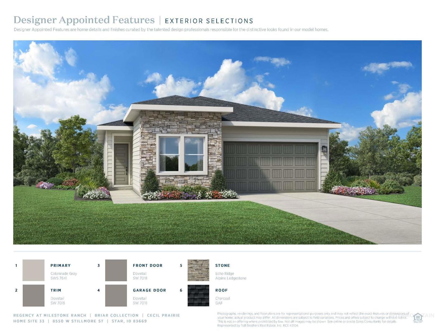 "The Cecil." Discover the Regency difference at this premier new home community for 55+ active adults. Ideally located in tranquil Star close to hiking and biking trails, the Boise River greenbelt, and shopping, dining, and entertainment, Regency at Milestone Ranch is where luxury and lifestyle meet in exquisite fashion. Enjoy a stunning home built to the highest standards and personalized to your style, and a world of resort amenities just beyond your door. Events and activities create a true sense of connection and exciting opportunities to socialize with neighbors and friends. The Cecil offers 2 spacious bedrooms, 2 bathrooms, laundry room, convenient office and 2 car garage. Front and rear landscape included. BTVAI