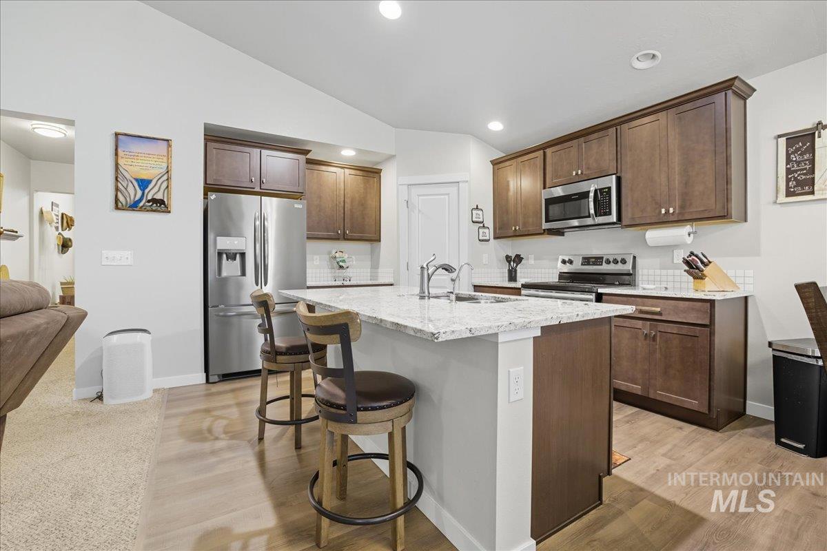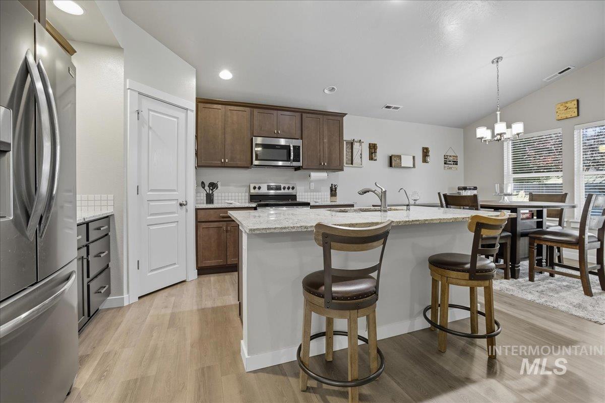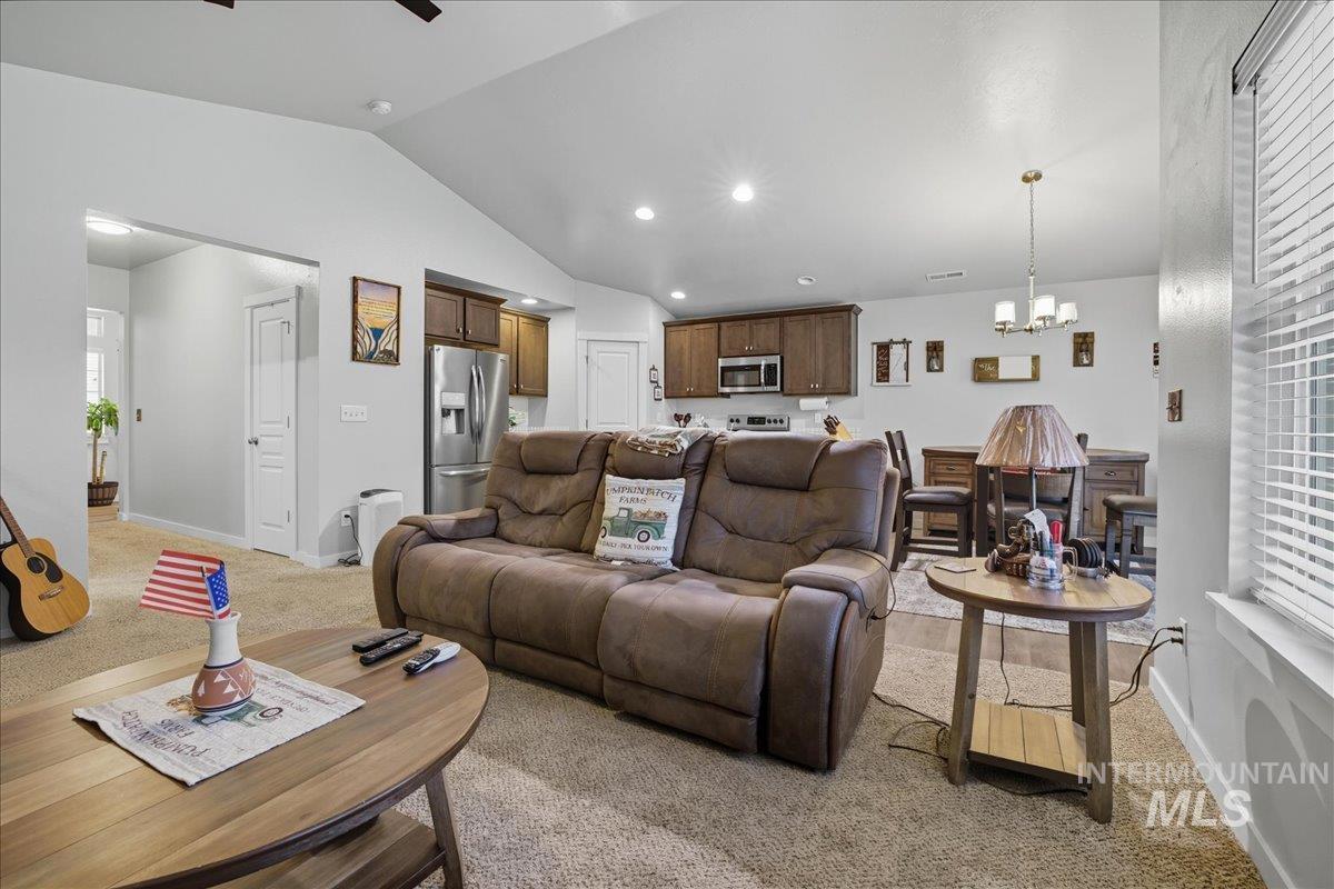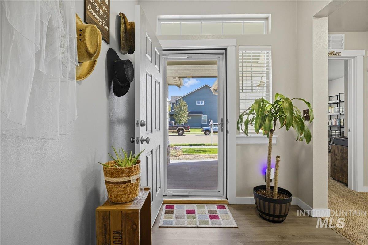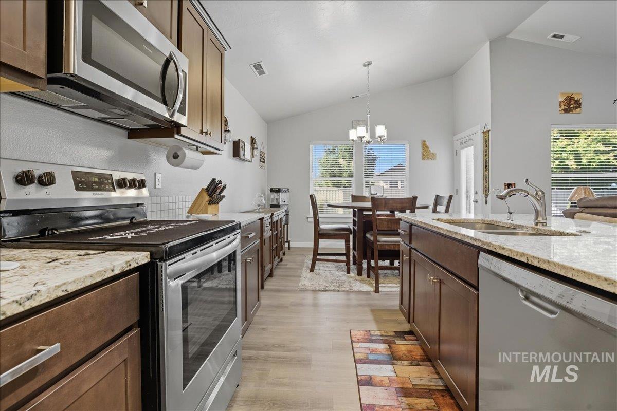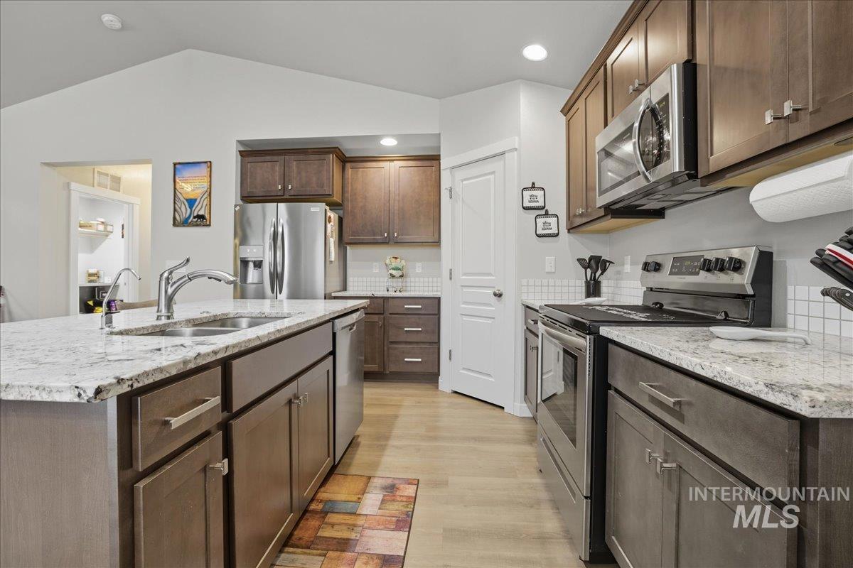 This home is immaculate and better than new! Beautiful single level home in the sought after Vallivue school district. It has a very welcoming entry, split bedroom and open great room. It comes with upgraded cabinets, stainless steel appliances, granite countertops, wood blinds throughout, vinyl plank flooring, water softener, whole house rain gutter system & gorgeous landscaping with concrete curbing as well as garage insulation, water filtration system, 2-220 outlets and 30 amp RV added cement slab (smaller RV). You won`t want to miss this one!