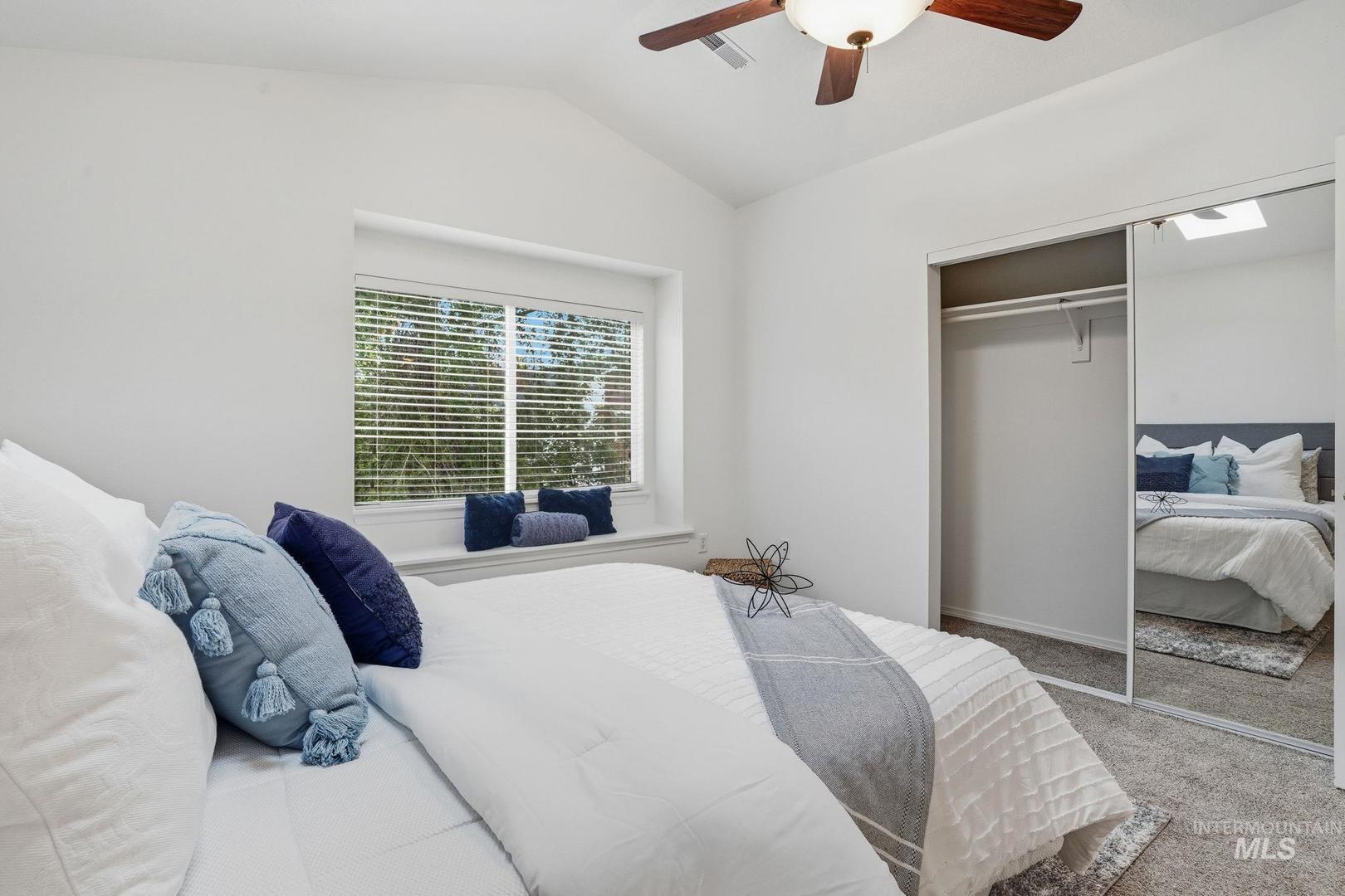 Enjoy living on the bench in this move-in ready home. Home features LVP flooring throughout the lower level. Lots of great storage, 1/2 bath and convenient laundry room. Kitchen and dining area has access to a large, fenced backyard. Upstairs there are two ample size bedrooms with their own bathrooms. The entire interior of the home has been freshly painted. This would be a wonderful home for a first time homebuyer or an investor. Close to downtown, airport, shopping, BSU.